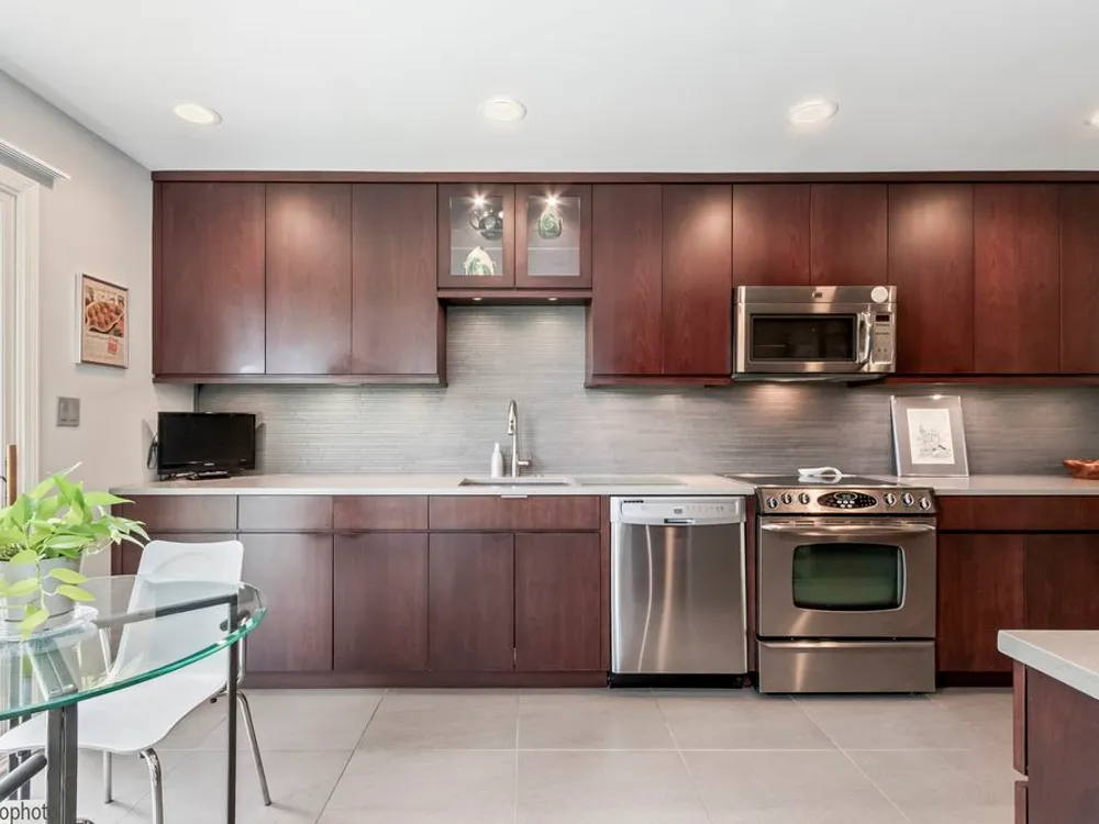 - Range, Microwave, Dishwasher, Refrigerator, Bar Fridge, Freezer, Washer, Dryer, Disposal, Stainless Steel Appliance(s), Water Softener Owned
