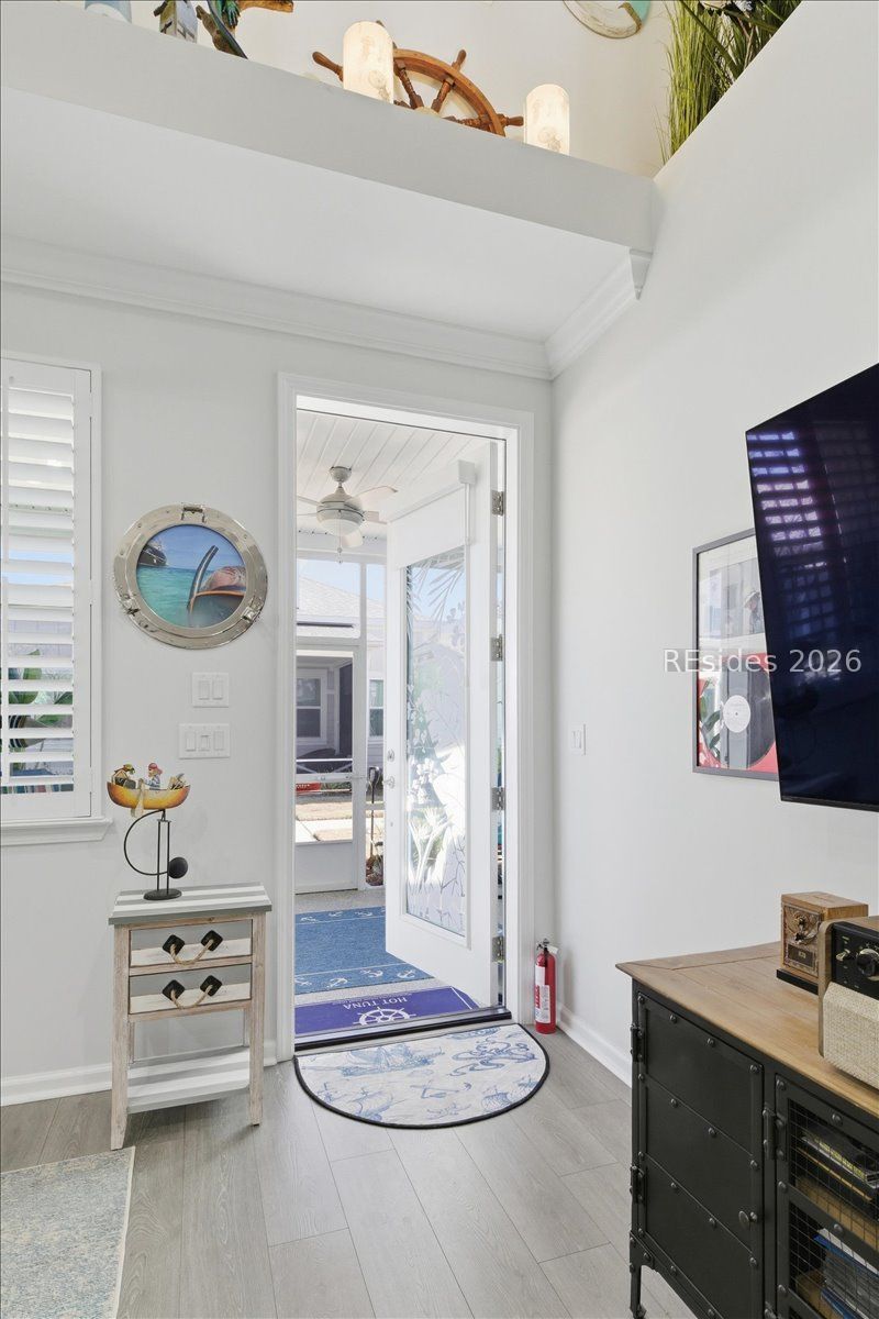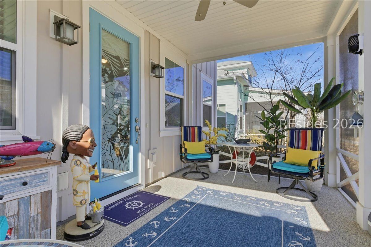 Welcome to your island-inspired oasis in Phase 7 of Latitude Margaritaville Hilton Head! This charming Bamboo cottage offers the perfect blend of cozy living and vibrant resort lifestyle. The 1,210 square feet of air-conditioned living space feature a quaint, cozy layout with two bedrooms and two baths. Enter through the screened-in lanai with its finished floor, and be welcomed by an open living space filled with natural light and impressive 14 to 16-foot ceilings in the foyer. The primary bedroom has its own en suite, making living the margarita dream easy. An epoxy finish in the 2-car garage gives this home a finished effect. Latitude Margaritaville is a premier 55+ active adult community where you can find fun and relaxation. Amenities are just a golf cart ride away, including a resort-style pool, the Latitude Bar & Chill Restaurant, Fins Up! Fitness Center, the Last Mango Theater, and various sports courts. This Bamboo model, part of the Conch Cottages Collection, offers unparalleled value and access to the "no worries" tropical vibe that defines the community experience.