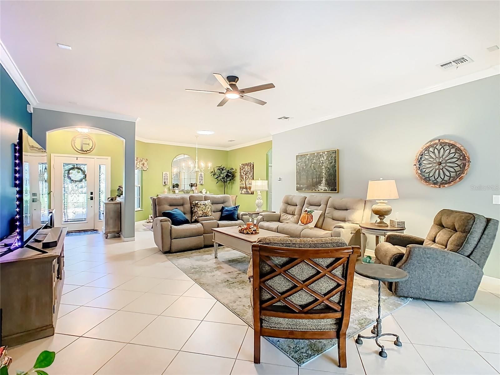 **See the FULL LENGTH VIDEO on Tour Link 1.** Enjoy the Serenity of this well-maintained 3 Bedroom/2 Bath Melody Model home with no carpet, no rear neighbors and Stunning Conservation Views! RECENT UPDATES to the Home include a NEW A/C 2018, NEW ROOF 2016 & SOLAR PANELS to help with the Energy Costs. Enter this home through the LEADED GLASS door into the OPEN CONCEPT Great Room/Dining Room combo, featuring 18" CERAMIC TILE ON THE DIAGONAL throughout the house, a SUN TUNNEL SKYLIGHT, CROWN MOLDING and UPDATED LIGHTING FIXTURES & CEILING FANS. The Kitchen features CAMBRIA QUARTZ COUNTERTOPS, SUBWAY TILE backsplash, NEW FIXTURES, a DOUBLE WIDE UNDERMOUNT STAINLESS SINK, NEWER S/S KITCHEN-AID FRENCH DOOR REFRIGERATOR & DISHWASHER, 42” MAPLE CABINETS WITH PULLOUTS, CLOSET PANTRY W/PULLOUTS, S/S APPLIANCES, all in a bright, open and airy space. Enjoy your coffee in the breakfast nook gazing at the pond across the way. The Owner’s Suite features DUAL WALK-IN CLOSETS with ALPHA CLOSET SYSTEMS, and the attached en-suite bath features UPDATES including DUAL SINKS with CAMBRIA QUARTZ COUNTERTOPS, NEW FIXTURES, a WALK-IN SHOWER, a SOAKING TUB, and a separate Water Closet. The SPLIT FLOOR PLAN offers privacy for the 2nd & 3rd Bedrooms/Office with a centrally located 2nd bath, also UPDATED with CAMBRIA QUARTZ COUNTERTOPS & FIXTURES. The large covered screened lanai with PEACEFUL CONSERVATION VIEWS offers a quiet retreat or can serve as a space to entertain. A separate laundry room features a newer washer and dryer, as well as a utility sink. The TWO-CAR GARAGE features an extra refrigerator, and the landscaping has been refreshed and updated. Recently painted in 2024, at 1813 sq feet, this home is a must-see and a perfect home to enjoy your time here in Solivita. This home also features solar panels, leased thru Sun Run. ***Solivita is an active adult 55+ community located in Kissimmee, Florida. It is approximately 50 minutes from Disney World & the Orlando International Airport. Solivita has a total of 5,470 homes. Approximately 10,000 - 11,000 people live in Solivita during the winter while approximately 7,500 live in Solivita during the summer. Enjoy your active years in this piece of paradise. Solivita amenities include: - a manicured SOFTBALL diamond & field - 36 holes of CHAMPIONSHIP GOLF that can be played by joining the Stonegate Golf Club or paying as you go - 2 STATE of the Art AMENITY centers with updated exercise equipment, yoga studio & meeting rooms - 3 restaurants - 14 HEATED POOLS - 17 PICKLEBALL courts - 9 TENNIS courts - 4 BOCCE BALL courts - 4 SHUFFLEBOARD courts - 3 HORSESHOE pits - a BILLIARDS room - miles of bike paths - 2 DOG PARKS (Small & Large Dogs) - Corn Hole - Tot Lot PLAYGROUND - COMMUNITY GARDEN - over 250 resident clubs. The HOA: - maintains the LANDSCAPING & IRRIGATION systems in the common areas as well as at individual homesites - maintains the roads throughout the community - PROVIDES SECURITY with gate guards and mobile patrols including the Polk County Sheriff - allows AUTOMATED GATE ACCESS for residents via license plate readers - provides residents with Fiber Optic Internet & TV service.**Poinciana Lakes Plaza is a MAJOR NEW SHOPPING CENTER that opened directly across from the Solivita Main Gate in Summer of 2024. It features Sprouts Grocery, TJ MAXX, Ross, Burlington, Rack Room Shoes, 5 Below, Ulta, Outback, First Watch, 5 Guys, Urgent Care, Dentist, TD Bank, Petco & Hair Cuttery PLUS MORE TO COME.**