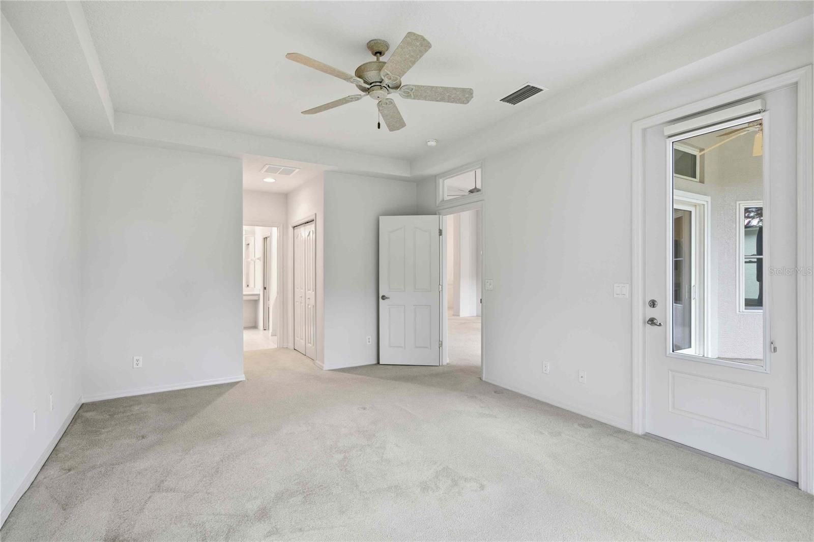 - Built-in Features, Ceiling Fan(s), Eat-in Kitchen, High Ceilings, Kitchen/Family Room Combo, Open Floorplan, Main Level Primary, Solid-Wood Cabinets, Split Bedrooms, Thermostat, Walk-In Closet(s), Window Treatments