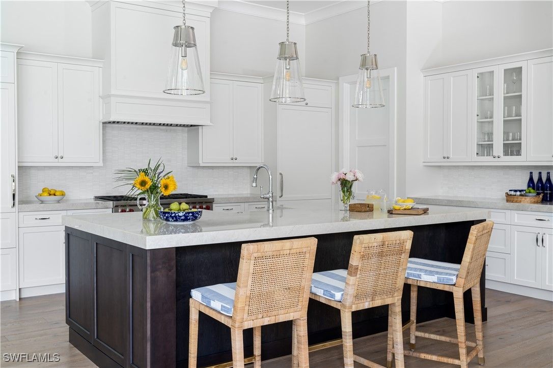 Discover the perfect blend of luxury and comfort in this stunning Naples residence, located just minutes from Moorings Private Beach Club and directly across from Moorings Country Club’s golf course. Nestled in the quiet Moorings neighborhood, you’ll enjoy effortless access to Naples’ most vibrant attractions on 5th Avenue South and Venetian Village. Thoughtfully crafted by renowned builder BCB Homes for true indoor–outdoor living, the light-filled home opens with expansive sliding glass doors to a private resort setting—an inviting pool and spa, covered lanai, and a summer kitchen designed for year-round entertaining. Inside, the gourmet kitchen anchors the great room with premium custom cabinetry and millwork, European oak wood floors, and top-of-the-line Wolf and Sub-Zero appliances. Smart comforts include Lutron automated shades and multi-zone surround sound, enhancing everyday living and gatherings alike. Retreat to a serene primary suite with a spa-style bath, while additional guest suites ensure privacy for family and visitors. The home includes two generous studies, window treatments and coverings, built-in closets throughout, and three garage spaces. Thoughtful details continue throughout—impact glass, beautiful finishes, and curated outdoor touches like a private outdoor shower and a large backyard. Located in an X Flood Zone for added peace of mind, this home is also eligible for a Moorings Private Beach Club access—a rare find. Ideally situated for the Naples coastal lifestyle, this exceptional Moorings residence is move-in ready and presents a rare opportunity to own near the sand, dining, and boutique shopping that make Naples world-class.