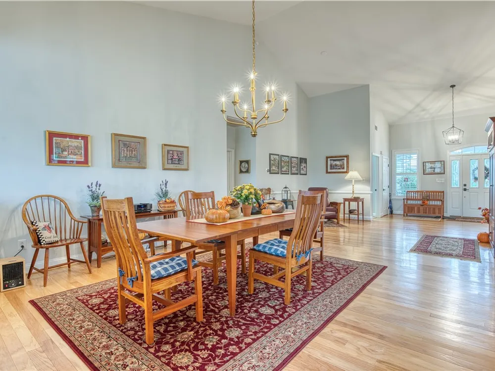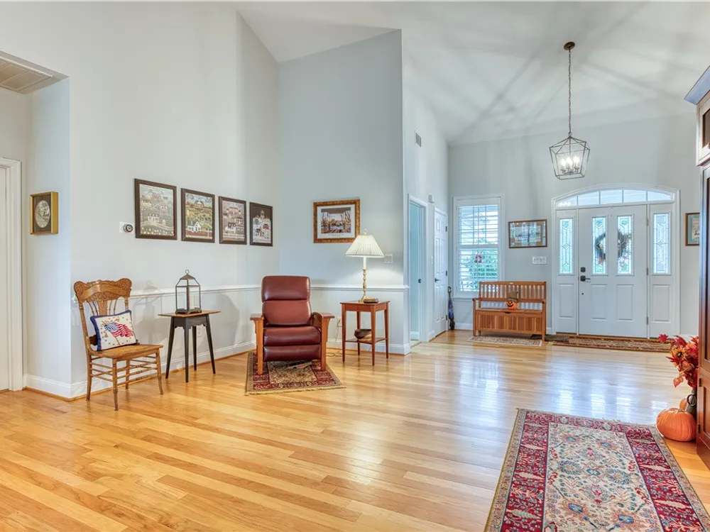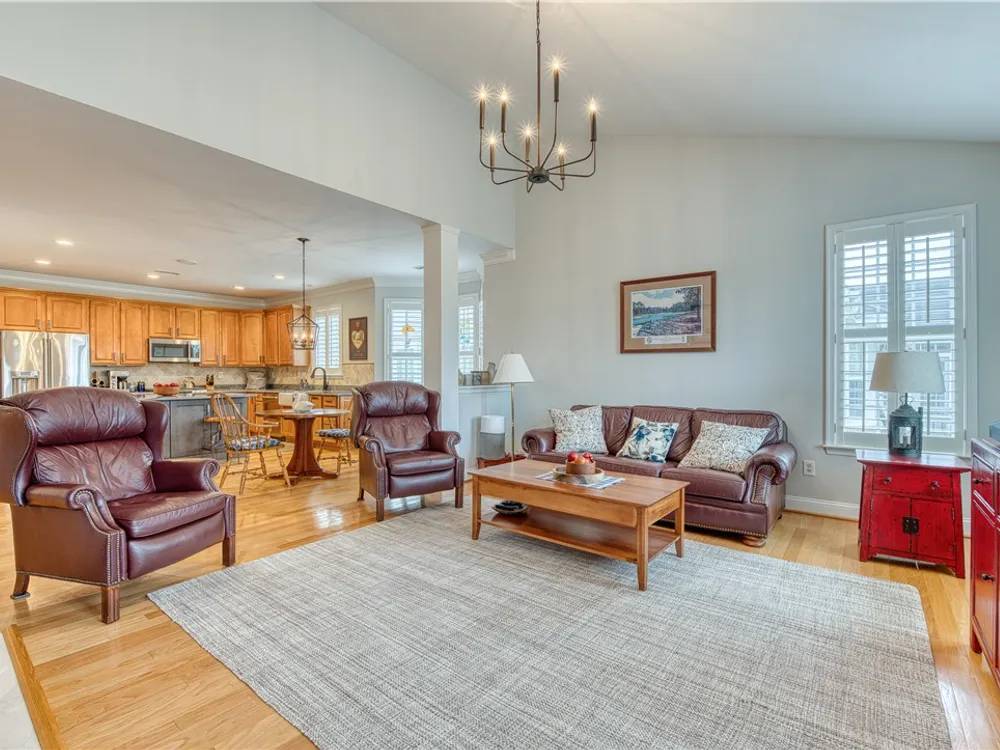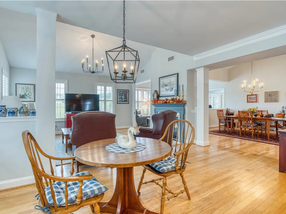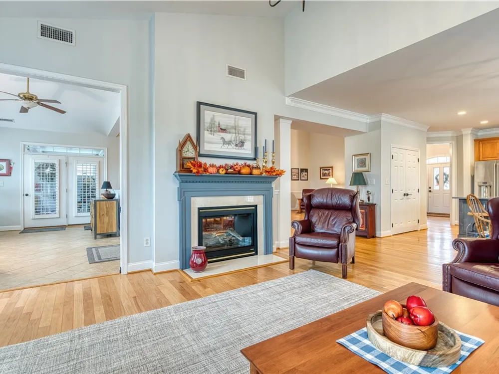 Ready for move-in! Great flow in this Exceptionally well-maintained, 2500+ sq ft, 3 bed, 2 bath home in Colonial Heritage, 55+ Active Adult Community. Great room w/ Cathedral Ceiling w/ view through gas FP and open dining area. FR enjoys views on the golf course and view through FP. The primary suite is a true retreat with dual walk-in closets and a spa-like bath featuring a soaking tub, tiled shower, and granite vanity. Guests enjoy privacy with a split bedroom plan. Relax in the bright sunroom or three-season screened porch while enjoying serene golf course views. Hardwood floors, Custom Plantation blinds,& easy care landscaping. Quick closing available. Your active adult dream awaits!