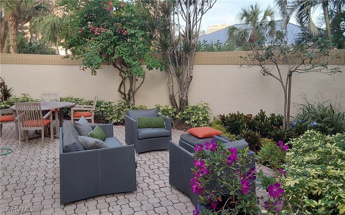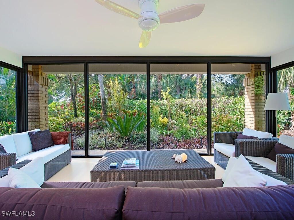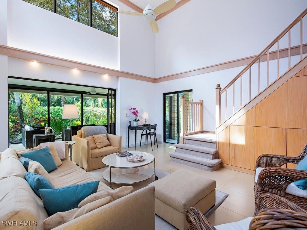 A rare opportunity awaits to own a modern-style villa that lives like a single family home. This 3 bedroom plus den, 3 bath, two-story residence is surrounded by a lush tropical landscaped garden, creating a wealth of privacy. The modern styled architecture and the western exposure lend itself to rich natural light and beautiful sight lines throughout the home. Interlachen is widely considered one of the Pelican Bay’s premier locations, directly across from the beach tram station and short distance to the Pelican Bay Foundation tennis facilities. This property has been meticulously maintained and updated and is move-in ready. The lanai was enclosed to create a wonderful sunroom providing an opportunity to enjoy this special space every day the year. The long, private driveway leads to a 2-car garage and provides generous guest parking, ideal for hosting friends and family. Located within the 500X flood zone, the property offers peace-of-mind and lower insurance costs. Interlachen’s community pool feels like a luxury resort due to the surrounding lakes and beach breezes and is a two minute distance from your front door. Pelican Bay features some of the best amenities in Naples including two beachfront restaurants, walking and bike paths, state-of-the-art fitness facilities, beachfront yoga classes, and is centrally located close to the world-famous Naples–Artis, home to the philharmonic and host to many spectacular events throughout the year. This lovely residence offers easy access to the Waterside Shops’ high end stores and restaurants. There is room for a private pool with approval.