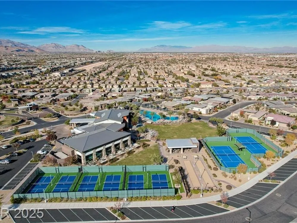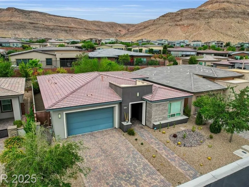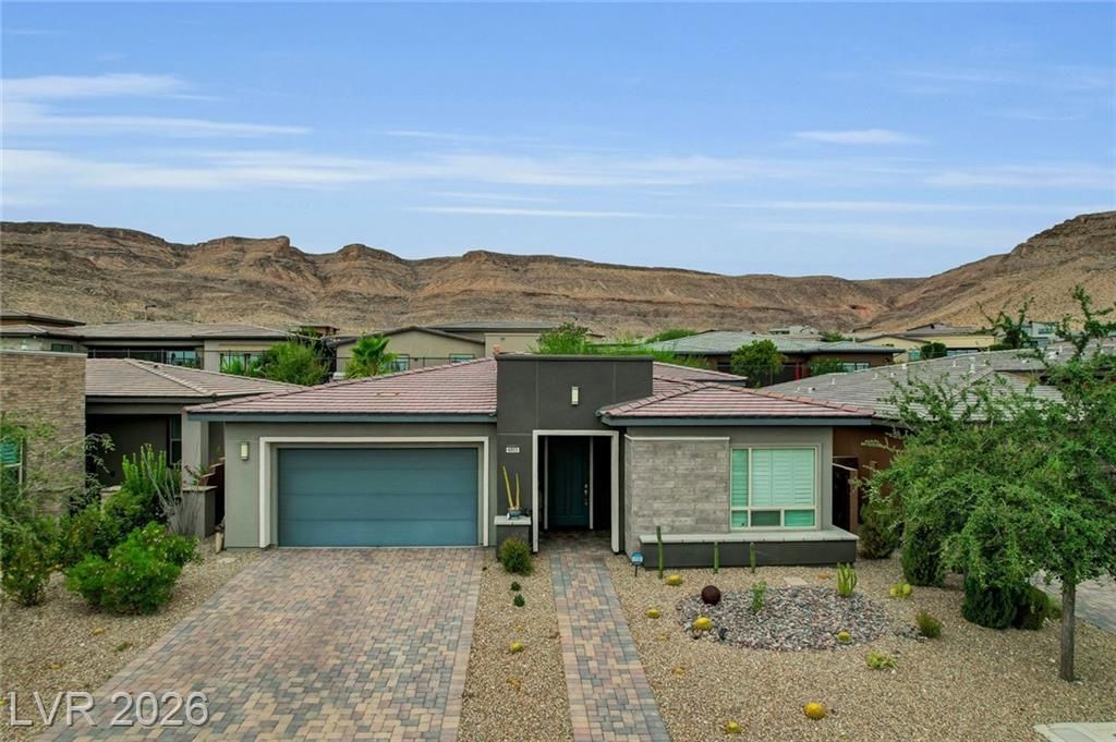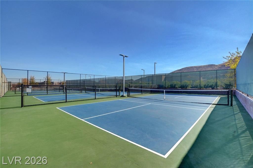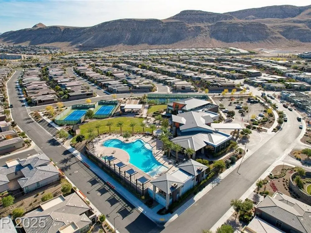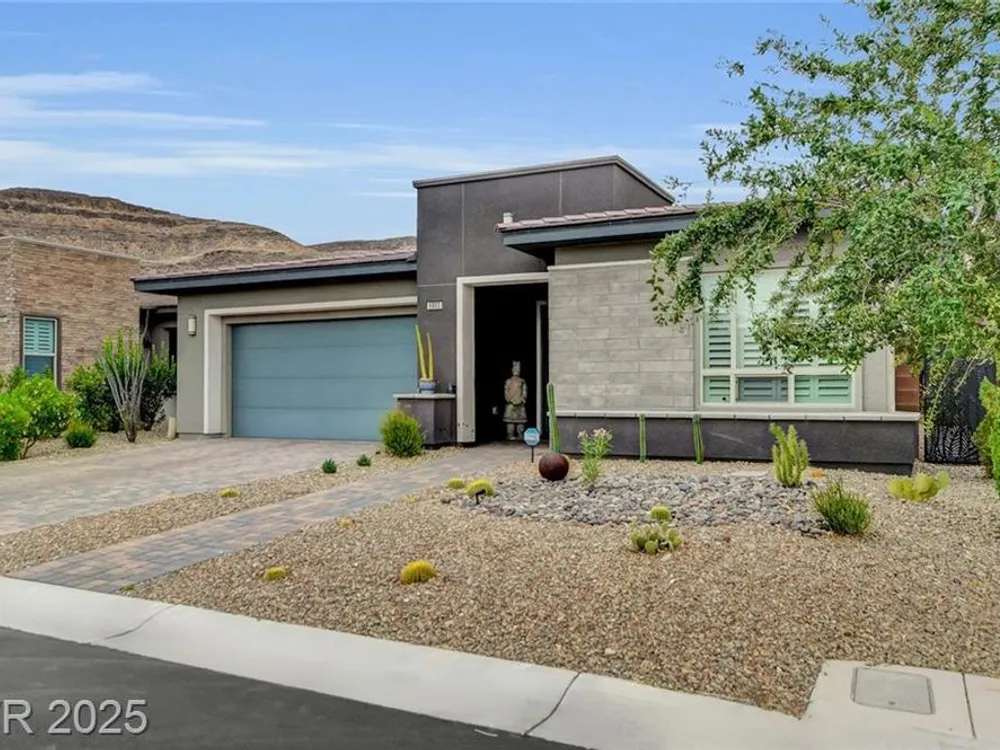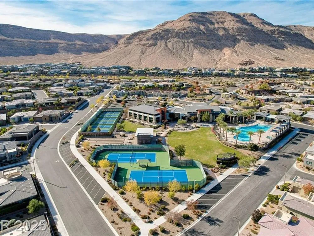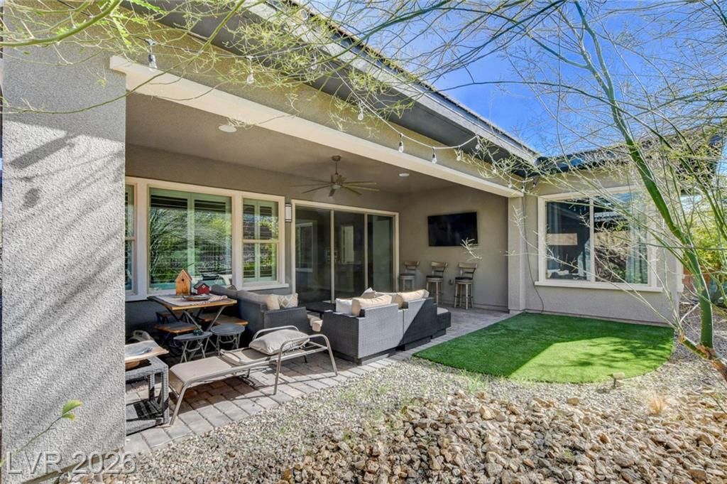 Beautiful single story Toll Brothers home in the guard gated Regency community in Summerlin. Located on one of the Best Streets in the neighborhood with mountain views, this floorplan Features 2 bedrooms + office, 2 bathrooms and luxury upgrades throughout. Gourmet kitchen boasts granite counters, high end stainless appliances and designer tile flooring. High ceilings, Bright living room with multi-slide patio doors, shutters throughout and ceilings fans are just a few of the included upgrades. Primary suite includes large walk in closet, dual sinks, and large walk-in shower. Large Laundry room with custom cabinets. Backyard retreat with modern landscape & turf, large covered patio and pavers. Tankless water heater. Finished 2 car garage with epoxy floors and storage. Steps from clubhouse, pool, fitness, pickleball & tennis—resort-style living at its finest!