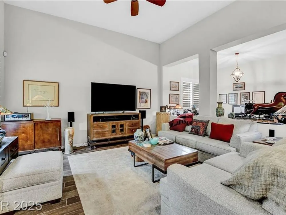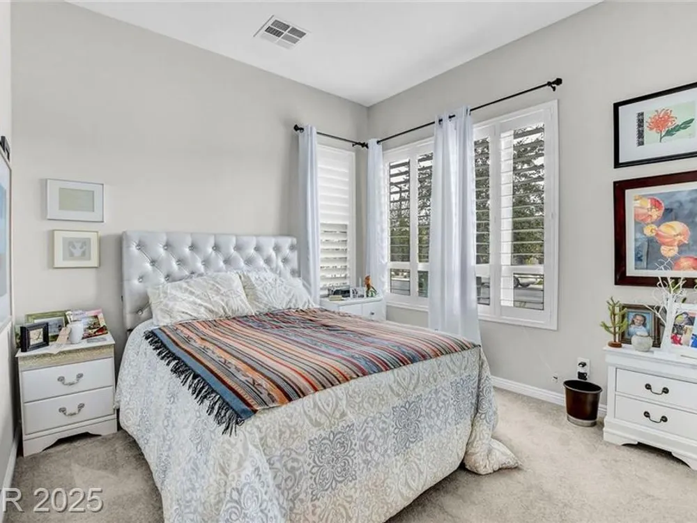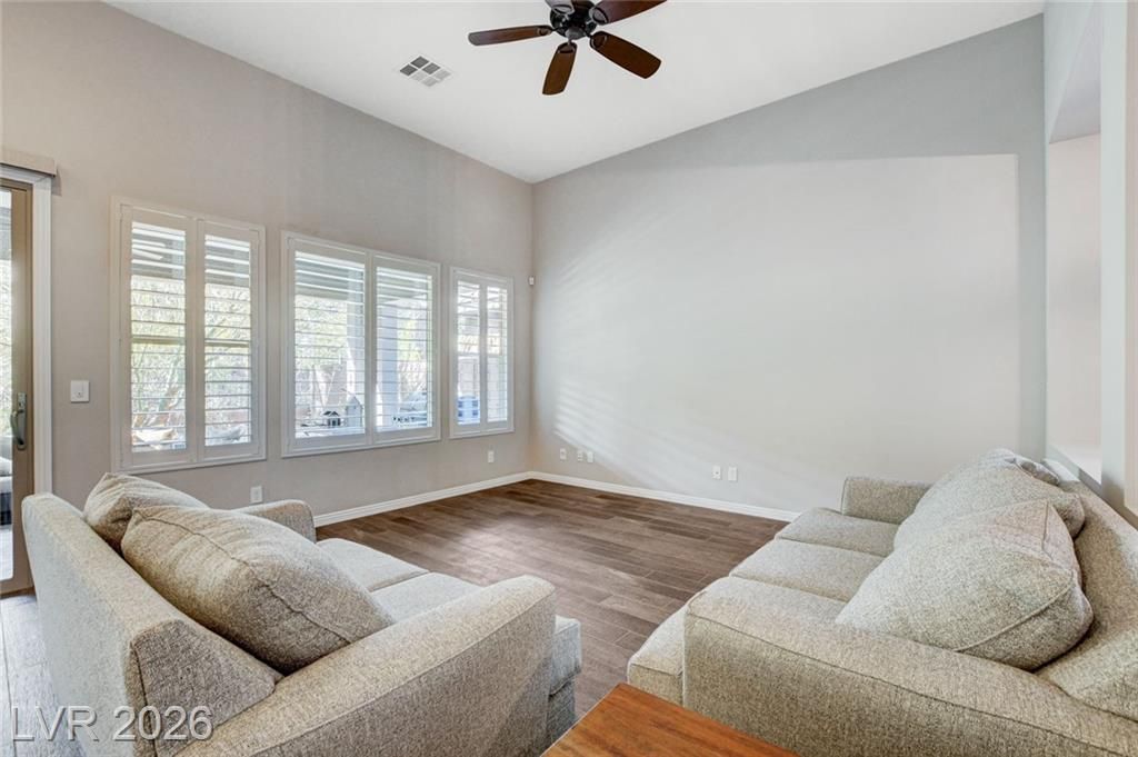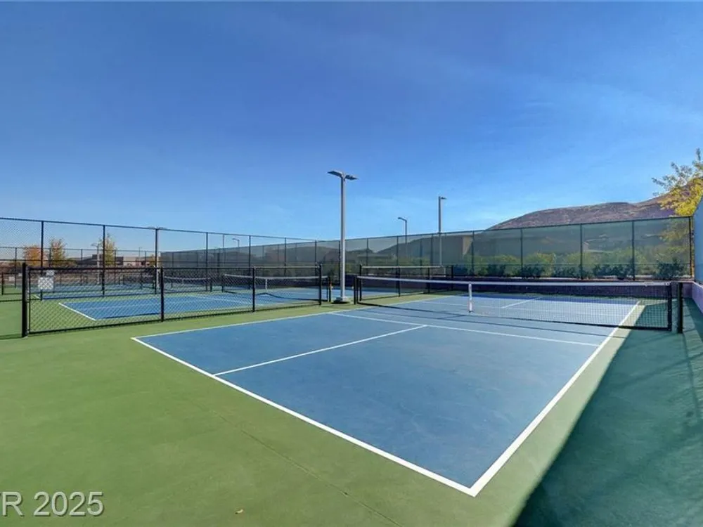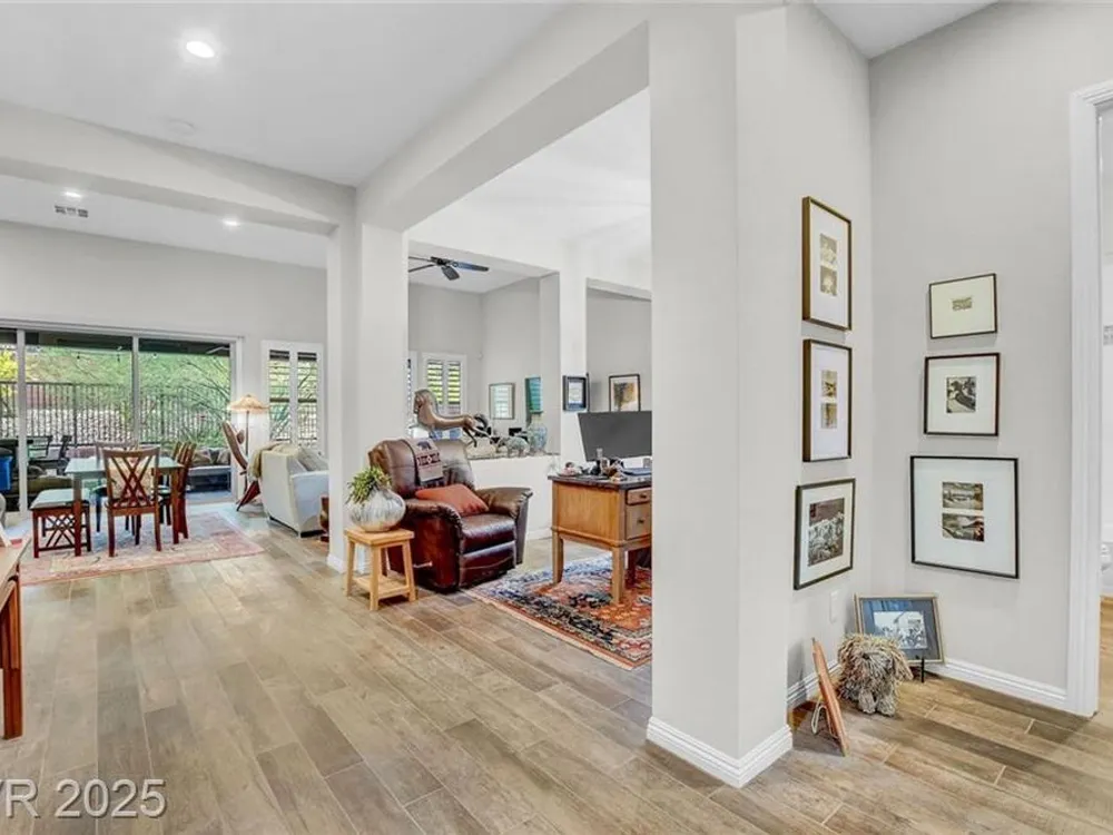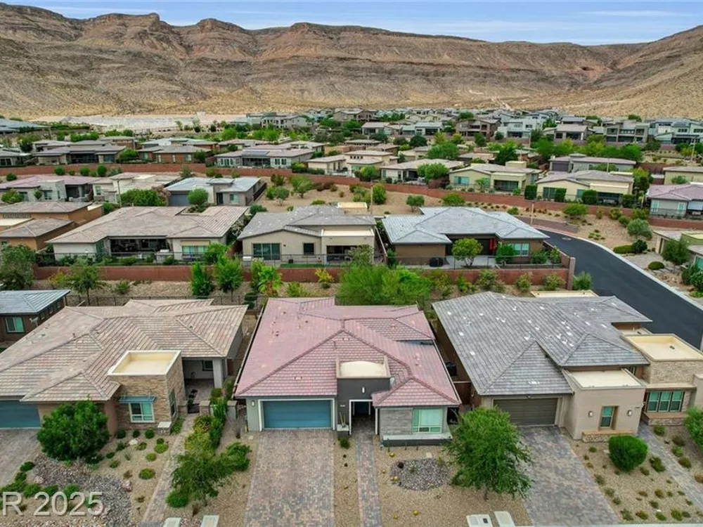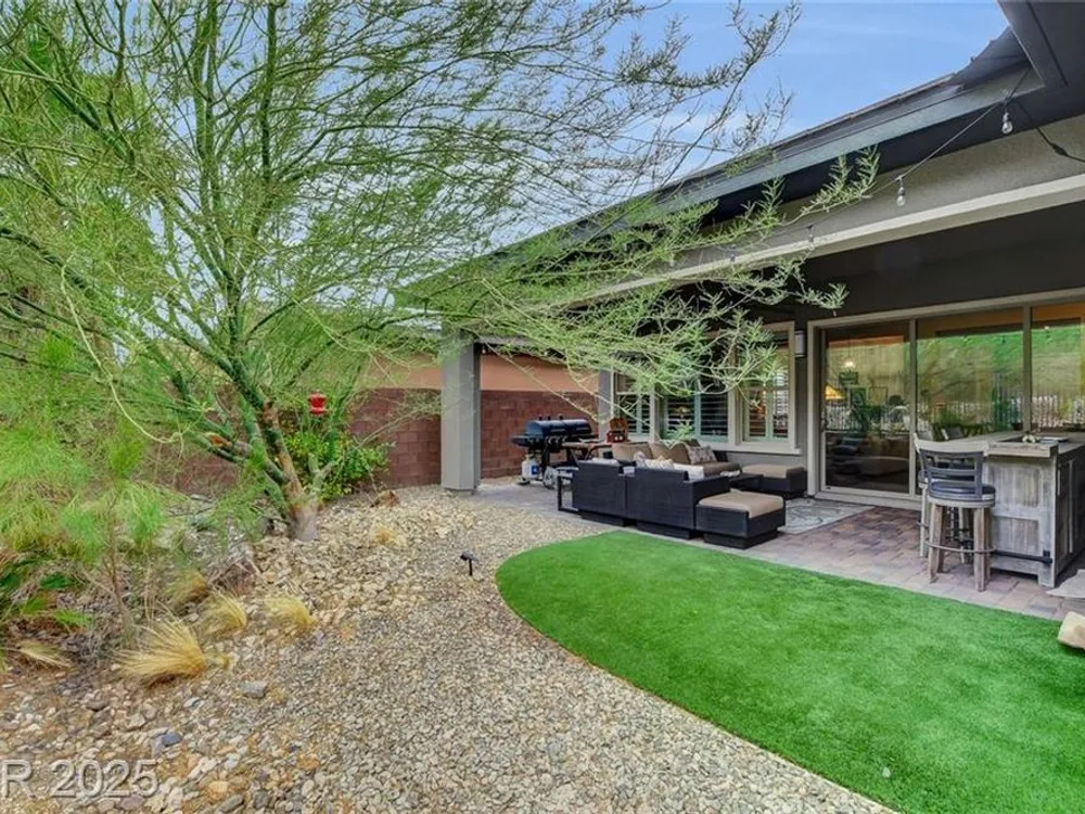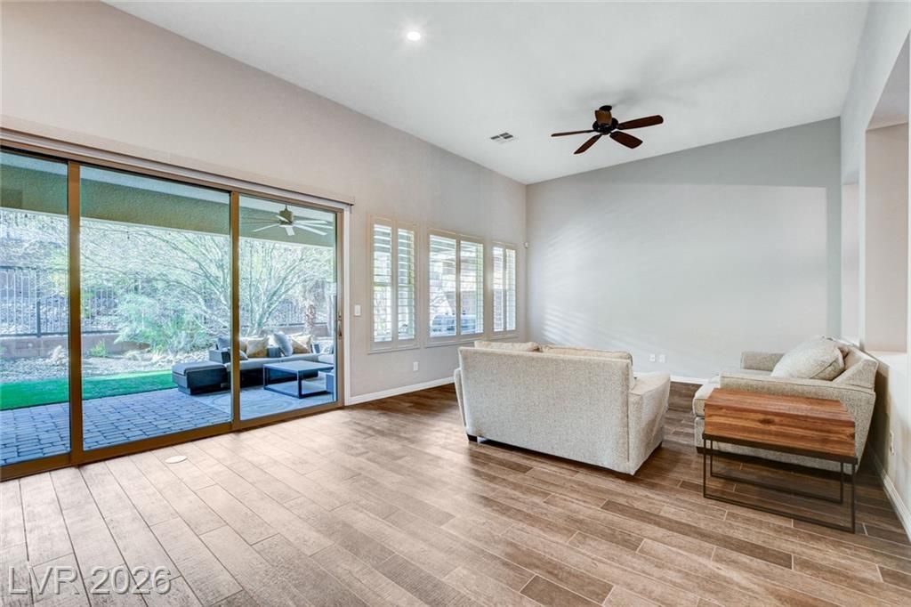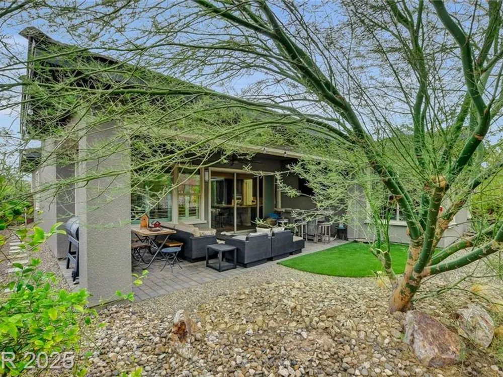 Beautiful single story Toll Brothers home in the guard gated Regency community in Summerlin. Located on one of the Best Streets in the neighborhood with mountain views, this floorplan Features 2 bedrooms + office, 2 bathrooms and luxury upgrades throughout. Gourmet kitchen boasts granite counters, high end stainless appliances and designer tile flooring. High ceilings, Bright living room with multi-slide patio doors, shutters throughout and ceilings fans are just a few of the included upgrades. Primary suite includes large walk in closet, dual sinks, and large walk-in shower. Large Laundry room with custom cabinets. Backyard retreat with modern landscape & turf, large covered patio and pavers. Tankless water heater. Finished 2 car garage with epoxy floors and storage. Steps from clubhouse, pool, fitness, pickleball & tennis—resort-style living at its finest!