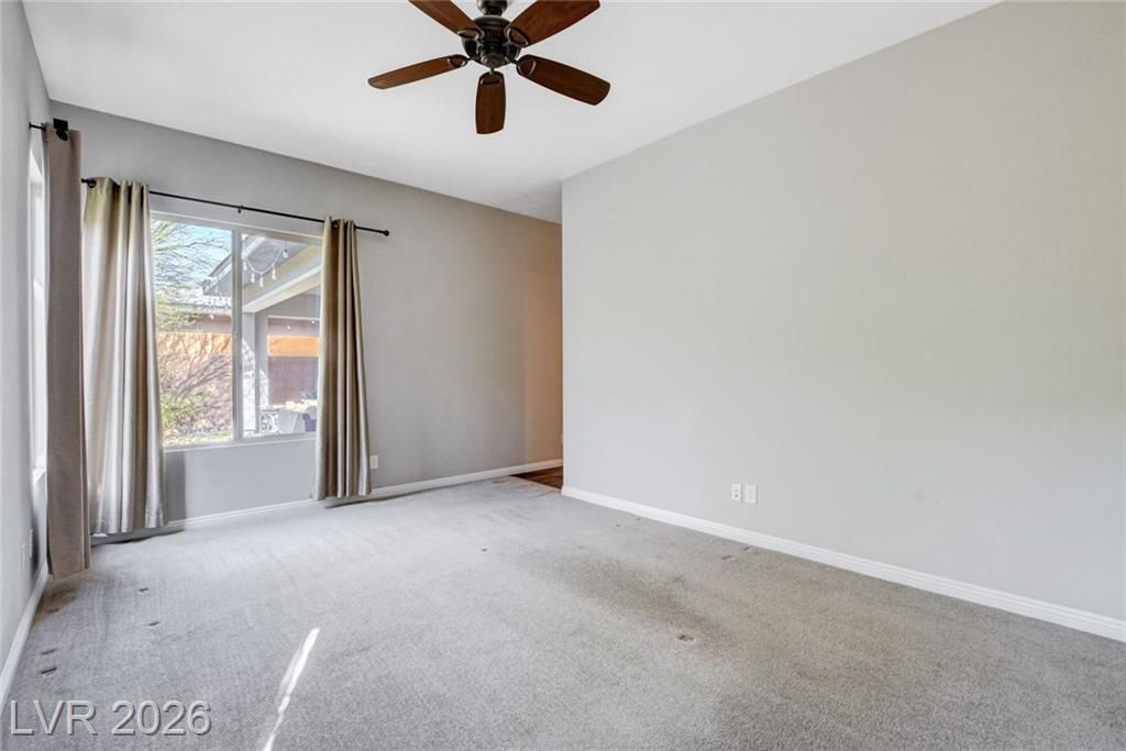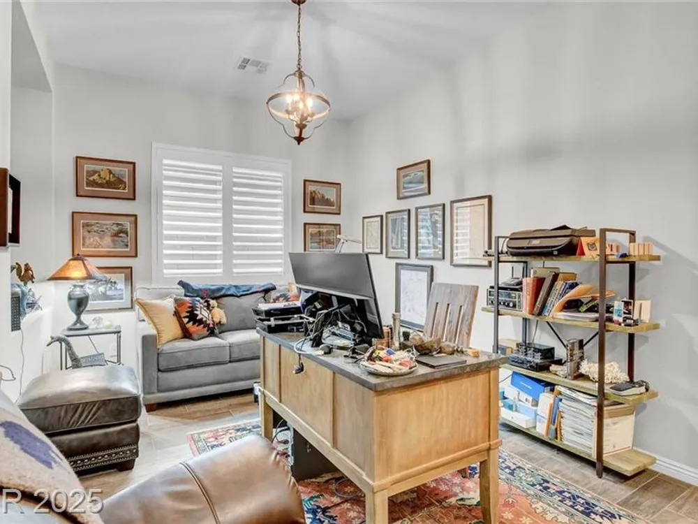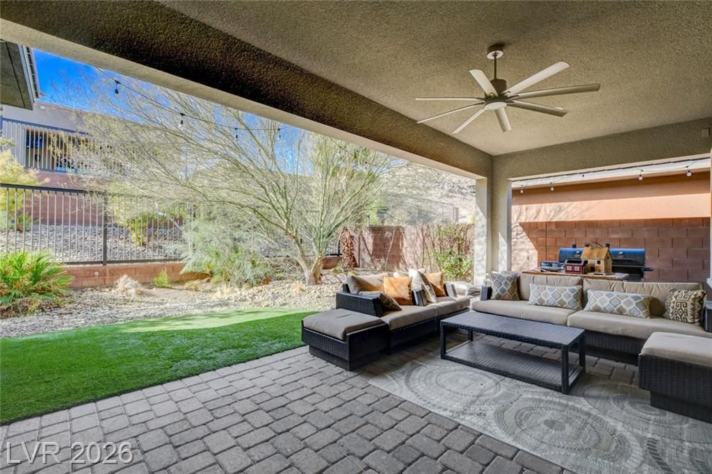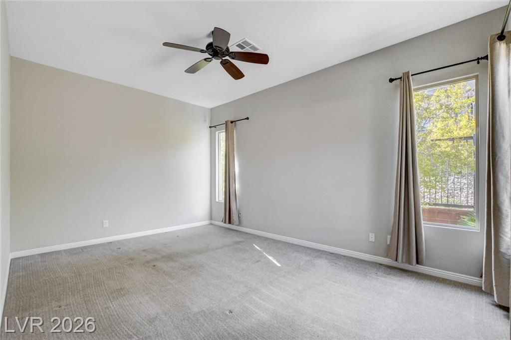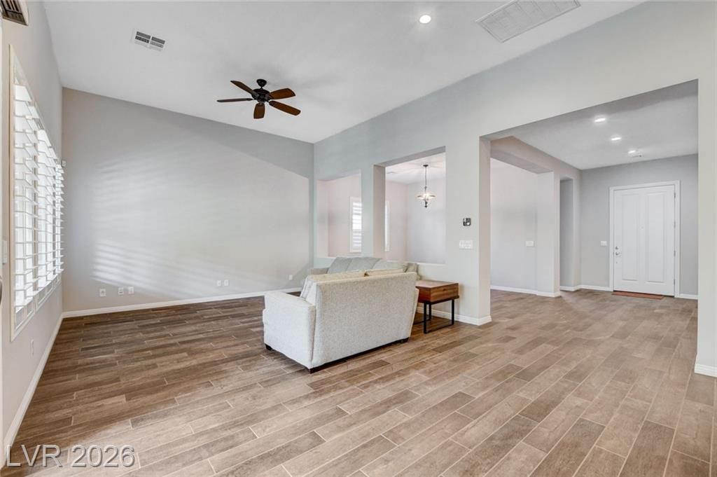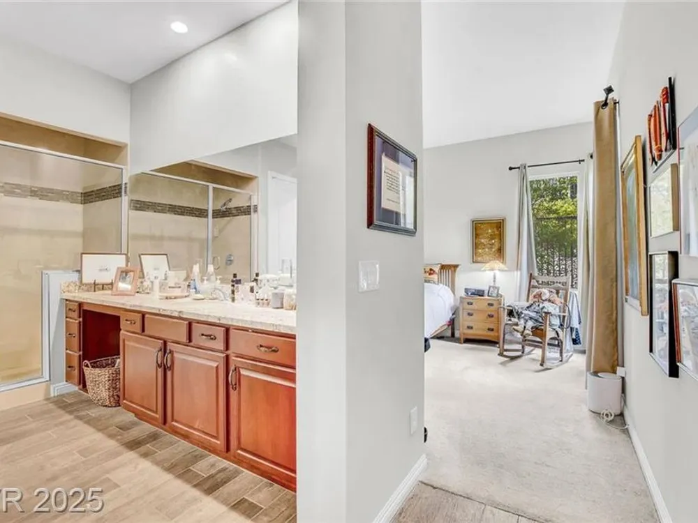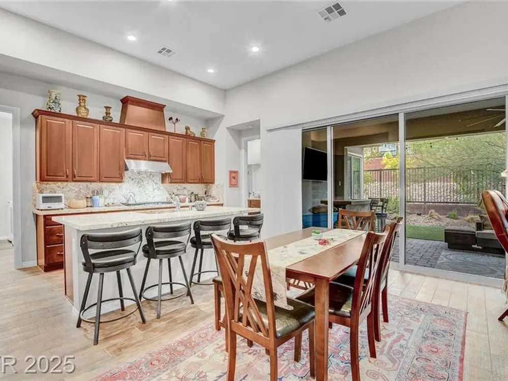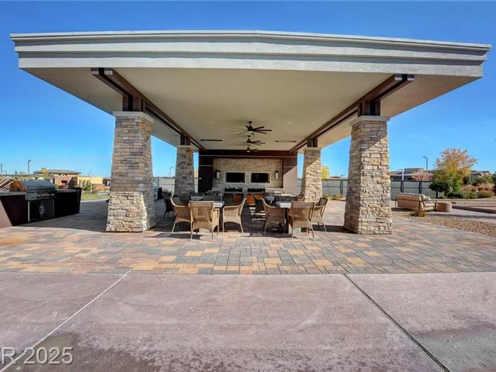 Beautiful single story Toll Brothers home in the guard gated Regency community in Summerlin. Located on one of the Best Streets in the neighborhood with mountain views, this floorplan Features 2 bedrooms + office, 2 bathrooms and luxury upgrades throughout. Gourmet kitchen boasts granite counters, high end stainless appliances and designer tile flooring. High ceilings, Bright living room with multi-slide patio doors, shutters throughout and ceilings fans are just a few of the included upgrades. Primary suite includes large walk in closet, dual sinks, and large walk-in shower. Large Laundry room with custom cabinets. Backyard retreat with modern landscape & turf, large covered patio and pavers. Tankless water heater. Finished 2 car garage with epoxy floors and storage. Steps from clubhouse, pool, fitness, pickleball & tennis—resort-style living at its finest!