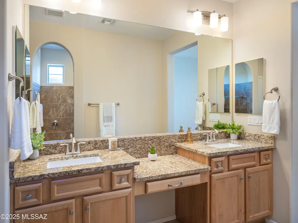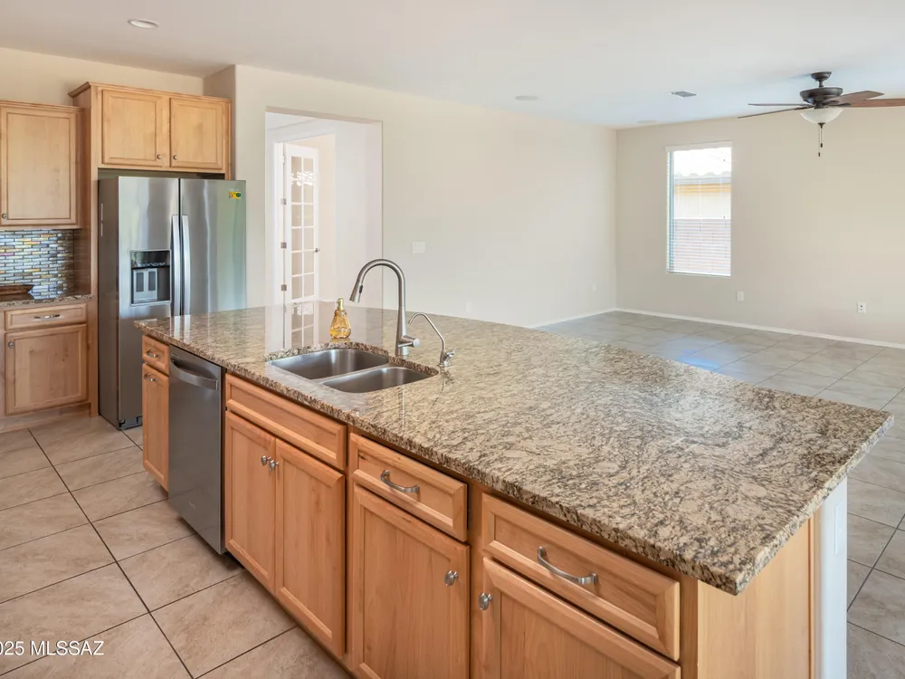 Resort-Style Living in Del Webb Dove Mountain!Welcome to this beautifully designed 2,010 sq. ft. home featuring 2 bedrooms, a dedicated office, and spacious open-concept living--perfectly set within the sought-after active adult Del Webb community in Marana, Arizona.Step inside to discover a chef's kitchen complete with a 5-burner gas cooktop, stainless steel appliances, granite countertops, and a stylish tile backsplash. The kitchen flows seamlessly into the dining area and great room, all finished with elegant tile flooring and framed by sweeping northern mountain views.The primary suite offers a true retreat with dual undermount sinks, a custom-tiled shower, private toilet area, and a generous walk-in closet.