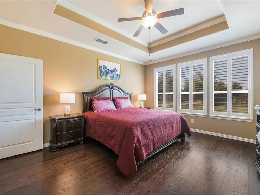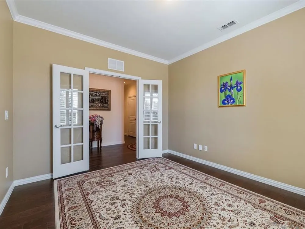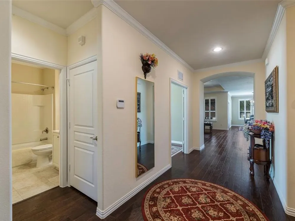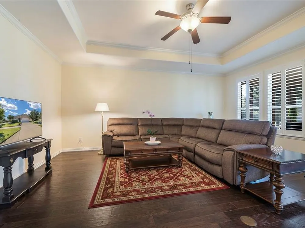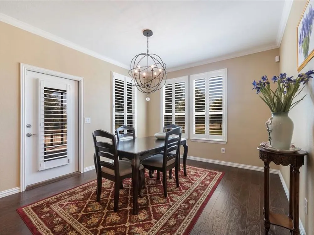 Wonderful Tifton Walk Dell Webb Floorplan on Corner Lot with Park Views! Upgrades include crown molding, hardwoods, plantation shutters & pull-out shelves in kitchen and master bath! Open kitchen with large kitchen island, granite counters, tumbled backsplash, stainless appliances & pendant lighting. Adjacent dining room boasts a decorative chandelier. French doors lead to a spacious, private study. Master suite includes trey ceiling, dual sinks, garden tub, separate shower, linen closet & walk-in closet. Laundry room has cabinets to the ceiling for extra storage. Enjoy the corner lot & parkway from the screened porch. Extended, stamped concrete patio boasts a pergola for shade. The 2-car tandem garage with epoxy floors offers ample storage. Community amenities include walking trails, pool, and golf course. *55+ Retirement Community* New HVAC Coil and Cooktop.
