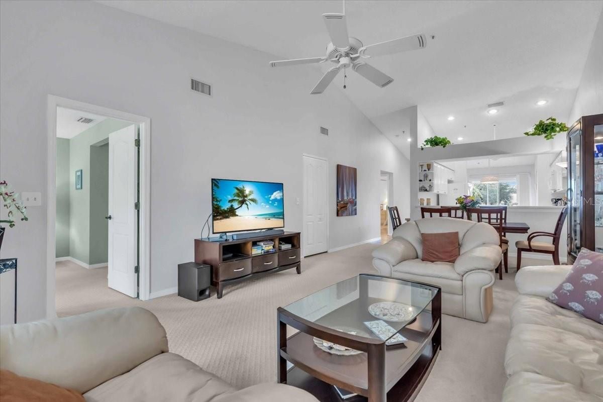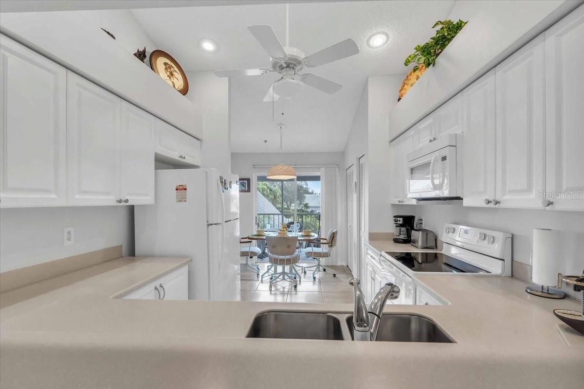 What is a Golfer's dream? To play golf whenever in their back yard, of course! How about one even better, play golf anytime at the newly refurbish golf course, enjoy a private restaurant for owners and guest only, enjoying the country club lifestyle in Tara Golf & Country Club. SELLER HAS REDUCED THE PRICE BY $15,000!!! Turn-key with everything you need, except your golf clubs, personal items and a toothbrush! So conveniently located, right off 75, where one exit south gets you to UTC Mall, and Sarasota Airport. Go north, less than an hour, to Tampa/St Pete area where there is professional sports teams, theaters, cruise ship terminal, and much more! This turn-key second floor veranda, offers beautifully decorated furniture, with elegant artwork, complete household goods, and a view over the 7th green. The kitchen has nice cabinets that offers pull out shelving, both bathrooms have been updated. Wonderful dining room table with 18 chairs for those evening when the whole gang shows up for dinner! In the evening relax, sit out on your lanai with a cool beverage watch golfers, and wildlife. The lanai can also be another place for overnight guests, the sofa is a pullout bed, the shades, including the skylight can be drawn for privacy and darken the room. The guest room is conveniently located opposite of the primary suite, with a full bath steps outside the door. The primary bedroom with a bay window, has two large closets, bathroom has shower, with remodel vanity and sink area. High vaulted ceilings give the depth to make the living area seem much larger. There is a front porch overlooking the Veranda landscaping, lots of room to sit out there with your morning coffee. And the lanai at the back of the unit is plenty large enough for entertaining. The Veranda has a Class A membership, which means the golf/country club conveys with the title. There will be a $5000 resale capital contribution at closing if new owners are not already members of Tara G&CC. $527 a month is for your golf/country club amenities. The annual Tara Master fee provides premium cable internet, WIFI from XFinity. The Verandas are one of the more popular communities in Tara, well managed, roof is only 3 years old, recently painted, and blacktopped the parking area. The one car garage has storage areas for bikes. Open parking is plentiful for guests. The Veranda community pool offers privacy, and bathrooms. Someday you may want to go to Tara's main pool where there is Nancy's Snack Shack, enjoy lunch around the pool. Volleyball and water aerobics a couple of times of week, available to only Tara residents. Pickleball, a popular sport. Tara is in the process of building a racquet center with 5 courts just down the street from the Verandas. Bocce ball, leagues are formed to play, lots of fun! Maybe you are more content to be in the Clubhouse for bridge, or mahjong, book clubs, crafts, you name it, probably being offered at Tara G&CC. This Veranda townhouse is one to see! Dreams do come true; bring your clubs, some personal things- and you are ready to move in! Motivated Seller, who is returning overseas. Let's make a deal!!