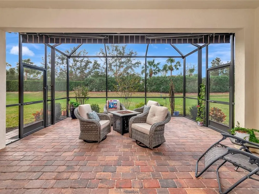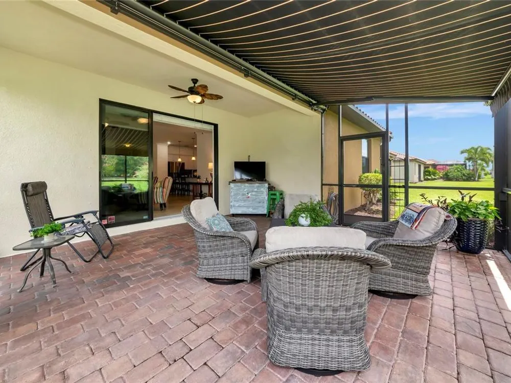 What are you waiting for? This is your chance to own a home in the most central location in Manatee County—within River Strand Golf and Country Club, a vibrant, resort-style community that has it all. Imagine the convenience of a self-contained neighborhood where you can take your golf cart to shop or dine at The MarketPlace, the area’s newest shopping center featuring Whole Foods, Hobby Lobby, Seasons 52, Costco, Target, and so much more. Just outside the gates, I-75 connects you to the beaches, airports, museums, and theaters. Even better—the clubhouse, main pool, and Tiki Bar are being completely renovated to become the finest country club settings in the area! An on-site Urgent Care Center adds peace of mind for life’s little surprises and a whole range of medical services are just minutes away. This 4-bedroom, 3-bath home is designed for both comfort and style. A spacious open floor plan with updated finishes makes it move-in ready. Recent upgrades include fresh interior and exterior paint, attractive wood flooring in all bedrooms, and a modern kitchen with granite countertops, tile backsplash, pantry, and a large island—perfect for casual meals or entertaining guests. Step outside to your extended paver lanai, where you can entertain, grill, or simply relax under the stars. Features like a retractable lighted awning, ambient night lighting, poured concrete flooring, and secured screen cage create the ideal setting for year-round Florida living. This home also comes with peace-of-mind extras: • Whole-house charcoal water filtration system • Whole-house surge protector • Six new rooftop ventilation units + sealed roof shingles • Lifetime transferable termite protection • Secure garage storage Living here means you’ll enjoy social membership to River Strand Golf & Country Club with lawn care, landscaping, cable, and internet included! Walk across the street to the Sanctuary Community Center, complete with a resort-style pool, spa, pickleball, fitness center, sports courts, and a beautiful gathering room for events. At the main Clubhouse you will find 9 har-tru tennis courts, a second fitness center, library and a 27-hole golf course offering Social members the opportunity to golf upon availability. Enjoy a lifestyle that is unmatched, offering a full calendar of activities and events provided by the Lifestyle and Food and Beverage Departments. Every day is like a vacation at River Strand Golf and Country Club.