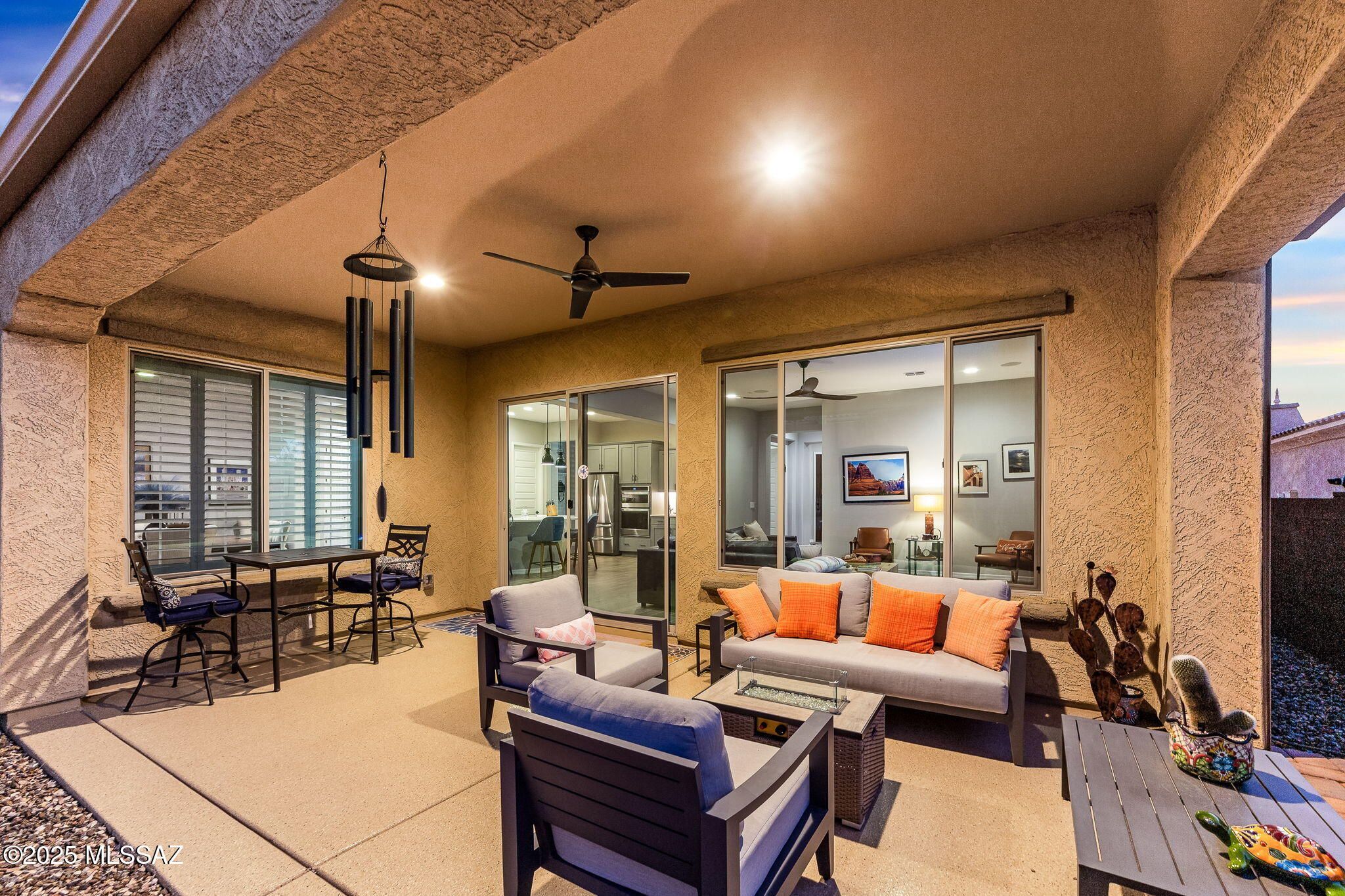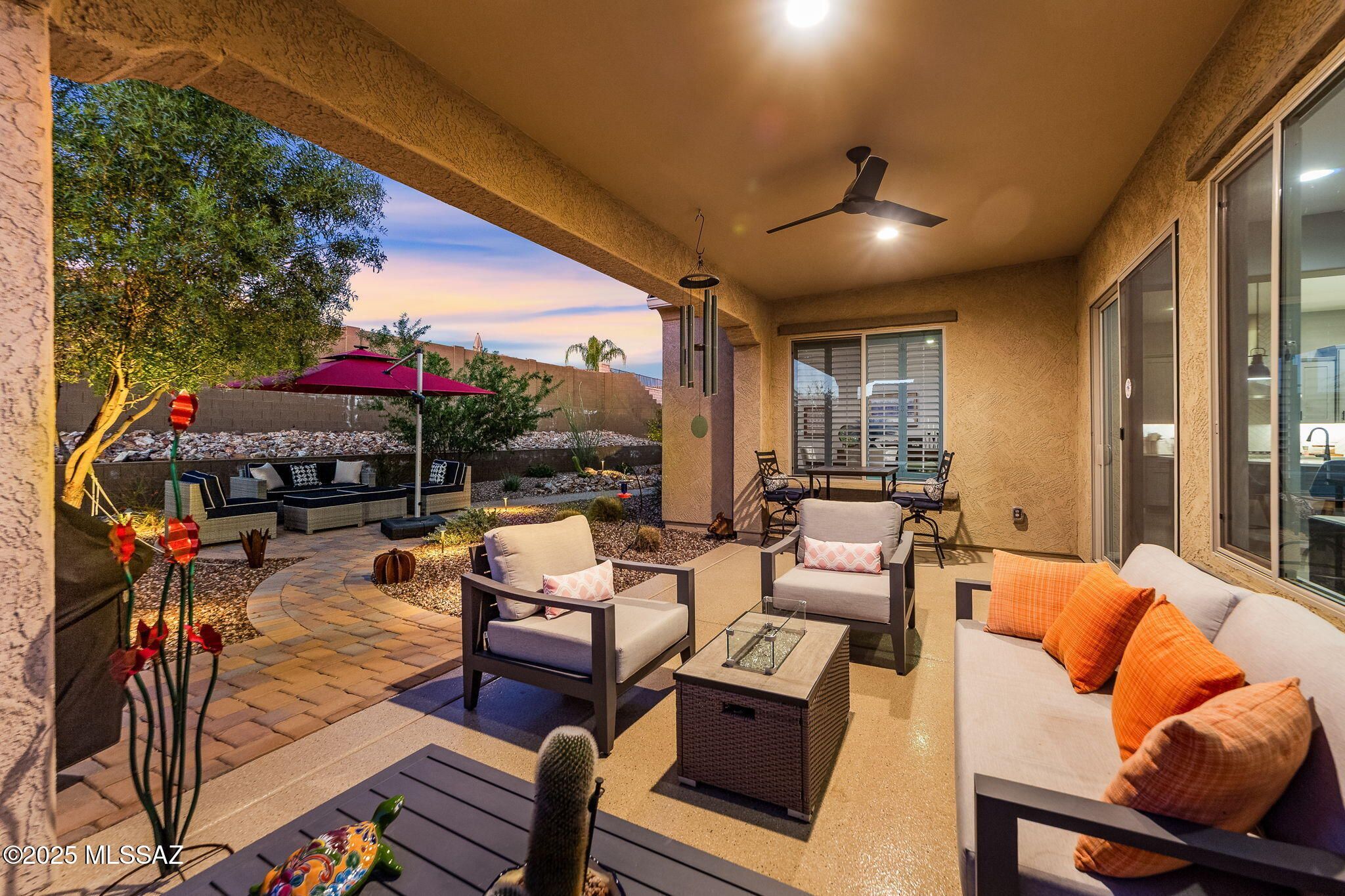 Del Webb AT Dove Mountain Spectacular Serenity Model Home. Move right into this 2,337 sq. ft. 3BR / 2 BA + Office home selling Furnished! Pretty Round Foyer Entryway opens to Large Great Room w/ High Ceilings, Electric Fireplace, Gorgeous Gray Kitchen w/ XL Island, Open Dining Room & Walk-In Pantry. Your Private, Fenced Outdoor Oasis flows from the Great Room. Relax & Enjoy the Covered Patio w/ firepit table plus an Extended Patio seating area. Beautiful Owner's Suite features Walk-In Closet, Walk-In shower, Dual Sink Vanity & Soaking Tub. Split Bedroom Floorplan, Fantastic Front Office & 2.5 Car Garage complete your Top Quality Dream Home. Del Webb At Dove Mountain Active Adult Community Amenities Include Pool, Fitness Ctr., Pickleball, Tennis, Clubs & Parties. HOME SELLING TURN KEY!
