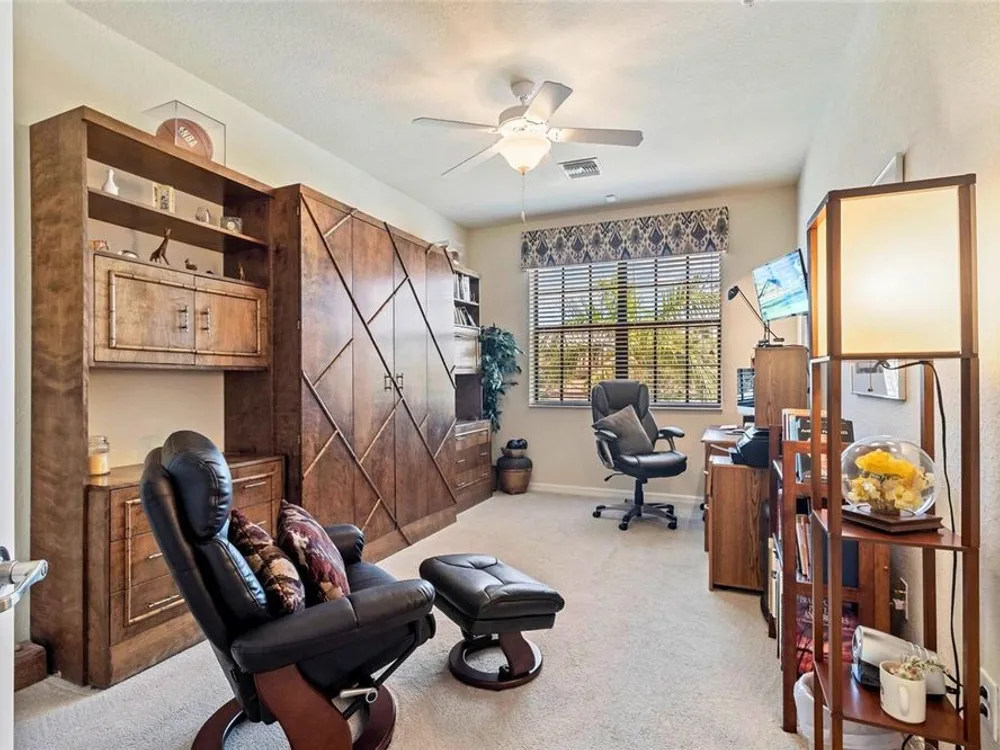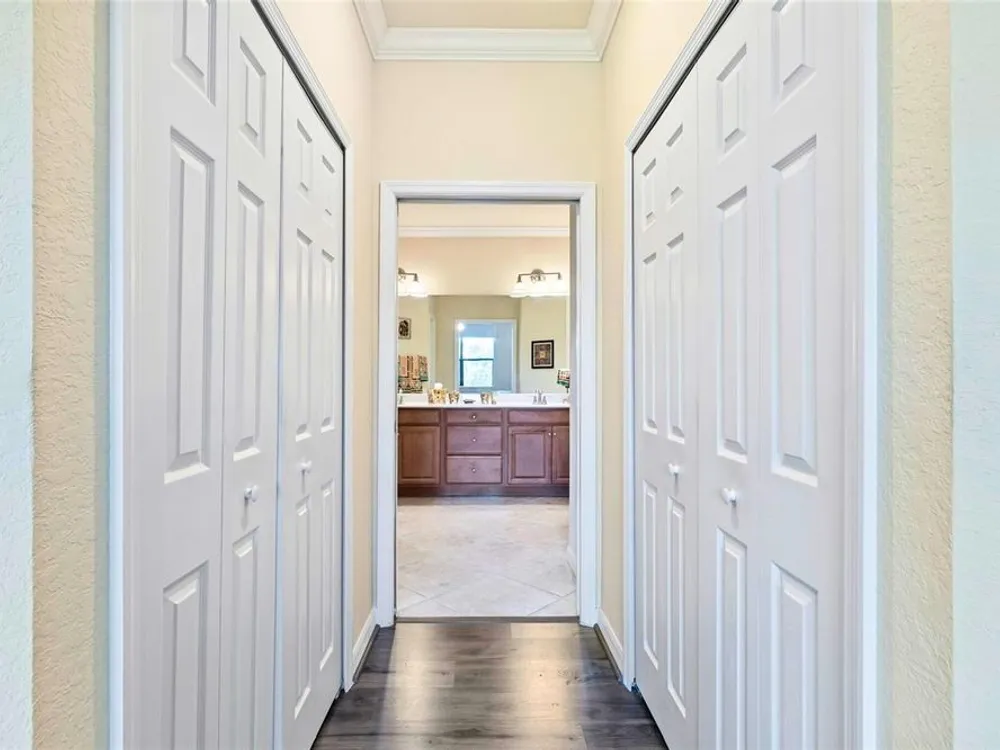 - Ceiling Fan(s), Crown Molding, Eat-in Kitchen, High Ceilings, Solid-Wood Cabinets, Split Bedrooms, Stone Counters, Thermostat, Walk-In Closet(s)