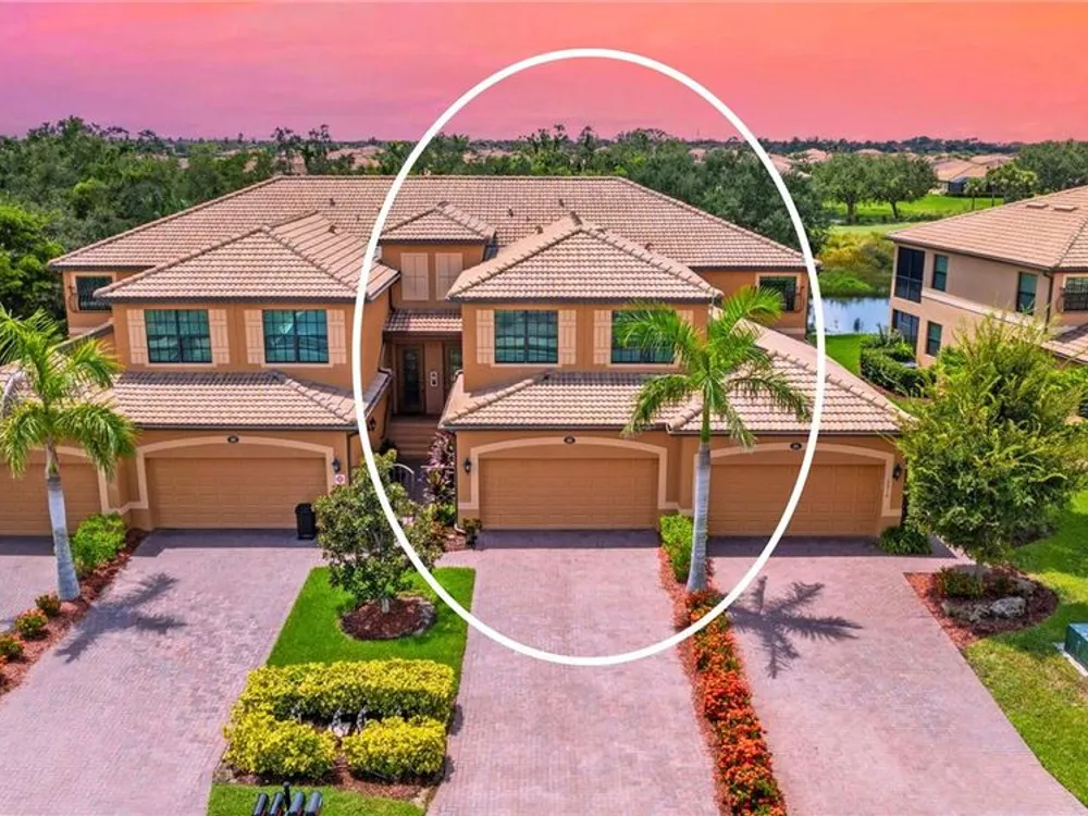 Live the Ultimate Florida Golf & Coastal Lifestyle! Perched above the lush greens of River Strand Golf & Country Club located within the Heritage Harbour gated community, this beautiful 3-bedroom, 2-bath upper-level coach home offers a rare combination of panoramic golf, lake, and sunset views that will take your breath away. Imagine relaxing on your private screened lanai as the sun dips below the horizon, with a front-row seat to the pristine Pro Tee box and the shimmering waters beyond. Inside, you’ll find 2,108 sqft of light-filled, open-concept living space designed for comfort and style. The spacious kitchen features granite countertops, stainless steel appliances, solid wood cabinetry, and a charming breakfast nook framed by a bay window, which is perfect for enjoying morning coffee while watching wildlife on the lake. The expansive living and dining areas flow seamlessly to the lanai, creating an entertainer’s dream. The owner’s suite is a peaceful retreat with sliding doors to the lanai, two walk-in closets, and a spa-like bath with dual vanities, soaking tub, and a separate tile shower. Two additional bedrooms, privately tucked away, have flexible space that can be used for guests, a home office, or hobby room. The home also includes a laundry room, lots of closets and an oversized 2-car garage with extra climate-controlled storage that is ideal for a golf cart, workshop, or seasonal items. This beautiful maintenance free Home comes with a coveted Social Membership, granting you access to Resort-Style Amenities such as a clubhouse with multiple dining venues, a tiki bar, a state-of-the-art fitness center, resort and resistance pools, tennis, pickleball, and much more. And when you’re ready for a change of scenery, you’re just minutes from the beautiful sugar-sand Gulf Coast Beaches of Anna Maria Island and Siesta Key, vibrant dining options, boutique shopping, and year-round events. Whether you’re seeking a full-time residence, a seasonal getaway, or a snowbird retreat, this home delivers the best of coastal living, championship golf, and carefree luxury. Schedule your private tour today. Amazing homes like this don’t last long!