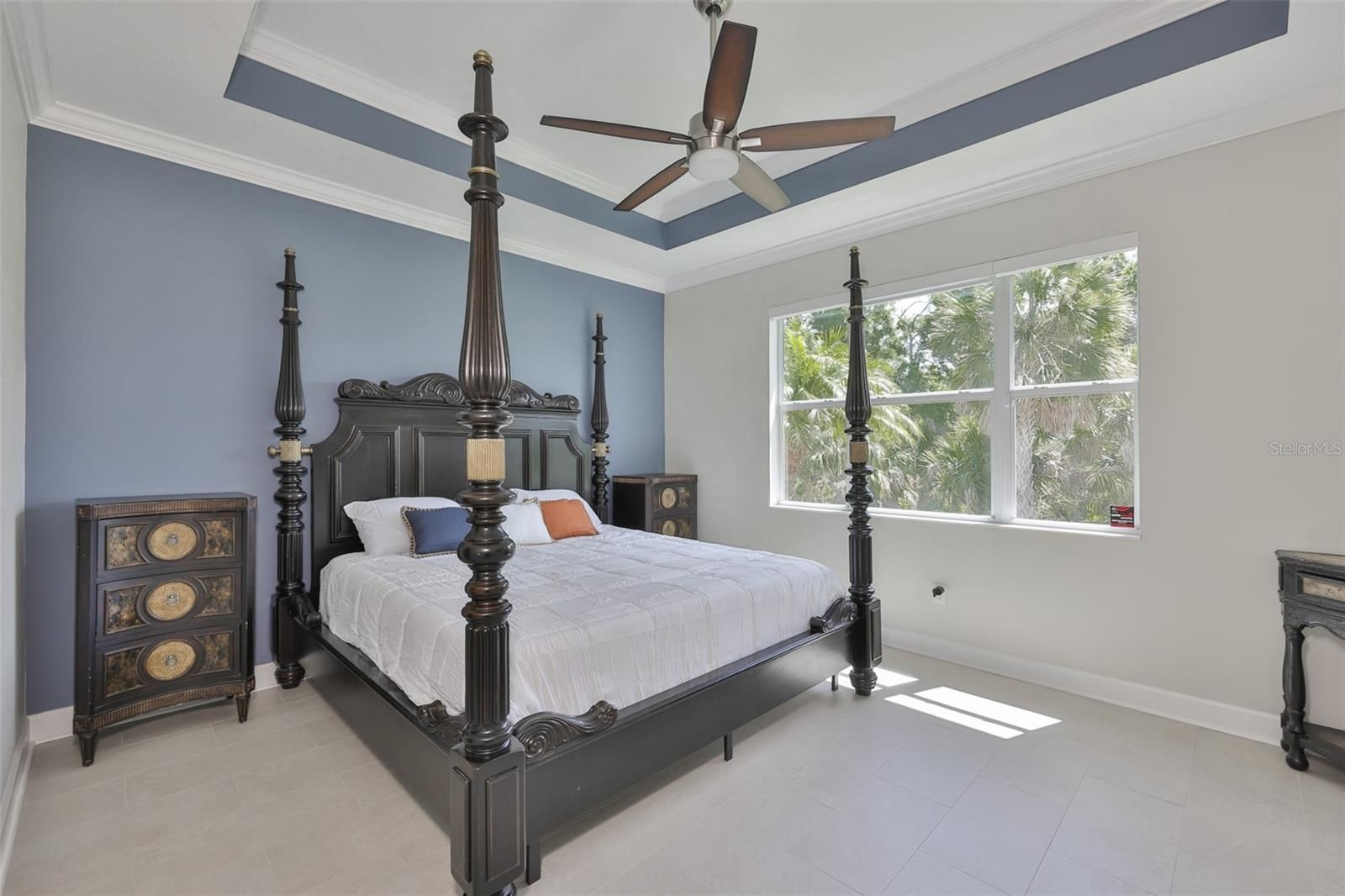 - Ceiling Fan(s), Crown Molding, High Ceilings, Kitchen/Family Room Combo, Living/Dining Room, Open Floorplan, Main Level Primary, Smart Home, Solid-Wood Cabinets, Split Bedrooms, Stone Counters, Thermostat, Tray Ceiling(s), Walk-In Closet(s), Window Treatments