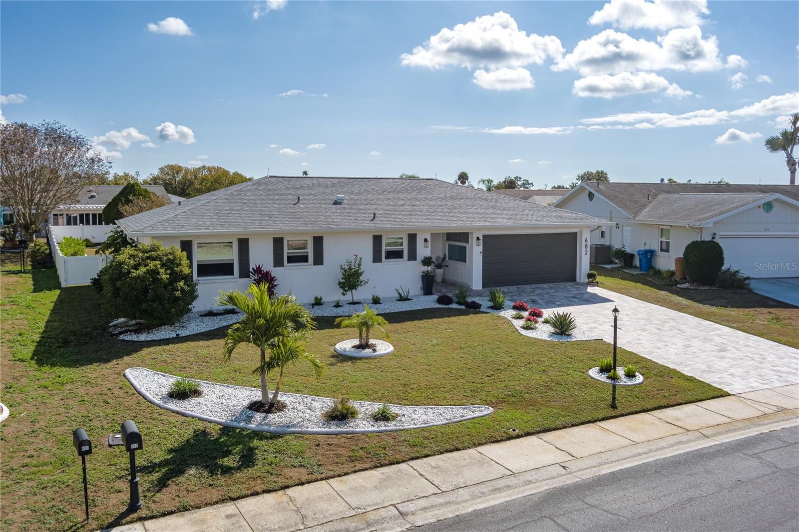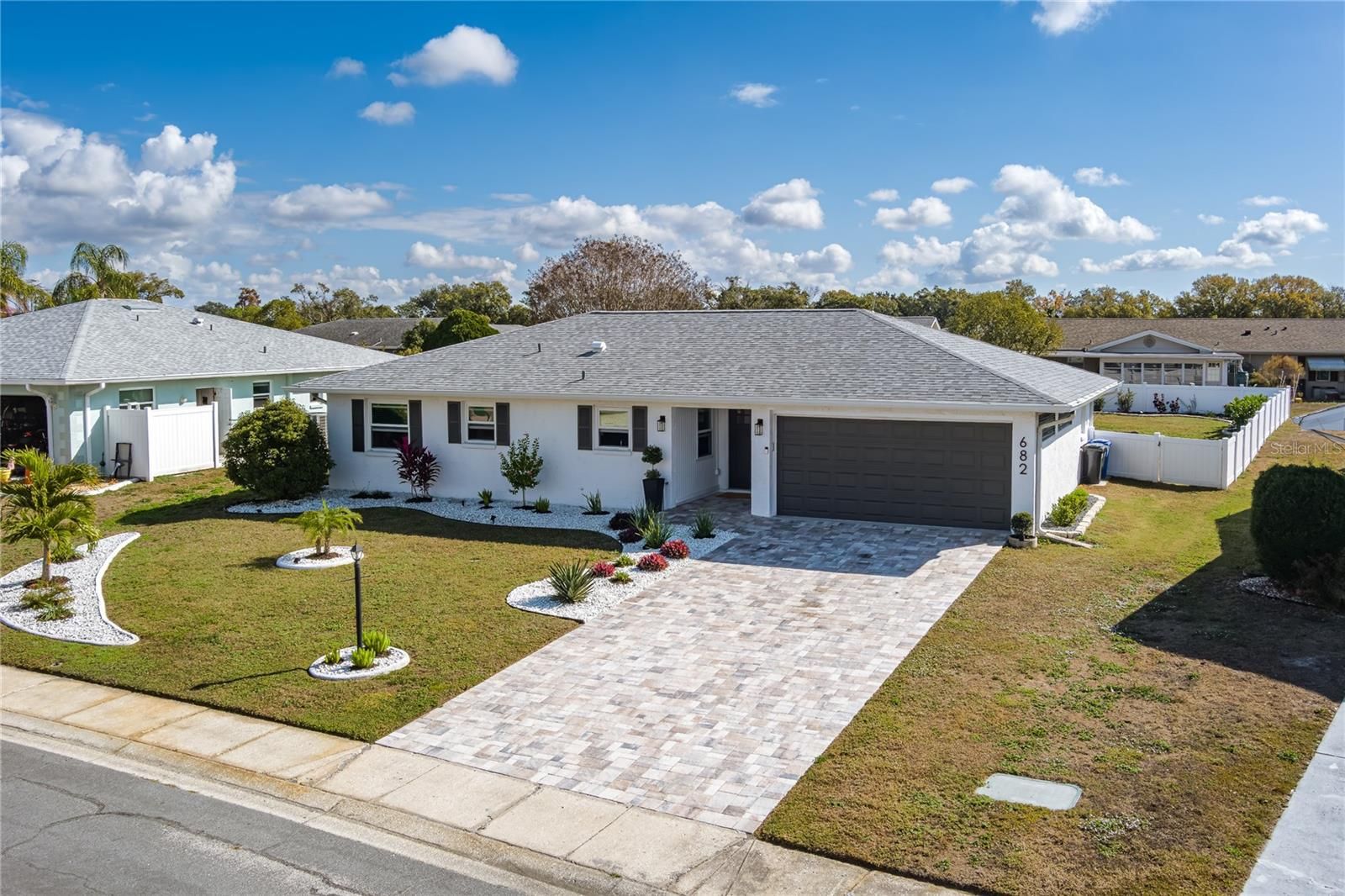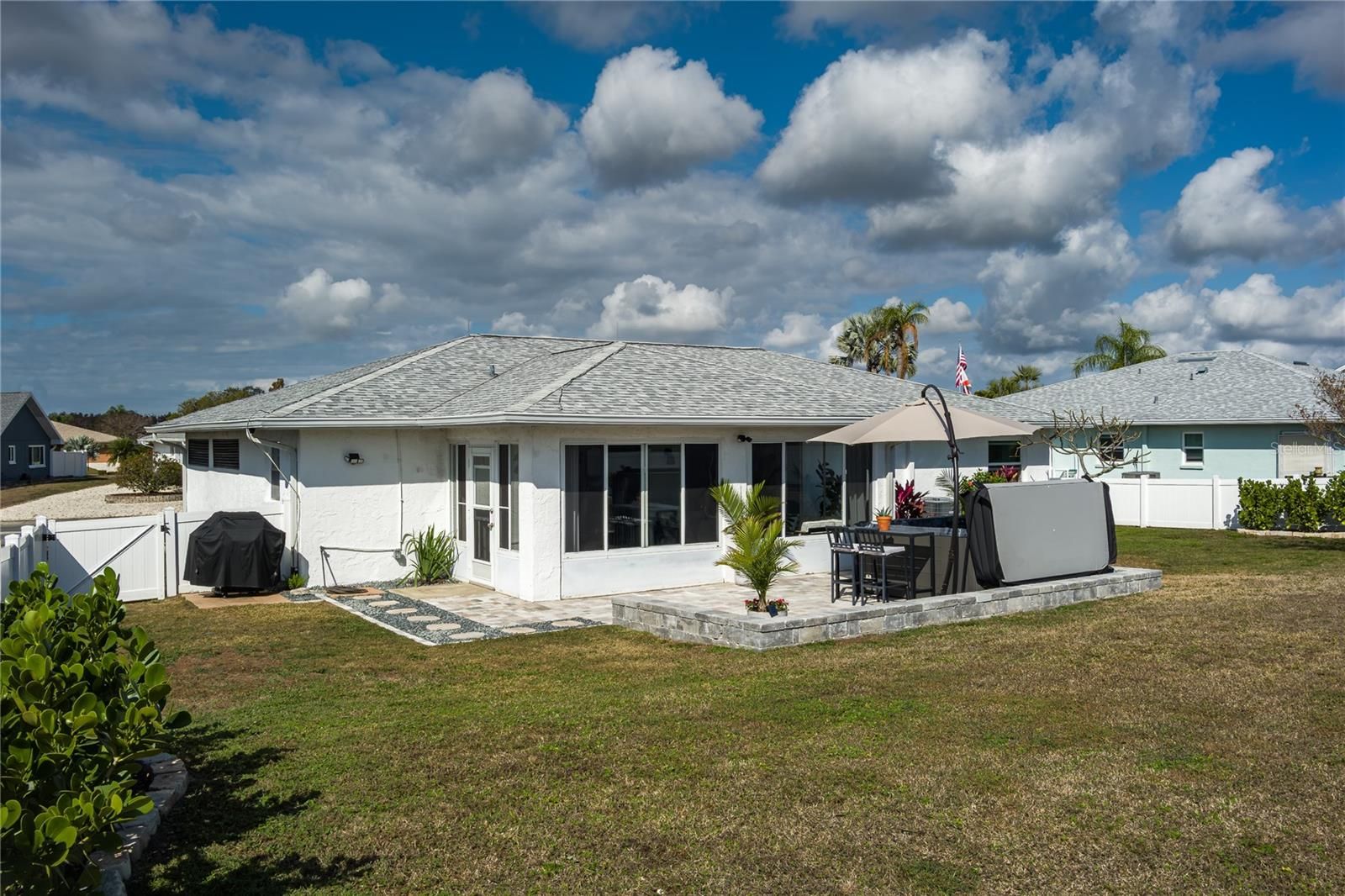 Designed for comfort, style, and effortless Florida living, this beautifully updated 2-bedroom, 2-bath home with a 2-car garage is located in the heart of Sun City Center’s desirable 55+ community. Thoughtfully enhanced with quality upgrades throughout, the home offers a bright, cohesive layout, gorgeous finishes, and inviting indoor-outdoor spaces ideal for enjoying an active retirement lifestyle. From the moment you arrive, the new paver driveway and eye-catching landscaping create impressive curb appeal. Inside, the home feels light and welcoming with new luxury vinyl plank flooring throughout, updated lighting, neutral finishes, and a clean, modern feel from room to room. The kitchen is both functional and inviting, featuring granite countertops, newer stainless steel appliances, a convenient pass-through to the living area, and two pantries for exceptional storage. The open layout flows seamlessly into the living and dining spaces, making everyday living and entertaining easy. The primary bedroom is located at the front of the home, offering a comfortable retreat with great natural light, a spacious walk-in closet, and a stylish touch you don’t see every day: a barn door entry leading into the updated ensuite bathroom. The ensuite features a beautifully tiled walk-in shower with glass enclosure and modern finishes, creating a spa-like experience. The second bedroom overlooks the backyard, making it perfect for guests, a hobby room, or a peaceful home office. One of the home’s standout features is the spacious enclosed lanai with ceramic tile flooring, providing a versatile year-round space for relaxing or entertaining. Step outside to enjoy the new backyard pavers, the sellers’ favorite hot tub spa, and beautifully refreshed landscaping in both the front and rear yards—perfect for enjoying Florida’s sunshine in comfort and privacy. Additional improvements include hurricane-impact windows (2022), a new A/C system (2021), privacy fence (2021), water heater (2020), and a roof replacement (2019). The extra-large utility/laundry room offers space for hobbies and storage, with additional storage available in the garage. Sun City Center residents enjoy an unmatched array of amenities including a state-of-the-art fitness center, golf courses, tennis and pickleball, indoor and outdoor pools and hot tubs, walking trails, dog parks, a library, woodworking shop, ceramics and pottery studios, stained-glass and weaving studios, lawn bowling, and countless clubs and activities. Convenient access to I-75 makes trips to Tampa, Sarasota, and Florida’s Gulf Coast beaches simple and accessible. This move-in-ready home offers comfort, quality, and lifestyle—an ideal opportunity to enjoy the very best of 55+ living.