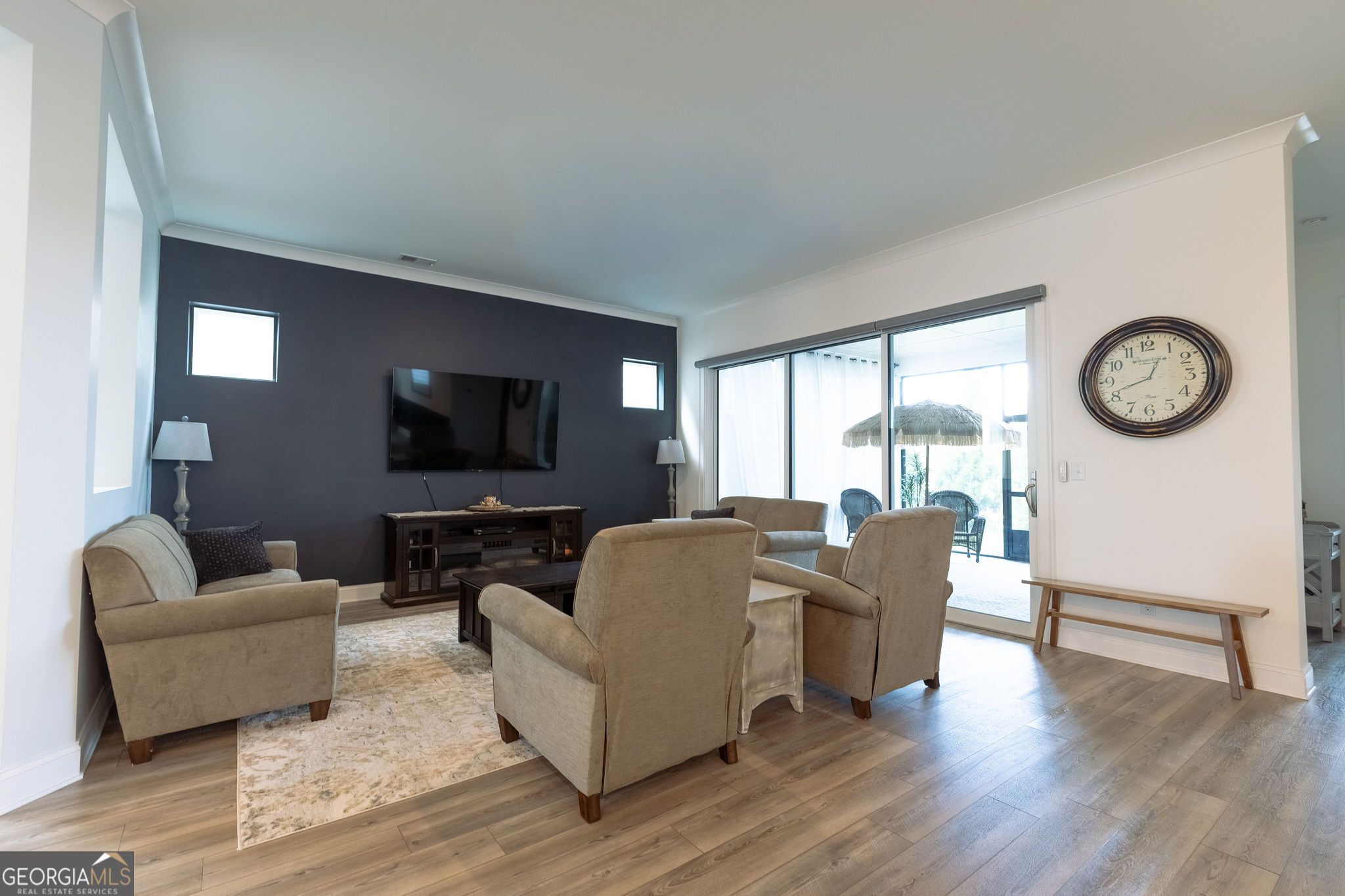 Welcome to your dream home! Master on main!!! This beautiful upgraded 2-bedroom, 2-bath Split-plan is nestled in the highly desirable 55+ gated community of The Retreat at Sterling on the Lake. With more features and upgrades than new construction, this move-in ready home offers an exceptional lifestyle in a tranquil setting. Step into the heart of the home where the gourmet kitchen is sure to impress. Featuring custom white cabinetry that extends to the ceiling, top glass cabinet fronts with LED lighting, and dark blue base cabinets, this kitchen blends modern style with functionality and comes with high-end appliances. The oversized kitchen island with stunning granite countertops is perfect for meal prep or hosting guest, complemented by pendant lighting and a matching faucet. Natural light pours into the great room through a 12 foot cascading glass door, leading to a private, screened -in patio. Here you can enjoy morning coffee or entertain in style, surrounded by nature and peaceful views. The formal dining room features elegant judges paneling, making it perfect for special occasions. For those needing a quite space to work or relax, the versatile study/office, flooded with natural light, is complete with a trey ceiling for added charm. Your luxurious owner's suite offers a serene retreat, with a spacious walk-in closet and spa-like bathroom . This oversized shower with a waterfall shower head and zero-entry flooring will make you feel like you're at a resort. Double vanities, extended counters and an additional linen closet ensure both style and convenience. With a split-bedroom plan, the guest room enjoys privacy and is located next to a full bathroom, making this ideal for visitors or family members. Additional features: Crown molding throughout, two-car garage with epoxy flooring and irrigation system for front and back yard. Living at The Retreat at Sterling on the Lake means more than just a home- it's a lifestyle! The community offers : -separate clubhouse, fitness center, pool and tennis/pickle ball courts -lakeside pavilion, outdoor fireplace and walking trails -social events such as food trucks, festivals and fireworks HOA includes weekly lawn maintenance This home is a perfect blend of luxury, comfort, and convenience, with access to resort-style amenities and a vibrant community. Come see what makes this home and the neighborhood truly special Schedule your tour today