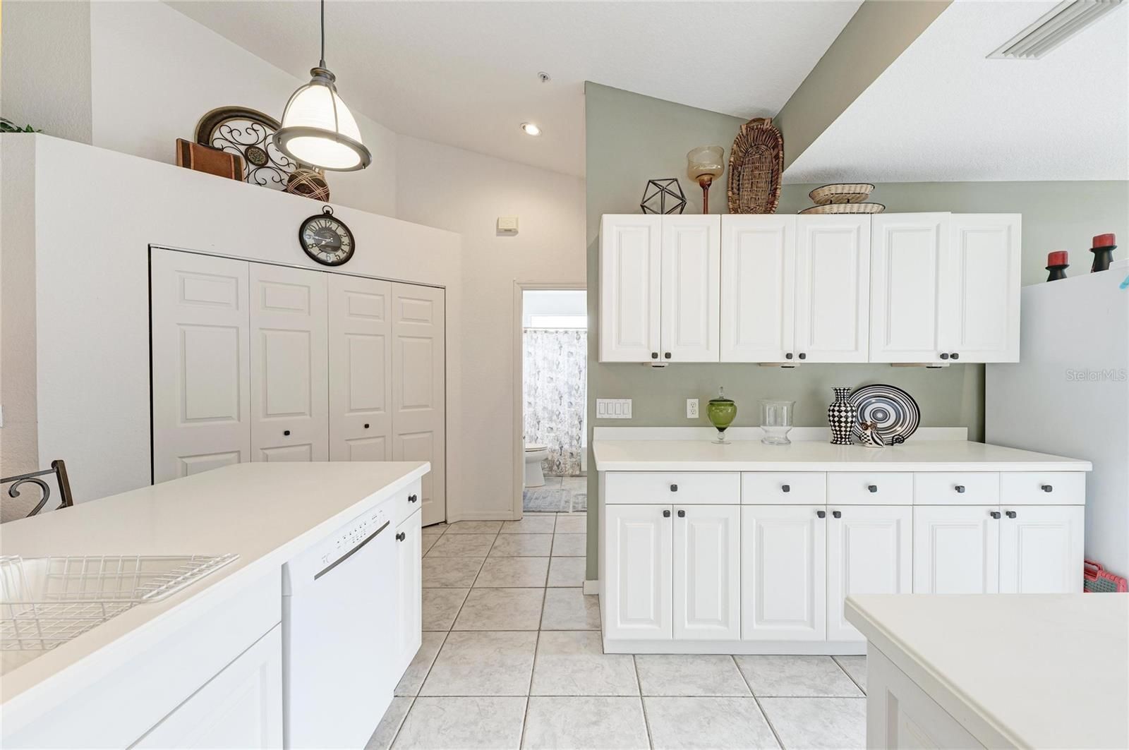 - Ceiling Fan(s), Living/Dining Room, Main Level Primary, Solid Surface Counters, Thermostat, Vaulted Ceiling(s), Walk-In Closet(s)