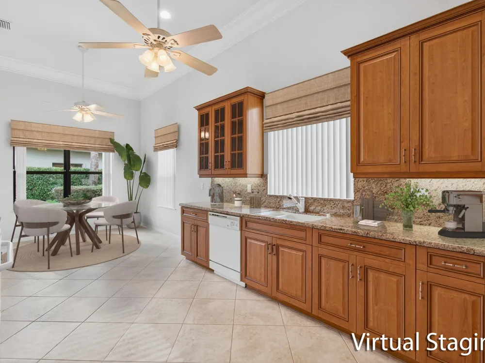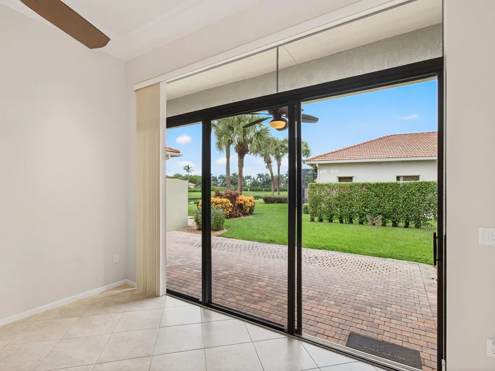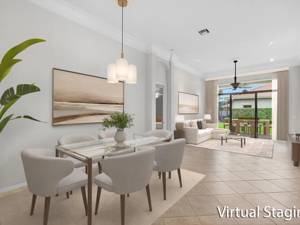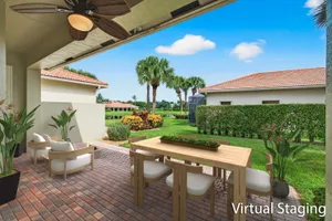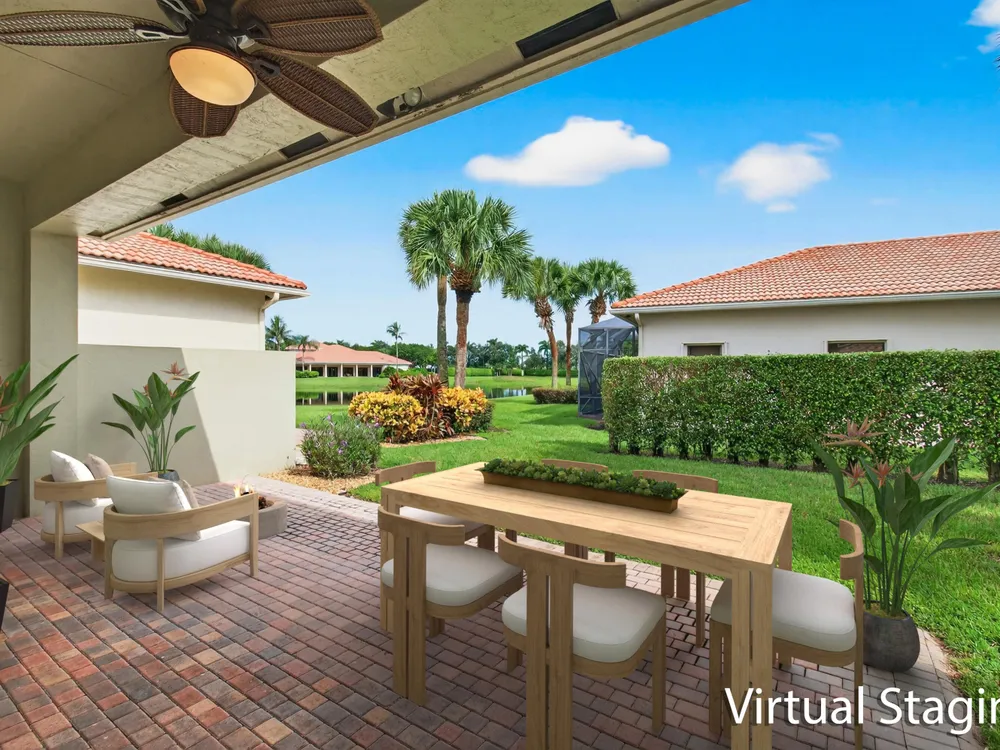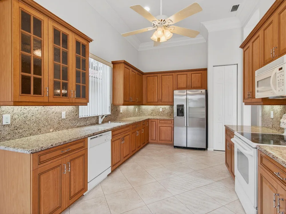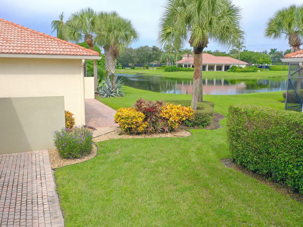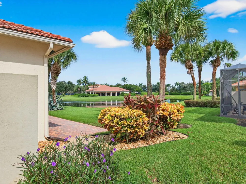 AGGRESSIVELY PRICED for today's market, this home offers privacy and a SNEAK PEEK of the lake-without the cost of a full lakefront! Plus a $5000 seller credit at closing. Enjoy alfresco dining on the extended paver patio, surrounded by total privacy, with plenty of room to build your own pool.This pristine Grigio model showcases diagonal tile throughout and wood-look porcelain planks in the primary suite. High ceilings flood the home with natural light and are beautifully accented by large crown molding. The oversized breakfast room-perfect for morning coffee-offers the best lake view from the home.