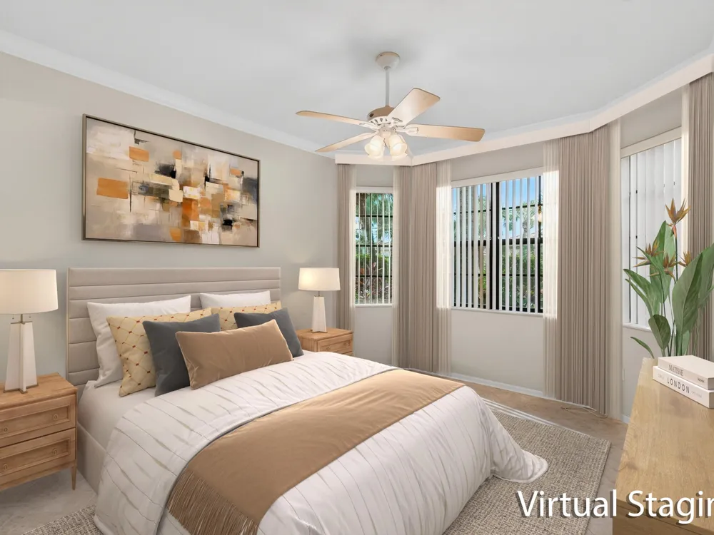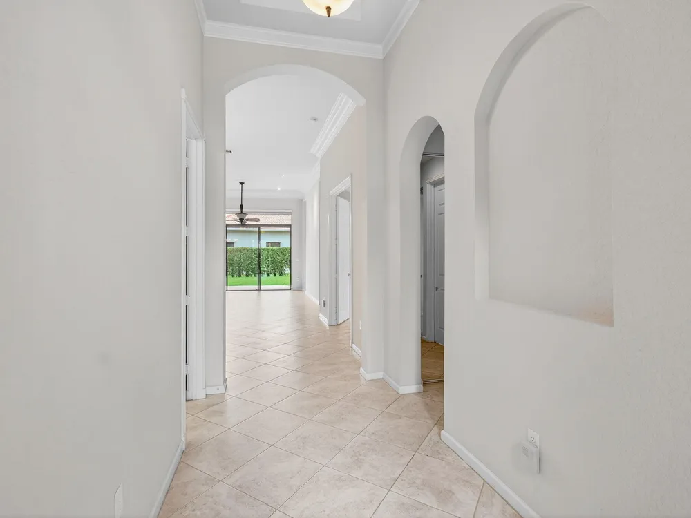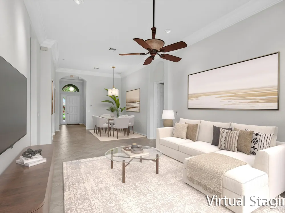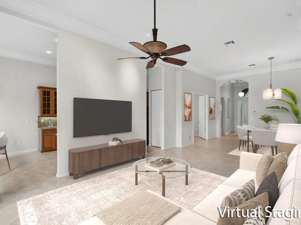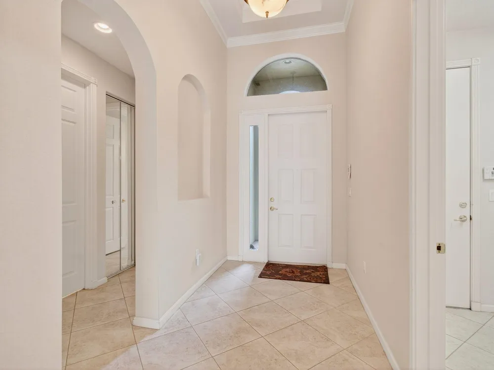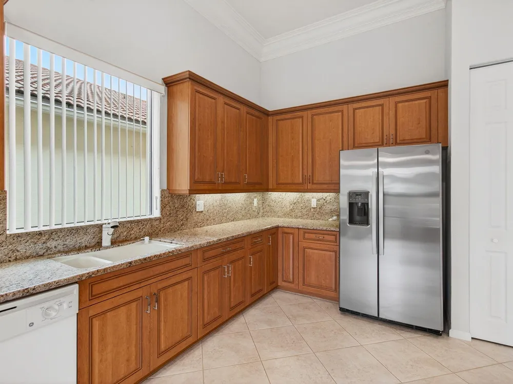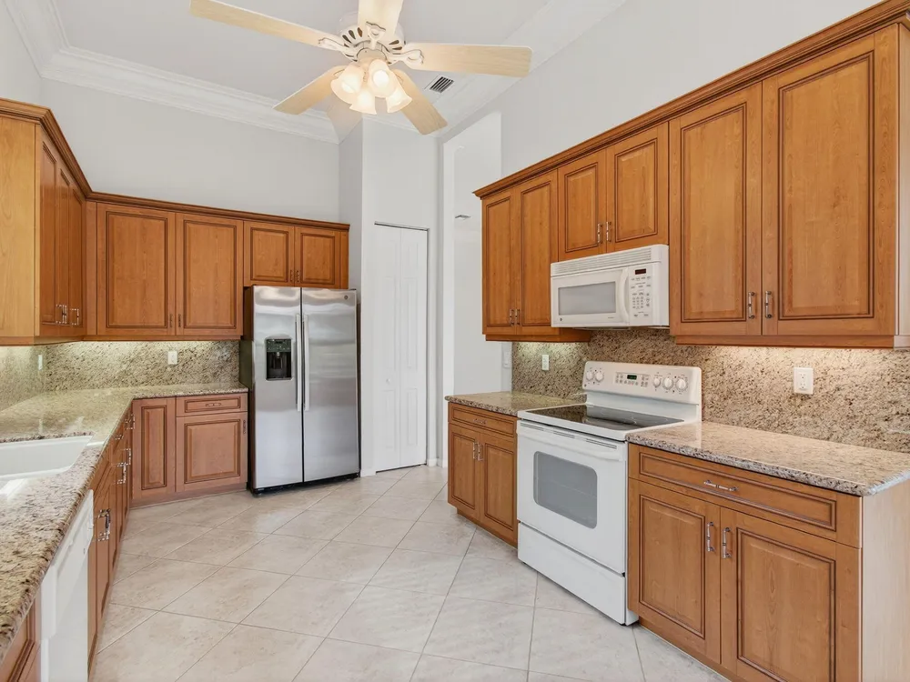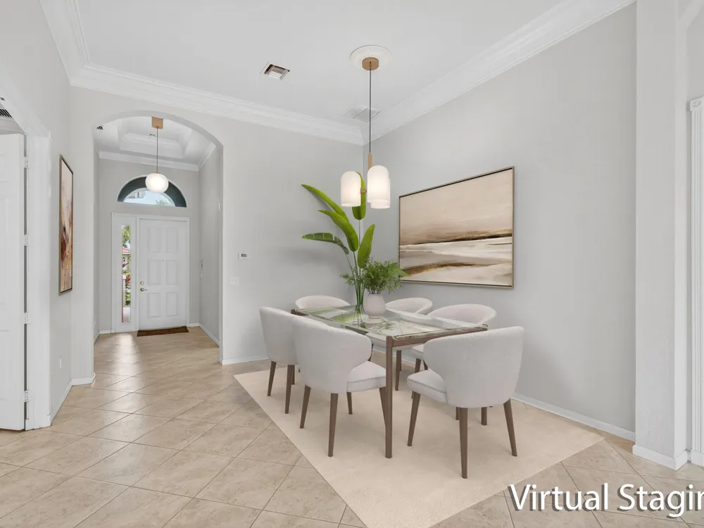 AGGRESSIVELY PRICED for today's market, this home offers privacy and a SNEAK PEEK of the lake-without the cost of a full lakefront! Plus a $5000 seller credit at closing. Enjoy alfresco dining on the extended paver patio, surrounded by total privacy, with plenty of room to build your own pool.This pristine Grigio model showcases diagonal tile throughout and wood-look porcelain planks in the primary suite. High ceilings flood the home with natural light and are beautifully accented by large crown molding. The oversized breakfast room-perfect for morning coffee-offers the best lake view from the home.
