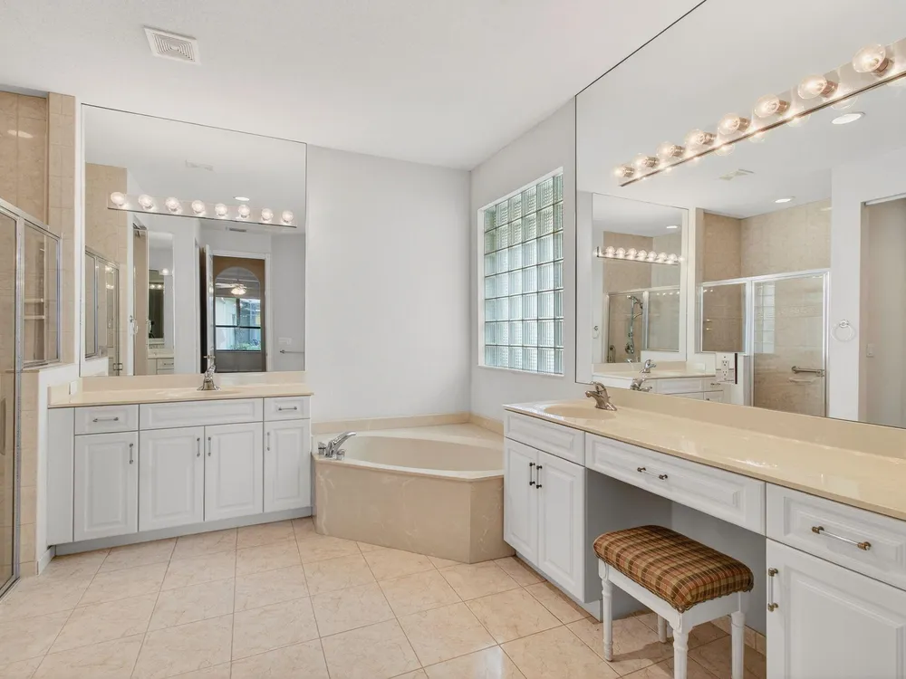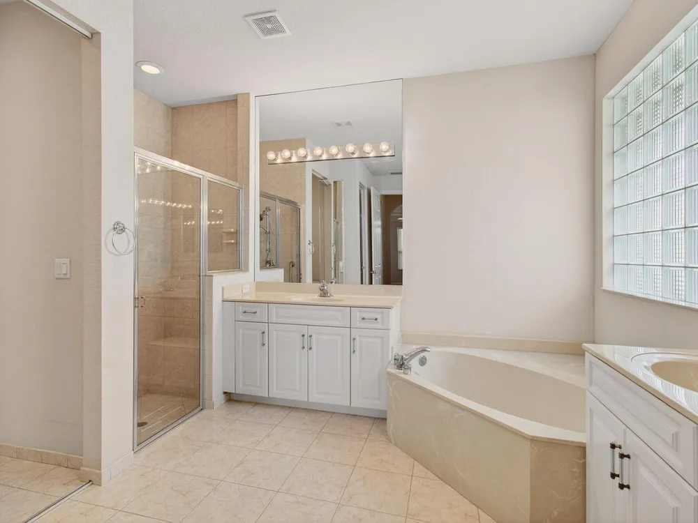 - Entrance Foyer, Pantry, Garden Tub/Roman Tub, Split Bedrooms, High Ceilings, Walk-In Closet(s), Great Room, Breakfast Area, Eat-in Kitchen, Separate/Formal Dining Room, Arched Window(s), Bay Window, Single Hung Metal Window(s), Sliding Window(s), Window Vertical(s), Dual Sinks, Primary Downstairs, Separate Shower, Bathtub