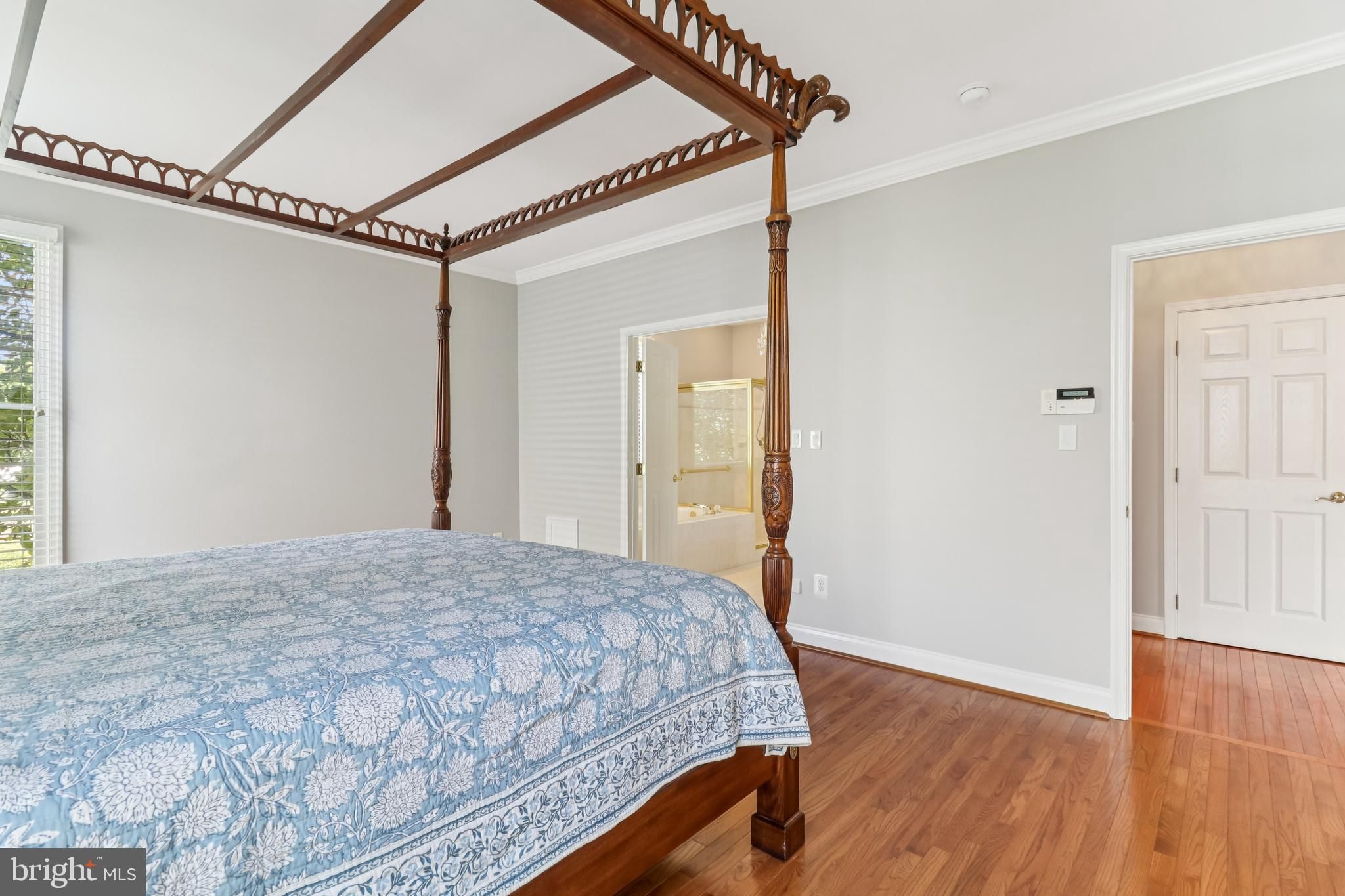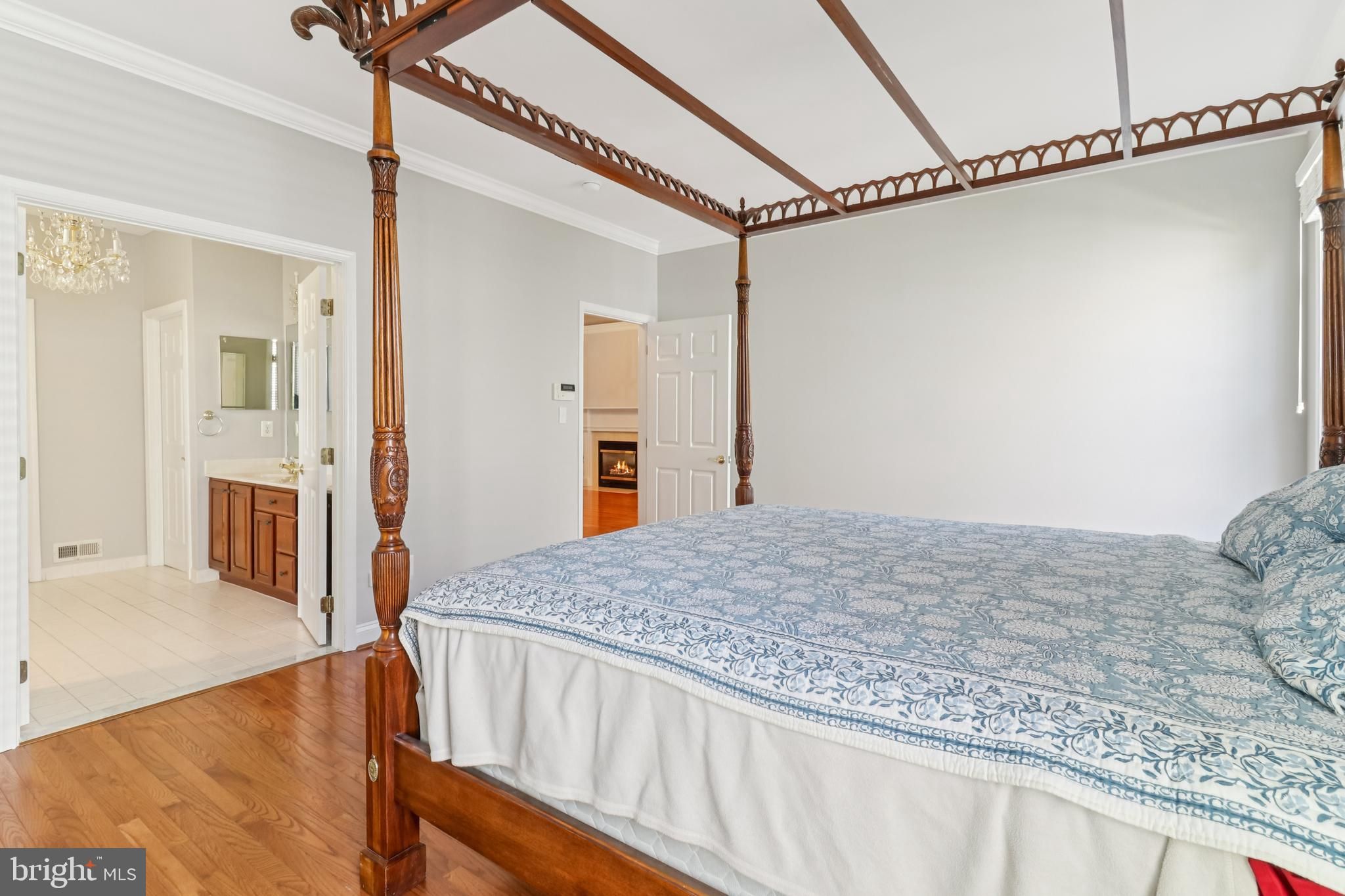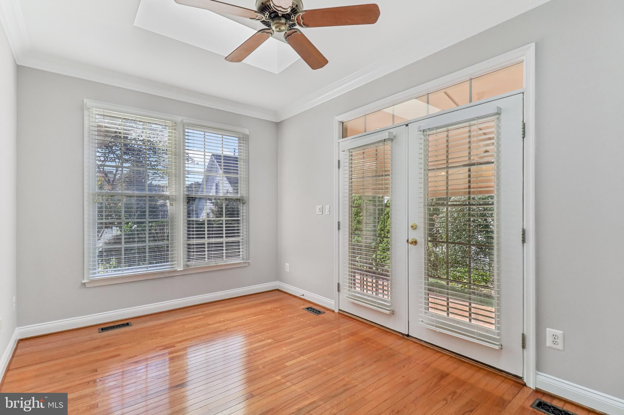 This stunning two-level home sits on a corner lot in a quiet cul-de-sac. Move in ready! Sellers just painted the entire house, replaced carpets in 4 downstairs rooms and professionally cleaned all remaining carpets (2nd bedroom, primary closet, and bedroom 4 (NTC). Meticulously maintained by just one set of owners, this home blends classic charm with thoughtful custom touches throughout. Step inside the large welcoming foyer to be greeted by beautiful original wood floors throughout the main level which offers: a formal dining room, a formal living room with built-ins, a gas fireplace and elegant crown molding, a private office or library, a primary bedroom suite with a large full bathroom and walk in closet, a sunroom leading to a brick patio, a second bedroom and a second full bath. The kitchen features cherry cabinets, glass-paneled doors to display your treasured collections, unique cup shelving, and more, perfect for both cooking and entertaining. Kitchen is plumbed for gas oven if new owner prefers gas cooking to electric. Stainless steel Refrigerator: 2010, stainless steel Microwave 2017, stainless steel Double Oven 2025 with multiple functions and stainless steel Dishwasher 2025. The lower level, finished in 2005, adds incredible space and versatility and includes: a large recreation room with custom built-ins and gas fireplace, a third full bathroom, two medium sized rooms currently used as bedrooms (NTC), a cedar-lined room perfect for off-season clothing storage, two additional rooms ideal for office or library use and a huge utility room prefect for a work space or additional storage. The outside has been masterfully landscaped with a wonderful assortment of trees, bushes and plants on all four sides of the home, creating extra privacy and an outside oasis. An incomplete list of trees are: Magnolia, Japanese Maple, Crepe Myrtle, Cherokee Brave Pink Dogwood. There are also lots of amazing mature shrubs and flowering plants. Enjoy serene mornings and evenings on the patio. Beyond the home, Heritage Hunt offers a gated community lifestyle offering: a championship golf course, two stunning clubhouses with ballrooms, restaurant and bar facilities, tennis and pickleball courts, indoor and outdoor pools, scenic walking and jogging paths, ponds, fountains and beautifully landscaped common areas. All the conveniences you need close by including: medical facilities, restaurants and shopping, wineries, and breweries. Located just 30 miles west of Washington, D.C., Heritage Hunt is a 55-plus, active-living, gated community with over 750 acres of lush grounds with a strong sense of community. Here, you can live life to the fullest, make lasting friendships, and truly enjoy community living. Don’t miss your chance to own a home that’s ready for your personal touch in a vibrant, amenity-rich community. Finished square footage and room sizes are only approximate. Please reference floor plans for accurate information. HOA fees include internet, phone, and cable TV. HVAC 2023, Water Heater 2019, Roof replaced approximately 5 years ago.