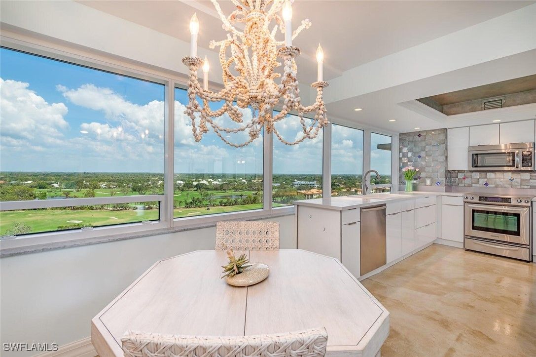 Imagine living amidst the colors of the sea in this creatively-updated, expansive-view residence. This furnished 11th floor unit is truly a treasure to behold, boasting unique custom design elements and finishes throughout. Enjoy the sunrise over the Pelican Bay Country Club Golf Course from your eat-in kitchen. Savor the sunsets over the gulf before dinner on your outdoor lanai. Spacious, light and bright best describes it. Gulf-front, glassed-in lanai off the master bedroom suite offers added den/office space. The beautiful St. Pierre is centrally-located along the berm with tram service just steps away to Pelican Bay’s beaches and restaurants moments away. Amenities abound in the prestigious St. Pierre including thoughtfully-redesigned, beautifully-updated common areas offering a modern, sophisticated living environment. New exercise room, luxurious guest suites, tennis courts, pickleball, bocci, shuffleboard, pool, spa and social rooms complete the package of convenience and enjoyment here. Luxury living at it’s finest!