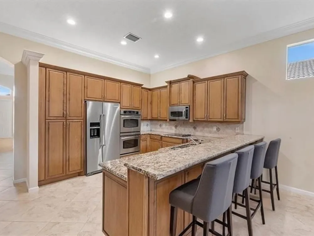 COMING SOON! Stunning Valencia Palms Indian Model Featuring 2353 Sq Ft Under A/C, Nestled on A Private Lot W/ Open Split Floor Plan, Volume Ceilings, Neutral Tile, Crown Molding, LED Lighting, Gourmet Kitchen W/ SS Appliances, Double Ovens, Custom Wood Cabinets, Snack Bar & LED Lighting. Huge Primary Suite Offers Tray Ceilings, Double Custom Closets, Dual Sinks, Seamless Glass Shower & Soaking Tub. Third Bedroom Set Up As Office W/ Custom Built-in Desk. Resort Style Clubhouse With Fitness Center, Lap Pool, Resistance Pool, Billiard Room, Cafe', Tons Of Clubs, Events, Shows, Grand Ball Room, Pickleball, Tennis, Bocce Ball & More! Live The Country Club Lifestyle Without The Fees. Maint. Inc. Cable, Alarm/Security, Internet, Cafe Card, Painting of Exterior, Ext. Pest Control, Landscaping +.