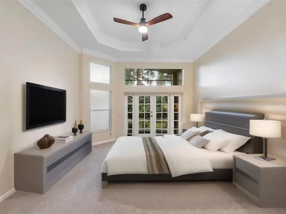 - Built-Ins, Closet Cabinetry, French Doors, Roman Tub, Split Bedroom, Volume Ceilings