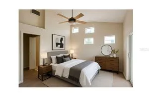 - Cathedral Ceiling(s), Ceiling Fan(s), Eat-in Kitchen, Living/Dining Room, Open Floorplan, Upper Level Primary, Split Bedrooms, Vaulted Ceiling(s), Walk-In Closet(s)