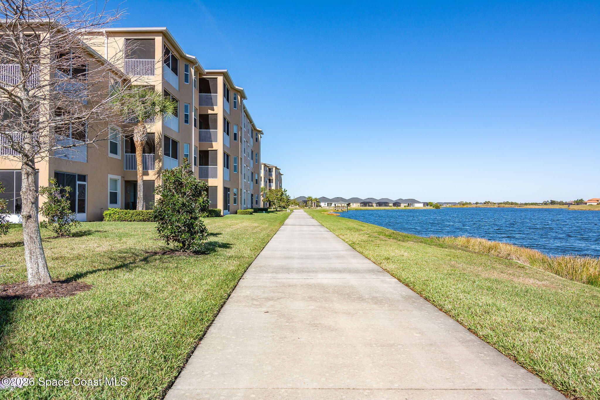 This is the best priced condo in Heritage Isle, Viera's most prestigious 55+ community. This lovely 2 bedroom 2 bath unit offers a spacious eat-in kitchen with loads of white raised panel cabinets, solid surface countertops, tile flooring and lake views! The kitchen is open to the large great room - living / dining combo with an 8 foot sliding glass door to the large screen porch. Watch waterfowl from your living room! Your view beyond the lake is of estate homes, Primary suite is large enough for a king size bed and also has a lake view. His and hers walk-in closets, and a lovely primary bath with a large vanity and a glass door to the walk-in shower. The guest bath offers a tub/shower arrangement along with a single sink vanity, This area also accommodates a laundry closet. Overall a neat clean unit that just needs some new carpeting. Come home to live the luxury Heritage Isle lifestyle.