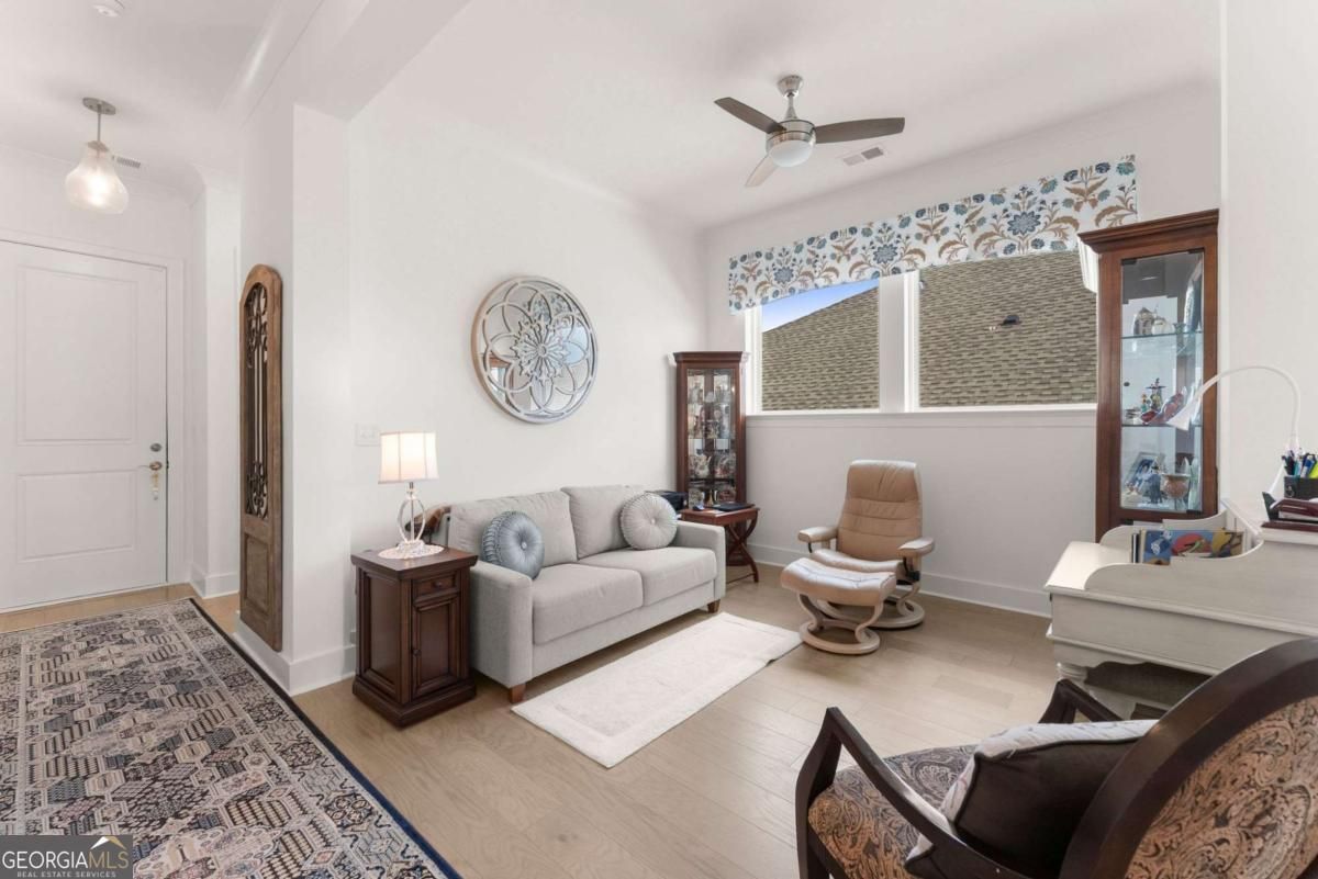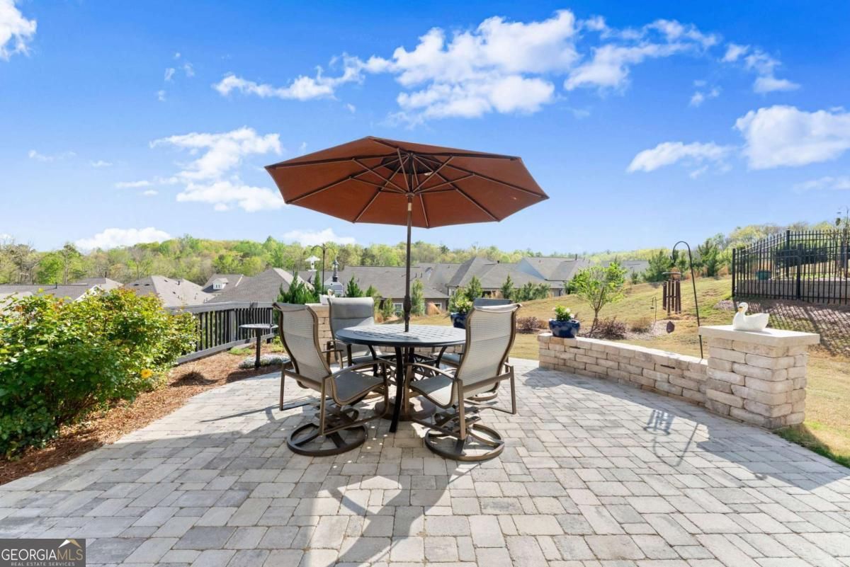 Experience resort-style living at The Retreat at Sterling on the Lake. This beautifully upgraded David Weekley home in the exclusive 55+ gated community, The Retreat at Sterling on the Lake, combines luxury, comfort, and an unbeatable lifestyle. Step into a chef's dream kitchen featuring quartz countertops, a 5-burner gas cooktop with custom stainless steel vent hood, stainless steel appliances, and a massive island perfect for entertaining. The open floor plan features hardwood floors, 10-foot ceilings, and crown molding add timeless elegance. Other upgrades include remote blinds in the living areas and black-out shades in the Primary Bedroom. The showstopper is the covered back porch with newly added paver patio with stone wall. Enjoy endless birdwatching in professionally landscaped front and back yards. Weekly lawn maintenance makes living here a breeze. Here, it's not just a home, it's a lifestyle. The Retreat offers private amenities including a clubhouse, pool, tennis courts and a bocce court plus access to Sterling on the Lake's resort-style pools, tennis and pickleball courts, fitness center, theater, library, kayaking, and miles of walking trails. With community events like Food Truck Fridays, Concerts in the Park, and Holiday Celebrations, there's always something to do. HOA- maintained landscaping means more time to enjoy life. There is so much to do and enjoy your guests will never want to leave. Close to Lake Lanier, shopping, and dining, and with Hall County senior tax exemptions available to those who qualify, this home is the perfect blend of beauty, convenience, and community.