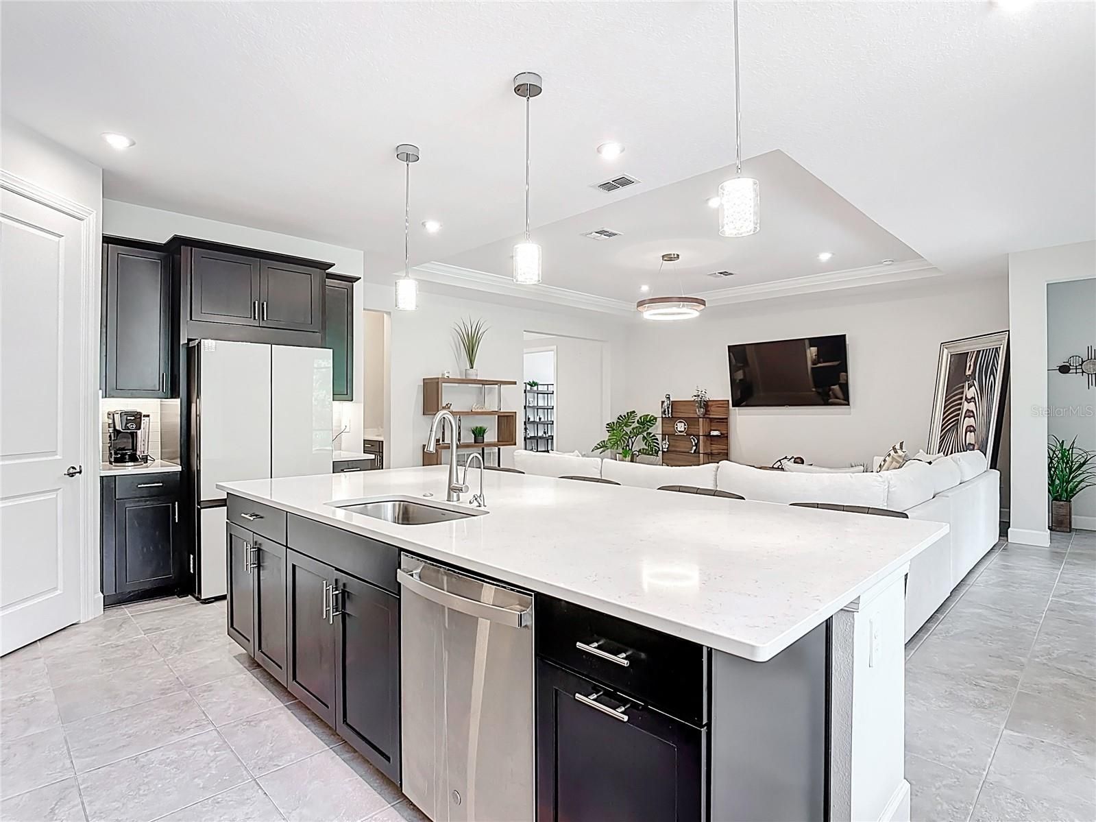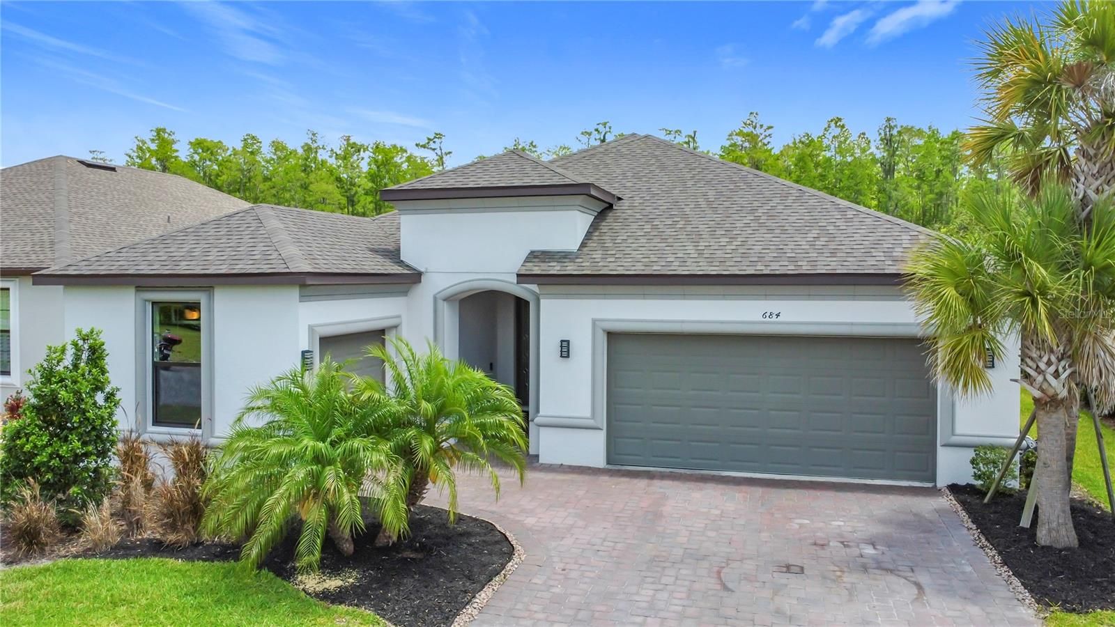 One or more photo(s) has been virtually staged. Outstanding BASTA model, BETTER THAN NEW, built in 2022 on an easterly facing CONSERVATION lot in the Vittoria subdivision of Solivita. **See the FULL LENGTH VIDEO on Tour Link 1.** Front of the house has ARCHITECTURAL STONE accents, the ENTRYWAY is SCREENED and the front door & sidelight have CRYSTALLITE LEADED GLASS INSERTS. 8' doors, 5 1/2" BASEBOARDS and DOUBLE PANE VINYL FRAME WINDOWS throughout. 18" CERAMIC tile flooring in all main living areas with carpet in bedrooms. Tray Ceilings in Foyer, Great Room, Dining Room & Primary Bedroom. UPGRADED CUSTOM LED LIGHT FIXTURES in Foyer, Great & Dining Rooms. GOURMET KITCHEN features QUARTZ counters, French Door refrigerator with GLASS DOORS, touch COOKTOP, RANGE HOOD, BUILT-IN Microwave & OVEN, 42" UPPER CABINETS with CROWN MOLDING, POT DRAWERS in lower cabinets, RECESSED & PENDANT lights, SUBWAY TILE BACKSPLASH, UNDERMOUNT sink with BUILT-IN WATER FILTER and a walk-in PANTRY. Great Room has recessed lights. Primary Bathroom has a WALK-IN shower with SEAMLESS GLASS, dual entries and UPGRADED tile, a QUARTZ counter, DUAL SINKS plus a MAKEUP area, a LINEN closet and WALK-IN closet. 2nd & 3rd Bedrooms have closets with French Doors and bathrooms with Corian counters & linen closets. 3rd Bathroom has a tub with shower & 2nd Bathroom has as a walk-in shower. Laundry Room has a wash basin and upper & lower cabinets. There is a DROP ZONE leading into the house from the garage with a Corian counter and cabinet. The LANAI is EXTENDED and is partially covered & screened. It faces east and offers views of rocket launches from the Kennedy Space Center. 2 Car Garage PLUS a separate GOLF CART GARAGE. ***Solivita is an active adult 55+ community located in Kissimmee, Florida. It is approximately 50 minutes from Disney World & the Orlando International Airport. Solivita has a total of 5,470 homes. Approximately 10,000 - 11,000 people live in Solivita during the winter while approximately 7,500 live in Solivita during the summer. Enjoy your active years in this piece of paradise. Solivita's amenities include: - a manicured SOFTBALL diamond & field - 36 holes of CHAMPIONSHIP GOLF that can be played by joining the Stonegate Golf Club or paying as you go - 2 STATE of the Art AMENITY centers with updated exercise equipment, yoga studio & meeting rooms - 3 restaurants - 14 HEATED POOLS - 17 PICKLEBALL courts - 9 TENNIS courts - 4 BOCCE BALL courts - 4 SHUFFLEBOARD courts - 3 HORSESHOE pits - a BILLIARDS room - miles of bike paths - 2 DOG PARKS (Small & Large Dogs) - Corn Hole - Tot Lot PLAYGROUND - COMMUNITY GARDEN - over 250 resident clubs. The HOA: - maintains the LANDSCAPING & IRRIGATION systems in the common areas as well as at individual homesites - maintains the roads throughout the community - PROVIDES SECURITY with gate guards and mobile patrols including the Polk County Sheriff - allows AUTOMATED GATE ACCESS for residents via license plate readers - provides residents with Fiber Optic Internet & TV service.***Poinciana Lakes Plaza is a MAJOR NEW SHOPPING CENTER that opened directly across from the Solivita Main Gate in Summer of 2024. It features Sprouts Grocery, TJ MAXX, Ross, Burlington, Rack Room Shoes, 5 Below, Ulta, Outback, First Watch, 5 Guys, Urgent Care, Dentist, TD Bank, Petco & Hair Cuttery PLUS MORE TO COME.***