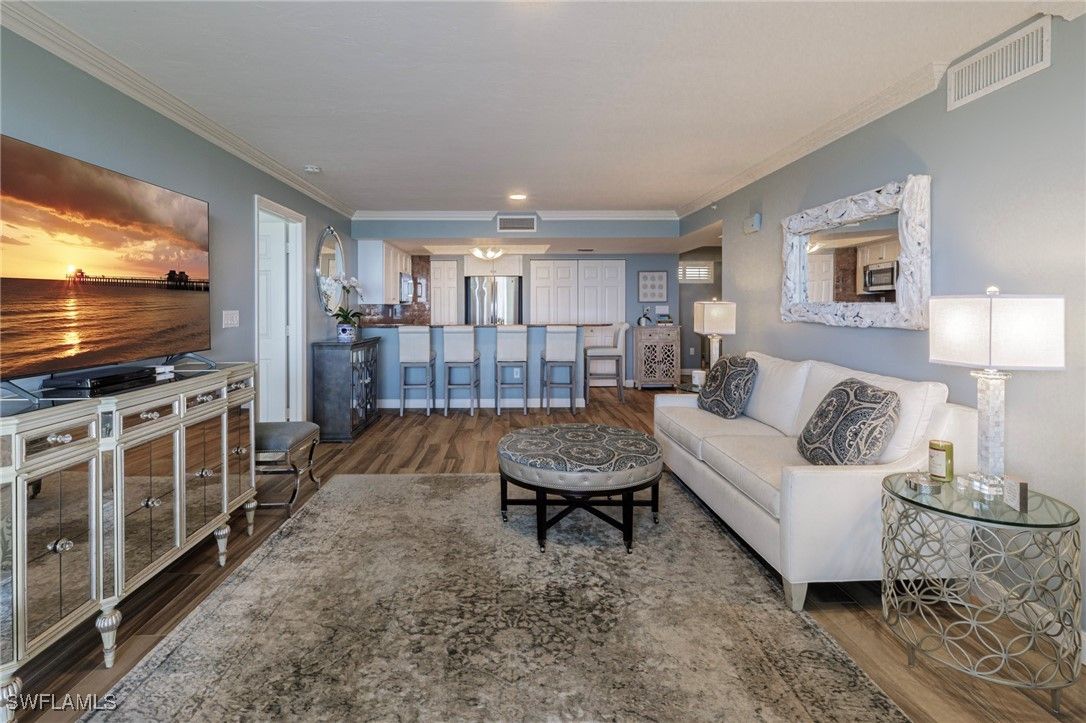 Stunning 18th-floor condo in the prestigious St. Laurent offers panoramic, unobstructed views of the Gulf and breathtaking sunsets. Designed with elegance and comfort in mind, this spacious residence features two master suites, a custom bar area with a wine refrigerator and quartz countertops, and ample storage, including a large pantry. The first master suite is a true retreat, with an extended living area ideal for an office or exercise space, along with exquisite wallpaper accents, three closets, dual vanities, a large soaking tub, and a walk-in shower. The second master suite boasts a generously sized walk-in closet and a luxurious walk-in shower. Both suites offer privacy and comfort, with sweeping views from every window. The expansive, extended balcony provides the perfect setting for entertaining, offering plenty of space for dining and lounging with seating for eight guests. The kitchen features a large bar area with ample seating, perfect for gatherings and casual meals. There is a brand new Trane aircondition conpressor as of Nov 19, 2025. St. Laurent Amenities • Private pickleball and tennis courts • Assigned garage parking • Heated pool and spa • Sauna and fitness center • Library, social room, and two guest suites • Active social committee managing a variety of entertainment activities Pelican Bay Amenities • Two private beach dining clubs • Chair and umbrella service at the beach • Complimentary use of kayaks, paddle boards, sailboats, and Hobie Cats • Beachfront entertainment four nights a week during season • Community center with yoga and fitness classes, bridge and book clubs, Mahjong, and art classes • A thriving tennis community with 20 courts and additional pickleball courts under construction • Private golf club access through Club Pelican Bay This exceptional residence combines luxury, comfort, and an active lifestyle, all within one of Naples' most sought-after communities.