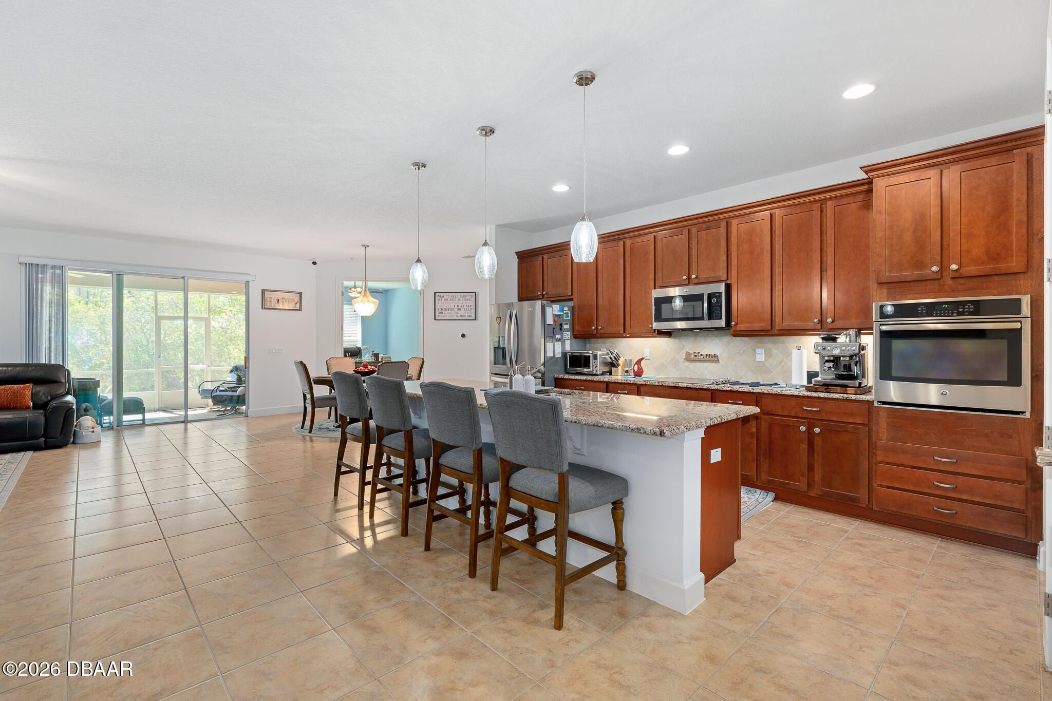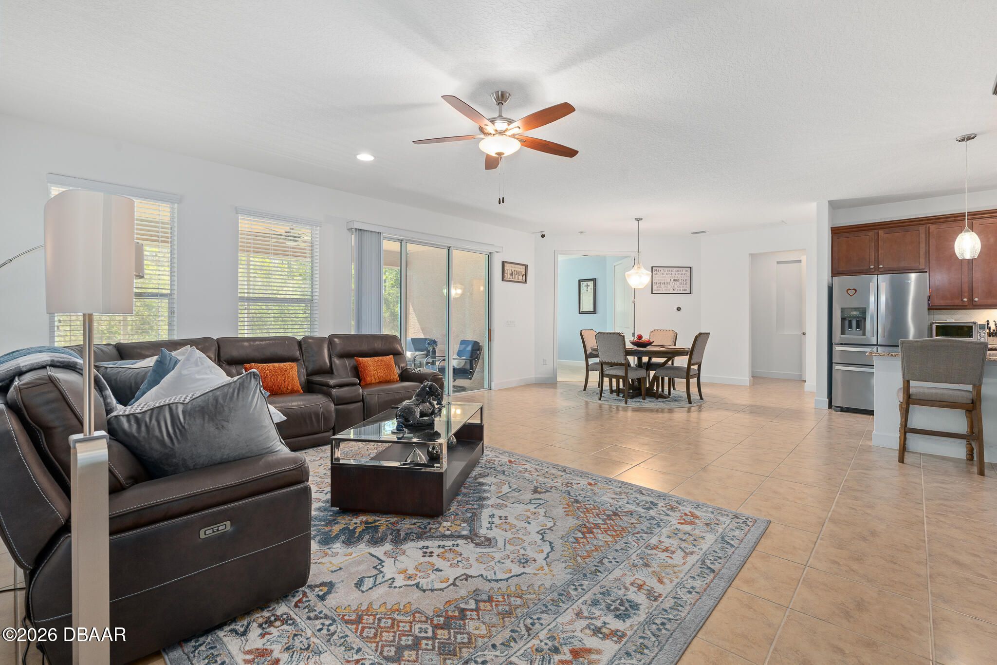 Welcome to luxury and privacy in the beautiful gated golf community of Plantation Bay! This stunning ICI-built Belaire model offers 4 bedrooms, 2.5 baths, and a thoughtfully designed split floor plan perfect for both everyday living and entertaining. From the moment you arrive, the covered entry and elegant foyer create a warm and inviting first impression. Inside, you'll find tile flooring throughout the main living areas with comfortable carpeting in the bedrooms. A separate dining room provides the perfect space for hosting dinner parties or special gatherings. The heart of the home features an open-concept great room and gourmet kitchen, ideal for entertaining or spending quality time with family. The kitchen boasts 42'' upper cabinets, a tiled backsplash, center island, and abundant workspace, making it both beautiful and functional. Two guest bedrooms and a full bath are positioned near the front of the home, providing comfort and privacy for visitors. The private primary suite offers a peaceful retreat with a spacious bedroom, luxurious ensuite bath, and large walk-in closet. Step outside to your screened lanai overlooking tranquil preserve views, where you can relax and enjoy the natural beauty and privacy that Florida living is known for. Additional highlights include a spacious garage with extra storage area room for a golf cart. Ideally located near the south gate and just moments from Prestwick Park, this home is situated in the highly desirable golf-cart-friendly community of Plantation Bay, where lifestyle truly shines. Optional country club membership offers 45 holes of private golf, a brand-new $30 million clubhouse, tennis and pickleball courts, resort-style pools, fitness center, spa, and more. Bonus: Buyer receives a discounted country club initiation fee - ask for details! Don't miss the opportunity to own this beautiful home and experience the Plantation Bay lifestyle.