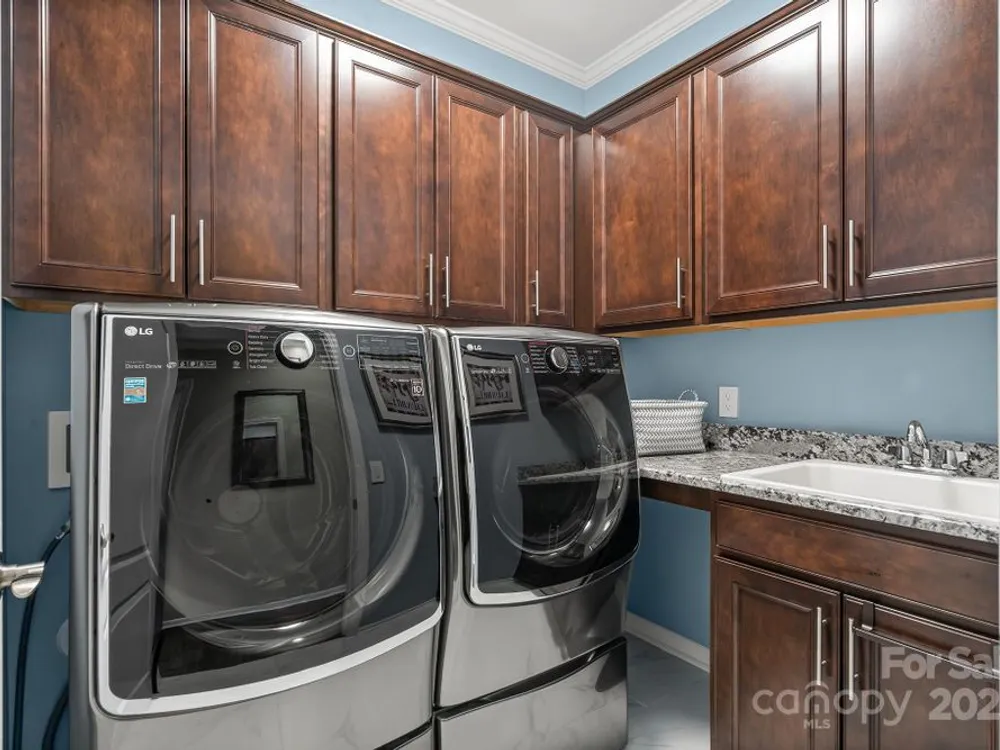 - Dishwasher, Disposal, Double Oven, Exhaust Fan, Exhaust Hood, Gas Cooktop, Microwave, Refrigerator, Tankless Water Heater, Washer/Dryer