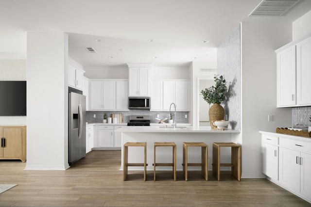 Discover your personal oasis at Del Webb Desert Retreat. This premier 55+ community is your gateway to your dream lifestyle. Our clubhouse features a fitness center, pickleball, bocce, tennis courts fitness center, walking trails and more.-Kitchen aid stainless steel appliances-upgraded White Quartz countertops-8' interior doors-10' ceilings!-Full Height Backsplash at Kitchen!-upgraded Laminate flooring and more!
