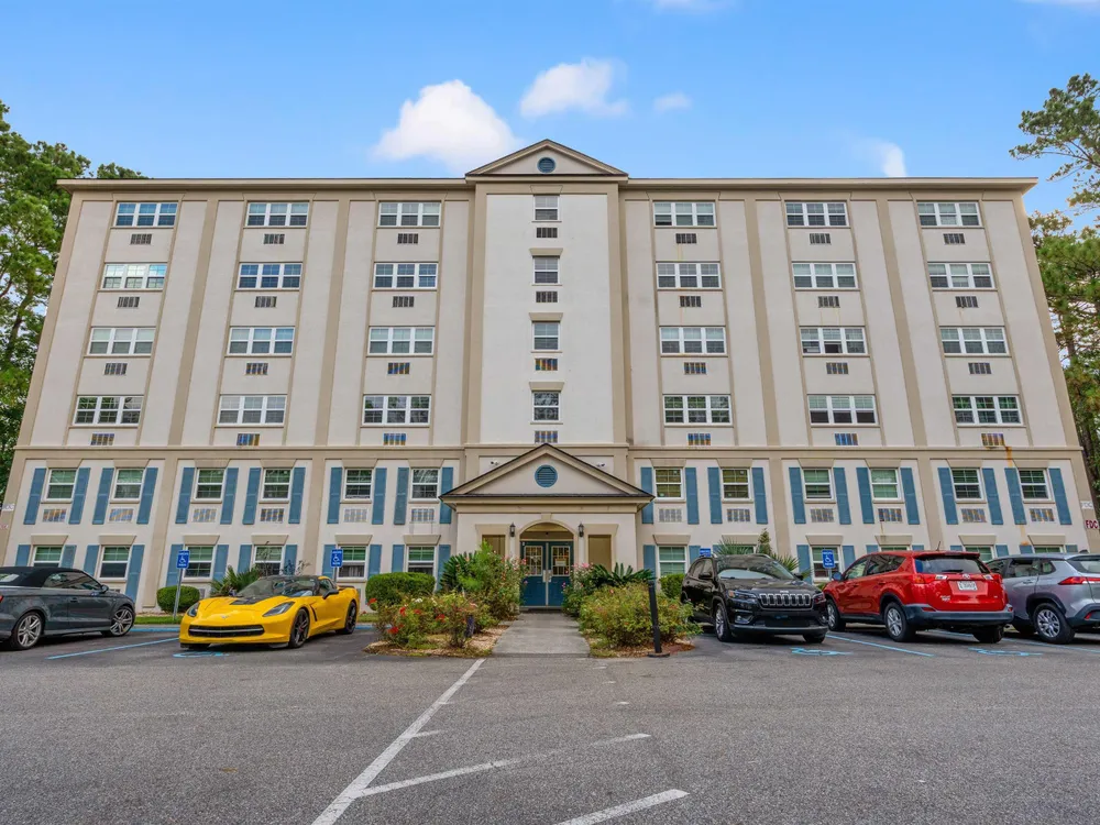 6.5 miles to Surfside Pier and gated community efficiency for under 75,000...seems too good to be true but this unit is just that! Efficiency unit in the Savannah building at Myrtle Beach Golf and Yacht that is gated with many amenities; pool, shuffleboard, pickleball, tennis, and small clubhouse area. The best part is the amenity center is DIRECTLY across from the building! Freshly painted and has LVP flooring in main area. This efficiency has potential to be an investment property, for short or long term rentals, or a primary residence for someone just starting out, in between moves, or maybe wanting to downsize. HOA includes building insurance and water/sewer. PTAC unit for air and heat replaced in Jan 2025.