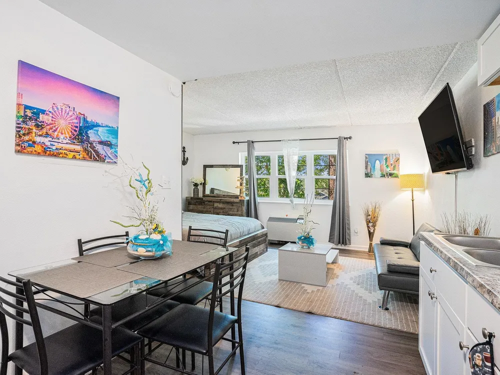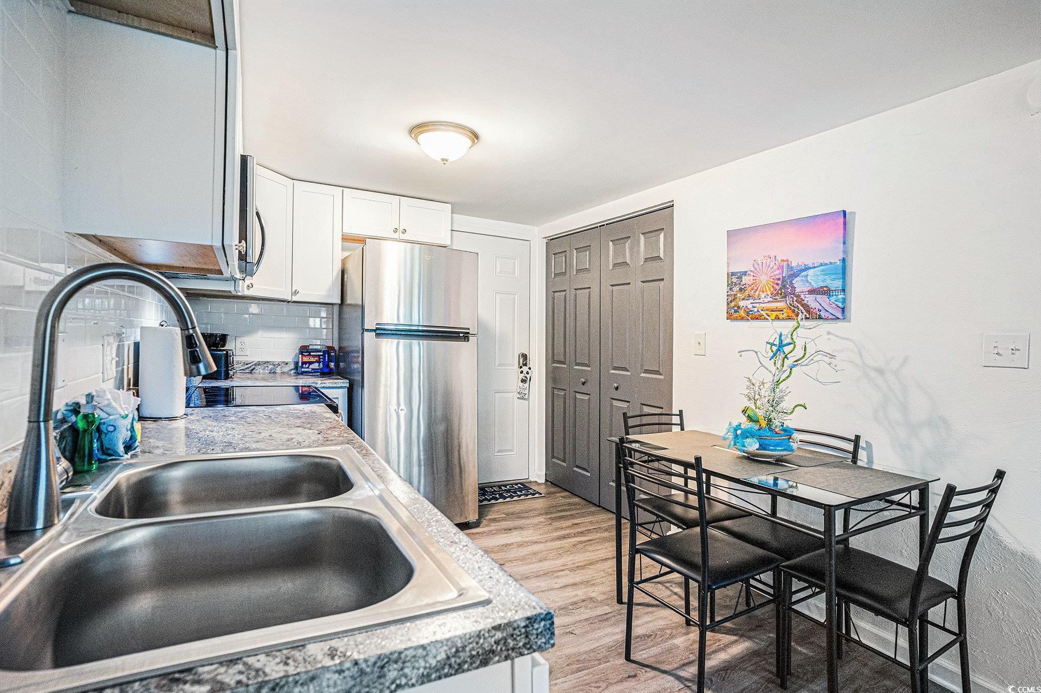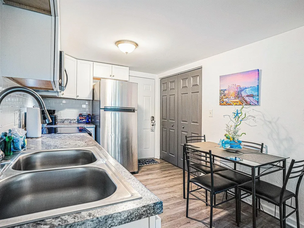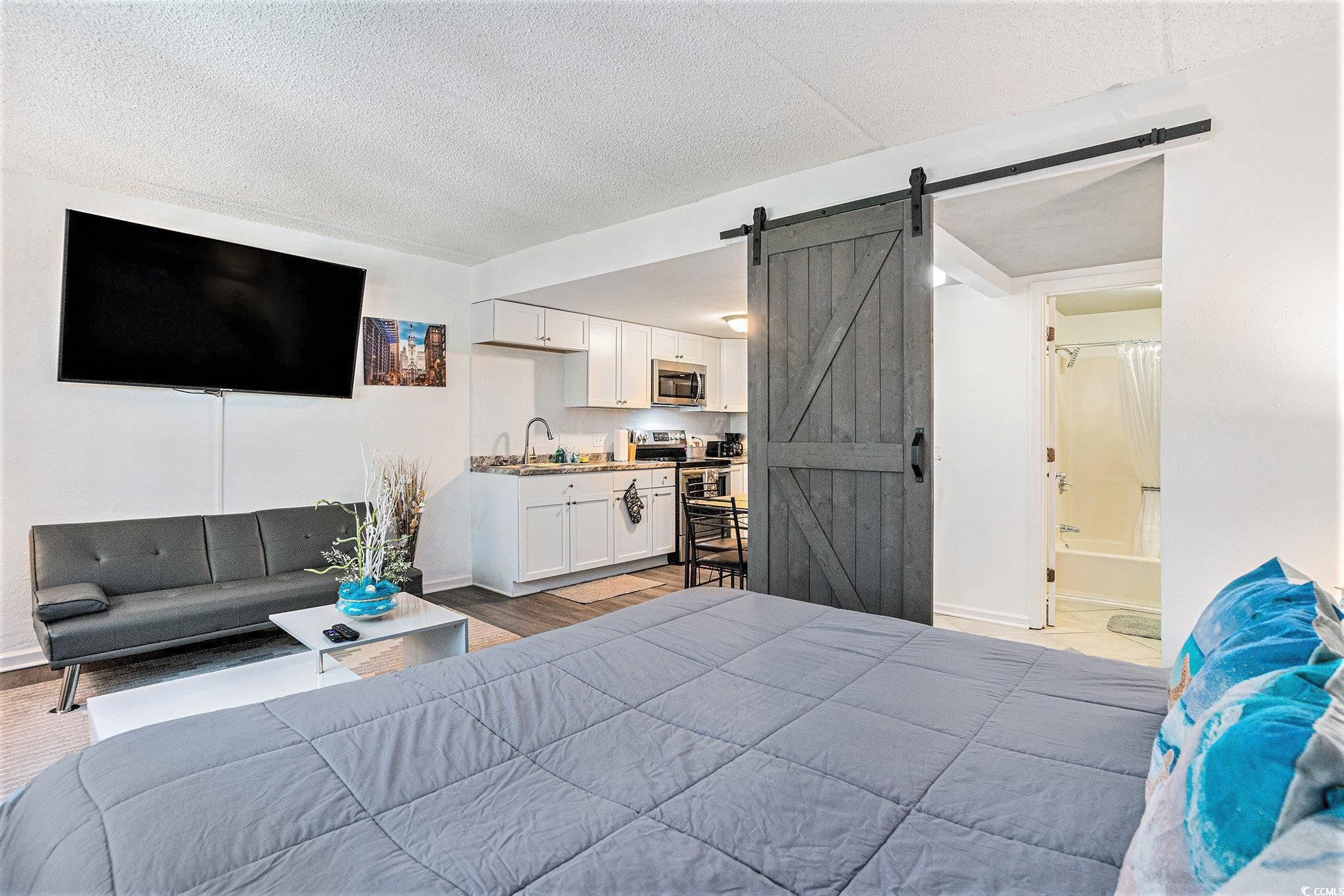 Welcome to your perfect retreat in the charming efficiency unit nestled within the gated community of Myrtle Beach Golf and Yacht Club! This beautifully appointed condo boasts a fully equipped kitchen featuring granite countertops, stainless steel appliances, upgraded cabinets, and a stylish tile backsplash. Enjoy the practicality of an additional kitchen closet for all your storage needs. The kitchen seamlessly flows into the living/dining area, enhanced by attractive LVP flooring that maximizes comfort and functionality. Your inviting living room presents stunning views of lush trees and a tranquil pond, providing a serene backdrop for relaxation. The thoughtfully designed bathroom includes ceramic tile floors, a convenient shower-tub combo, and an additional closet for your convenience. This condo comes fully furnished, offering a turnkey experience for new owners. As a resident of Myrtle Beach Golf and Yacht Club, you'll have access to fantastic amenities, including an outdoor pool, tennis and basketball courts, shuffleboard, a playground, and storage options for RVs and boats. Ideally located, this community is just a stone's throw from some of the best dining, shopping, golf, and entertainment Myrtle Beach has to offer. Whether you're seeking a forever home, a vacation getaway, or an investment opportunity, this condo is a must-see. Don't miss your chance, schedule your showing today!