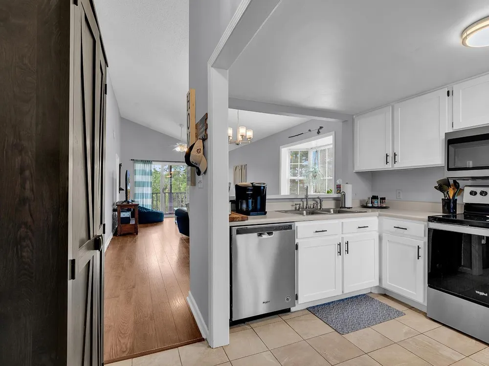 BACK ON THE MARKET, THROUGH NO FAULT OF THE SELLER!!! Don't miss this lovely 2 bedroom, 2 bathroom end unit condo in Myrtle Beach Golf and Yacht Club. Ideally situated on the second floor, overlooking Osprey Lake, and just across from the community's amenities, you'll appreciate the open floor plan and natural light throughout the home. Entering the home, you'll find a spacious kitchen with stainless steel appliances and plenty of counter space. Vaulted ceilings throughout the living and dining area lead to the screened porch, perfect for relaxing in the afternoons. The primary suite offers a spacious closet and ensuite bathroom with upgraded tile shower. There is a second bedroom and full bathroom as well, with washer and dryer. You'll love being across from the community's pool, hot tub, tennis court, picnic and playground and community center. Offering 24/7 gated security, close proximity to Enterprise Landing, Highway 31 and 707, this community is ideally situated and part of the St. James School district. Enjoy all the Sound end of the beach has to offer, with the area's most loved dining, shopping and beaches. Take the 3D tour and schedule your appointment today!