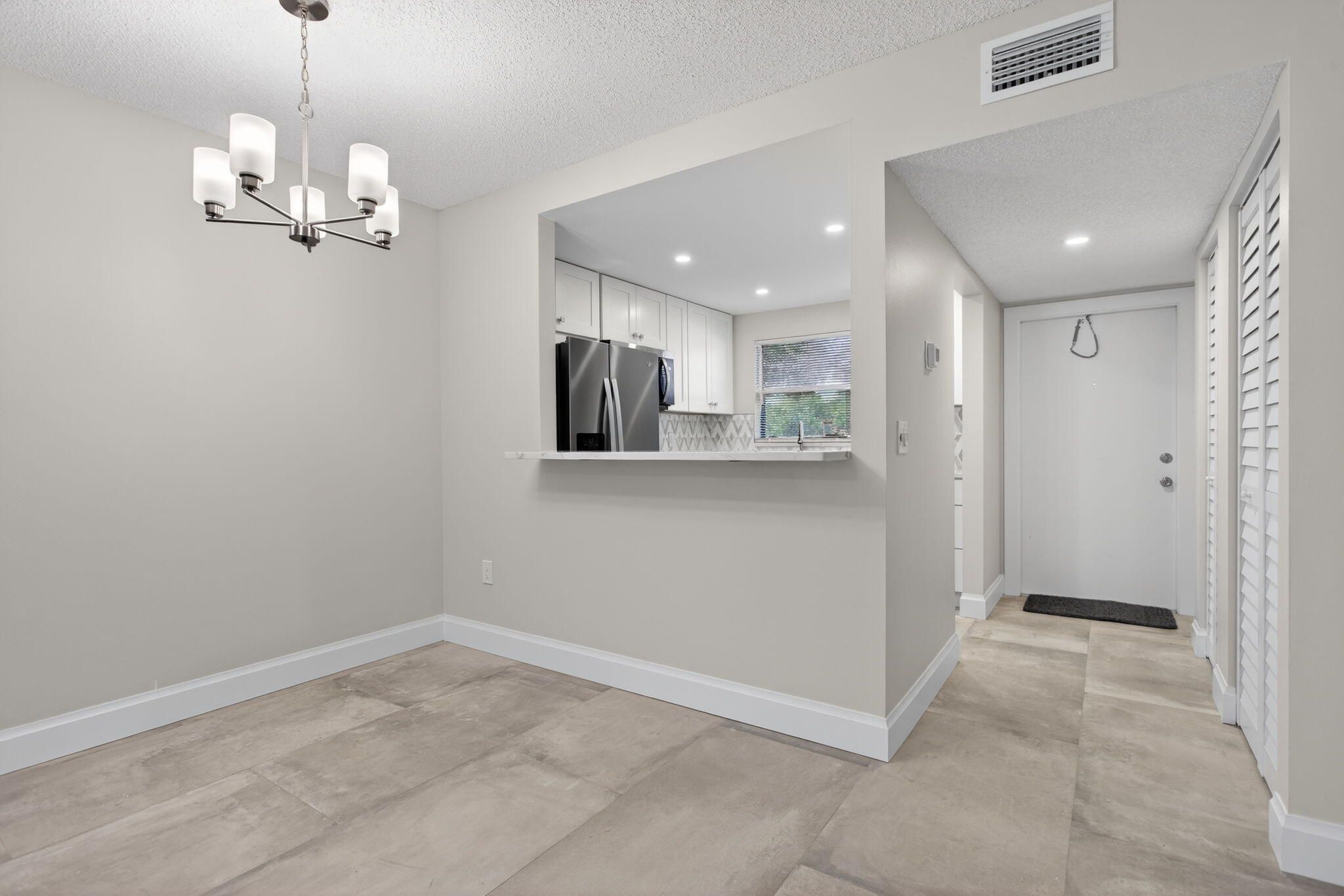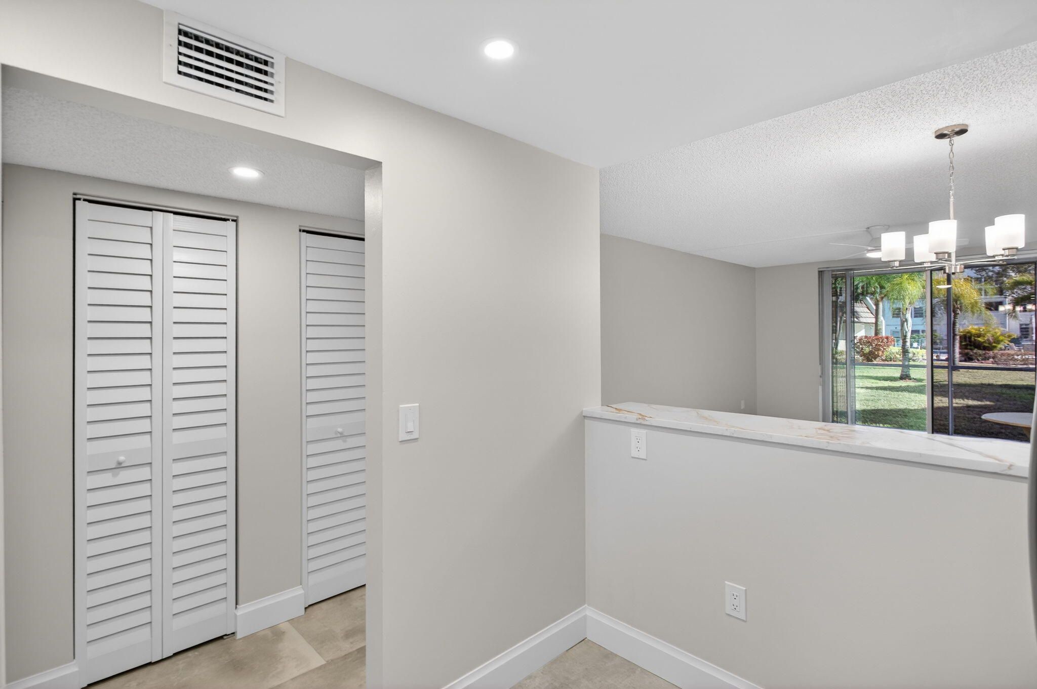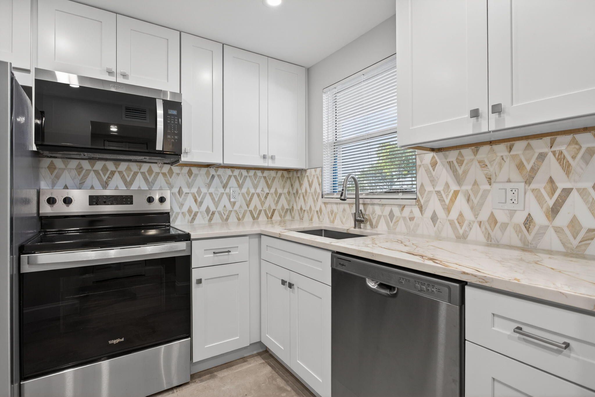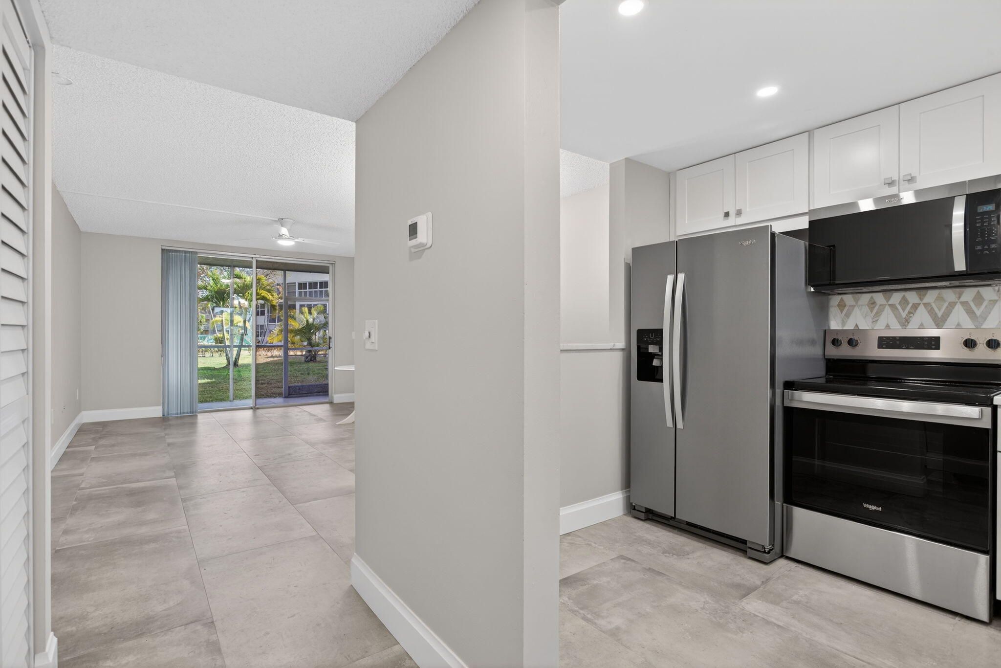 Renovated ground-floor garden residence with pool views and a private screened-in patio. Move-in-ready home features a completely updated interior, including new kitchen cabinetry with elegant quartz countertops, brand-new appliances, new ceramic tile flooring throughout, modern lighting, and stylish ceiling fans. The spacious primary suite offers a walk-in closet and a fully upgraded bath with double vanities and a walk-in shower. Additional recent improvements include a new HVAC system and water heater, providing comfort and peace of mind. The condo fee covers cable, exterior insurance, and water for added convenience. Community amenities include a pool, sauna, clubhouse, cabana, picnic area, and on-site laundry facility.