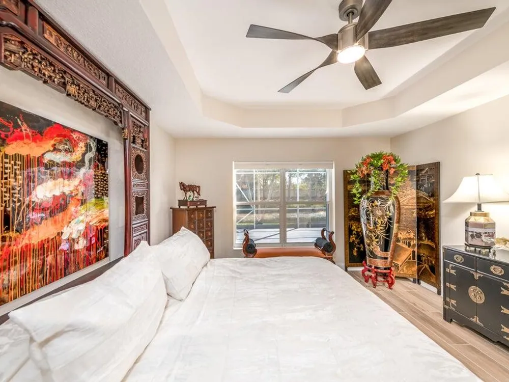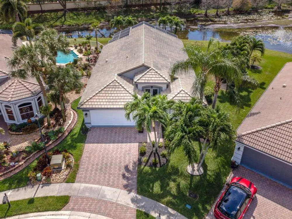 Charming lakefront three-bedroom two bath house in beautiful Bellaggio. The house has been tastefully remodeled with upgraded appliances, custom blinds, and 12-foot ceilings.3 ft. wide doors throughout the house to make it handicap and wheelchair accessible.Enjoy the safety of the custom double impact glass doors in the front and back. along with the easy built in hurricane shutters. Use the third bedroom for a guest room, office, or den with its built-in safe closet, and desk.Entertain on your beautiful screened in lanai overlooking the lake.Bellagio has first class amenities, offering indoor, outdoor pools, sauna, cafe, shows and more. Make new friends at all the classes they offer. Enjoy this country club lifestyle at your new home
