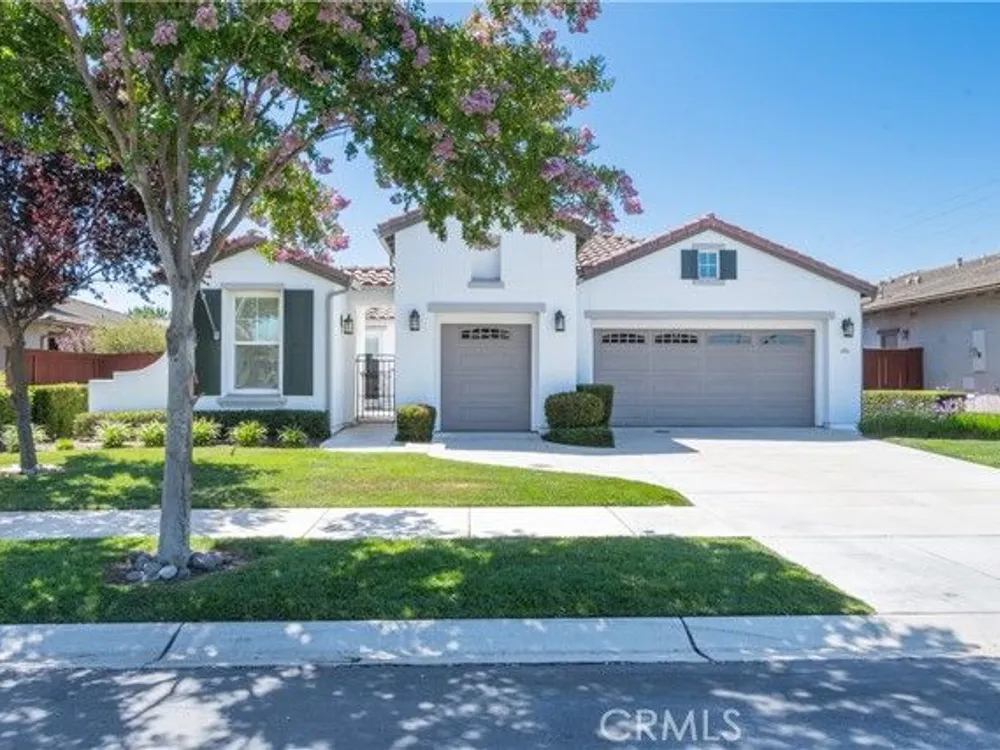 A Beautifully upgraded and maintained residence is located in this prized 55+ community near the center of Paso Robles. This Traditions home of 2330 square feet includes a separate Casita for guests or hobbies. The home of 2 bedrooms, 2 baths plus office has custom upgrades including beautiful, easy maintenance stone flooring, upgraded Alder cabinetry in the kitchen and office, and granite counters. The travertine floored great room is open to dining and kitchen with builtin bookcases and TV nook adjacent to a gas fireplace for cooler days. The spacious primary bedroom with large shutters opens to a bath accented with a jetted tub, roll in shower with stone accents and separate double vanities. All the work has been accomplished outside as you enjoy paved walkways and 2 patio areas for entertaining. Beyond all this, the owned solar system keeps energy bills from being a worry. This lovely community includes gated entry, pool, spa, clubhouse, BBQ area, walking trails and all front yard landscaping managed by the association. What are you waiting for? Come home to Traditions!