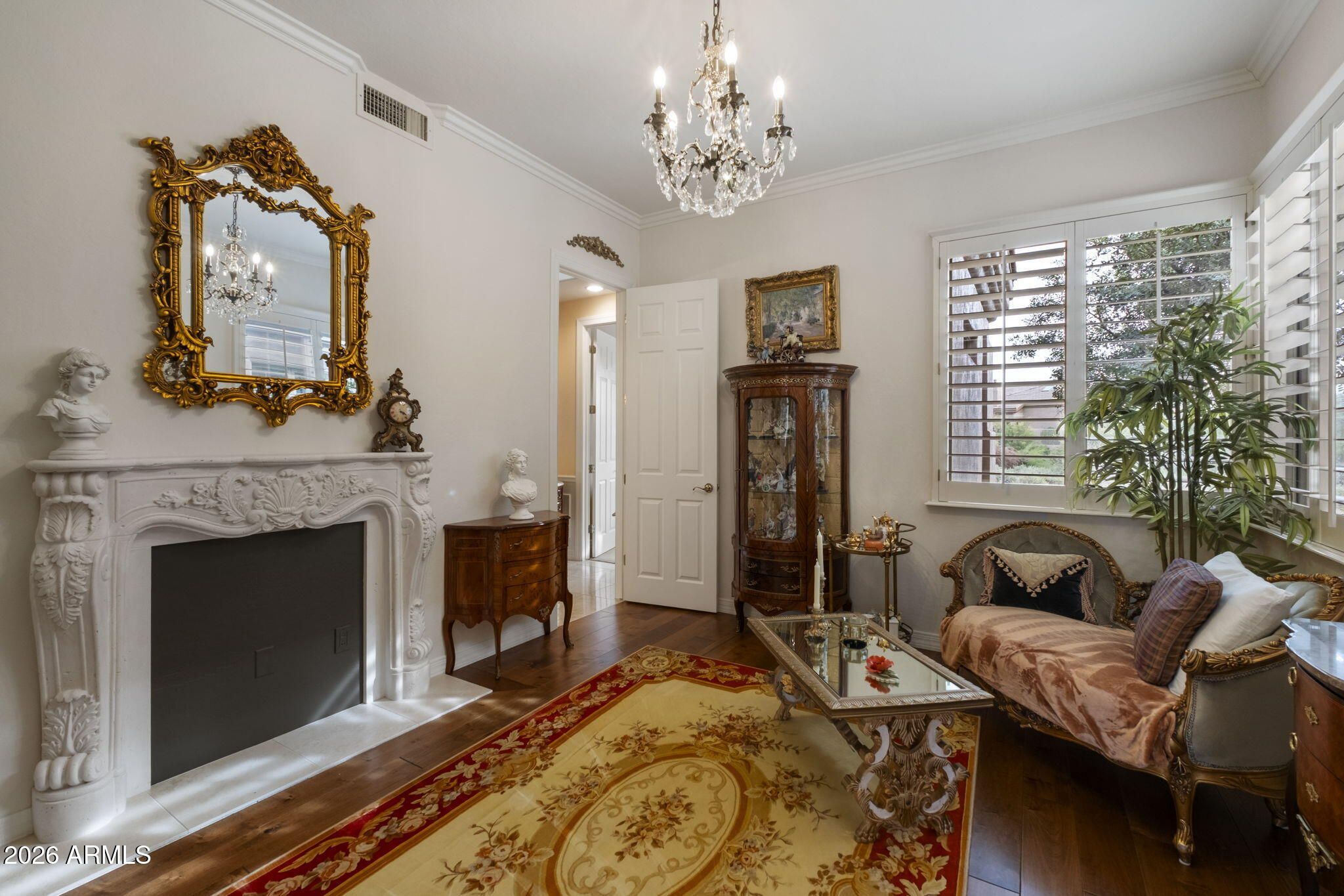 Set within the guard-gated golf community of Terravita, this beautiful Aura model offers 3,434 square feet of refined single-level living designed for both everyday comfort and elegant entertaining. A desirable split floor plan provides privacy and flow, complemented by travertine flooring, plantation shutters, and timeless architectural character throughout. The home features both a formal living space and an expansive family/great room with fireplace, ideal for gatherings, while a dedicated office/den with its own fireplace creates a warm and inviting work-from-home retreat. The spacious kitchen was tastefully updated in a classic, traditional style, showcasing double ovens, a 5-burner cooktop, generous cabinetry, and abundant counter space—perfect for hosting and daily living. Step outside to a private backyard oasis with a sparkling swimming pool and built-in BBQ, ideal for enjoying Scottsdale's year-round outdoor lifestyle. Additional highlights include a 3-car garage with epoxy flooring, well-proportioned living spaces, and thoughtful upgrades that enhance both form and function. This exceptional residence offers the rare combination of size, single-level design, golf-community living, and timeless appeal, all within one of North Scottsdale's most sought-after guard-gated communities.