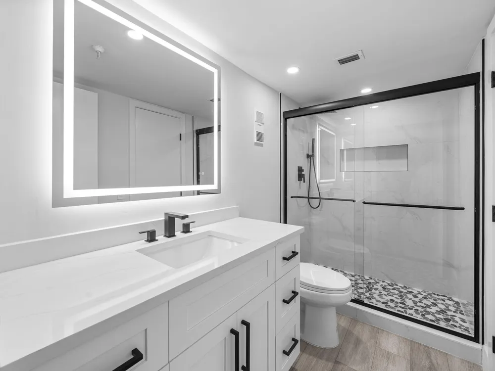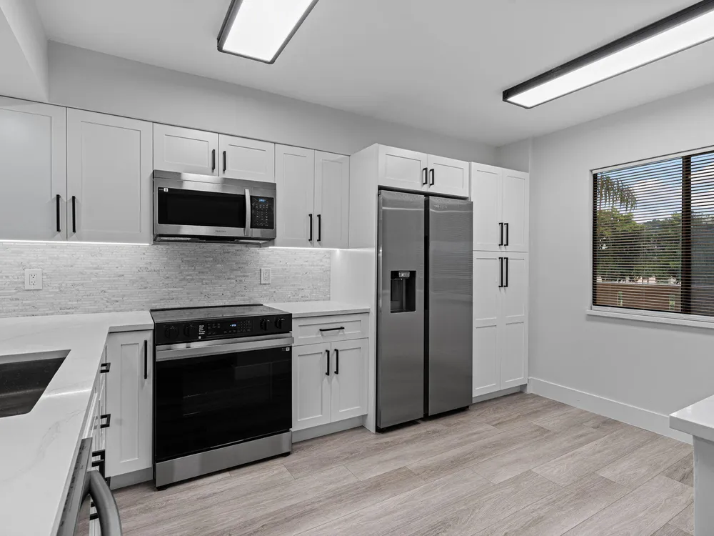 Step into luxury in this fully remodeled 2-bed, 2-bath corner condo unit in the highly sought-after 55+ community of Huntington Lakes. This 1230 Sq Ft unit is the best value money can buy in all of Huntington Lakes. Enjoy breathtaking lake views from your private balcony in a safe, vibrant, and amenity-rich neighborhood. This unit features 100% waterproof simulated wood throughout, brand-new stainless-steel appliances, quartz countertops, custom lighting with hi-hats throughout, and modern LED mirrors in both bathrooms. Popcorn ceilings were professionally removed throughout. Huntington Lakes offers a newly renovated clubhouse, 24/7 manned gate, pickleball and tennis courts, a fitness center, and endless social activities. Resort-style living in Delray Beach awaits!