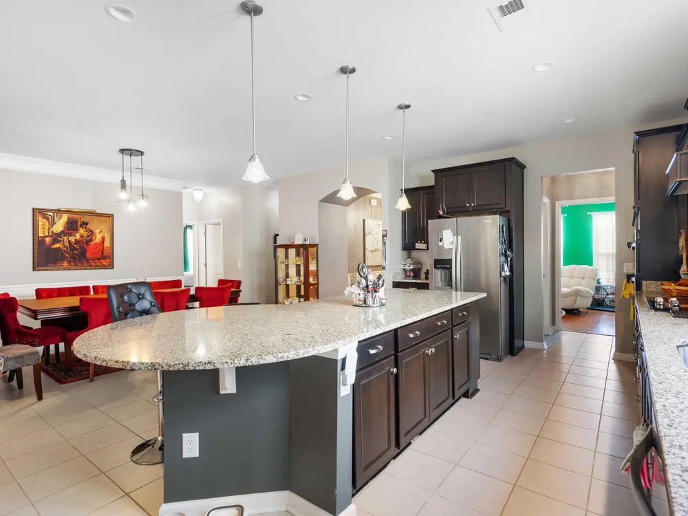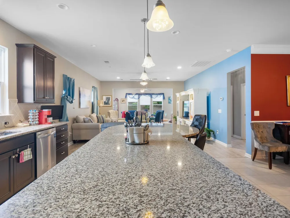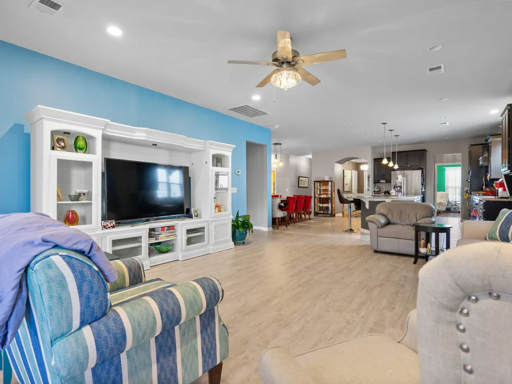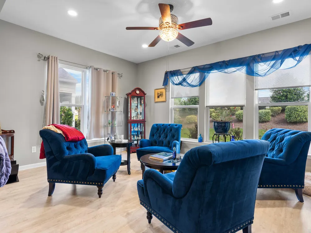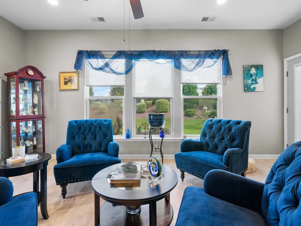 This lovely home offers the best of everything! From the open floorplan to the incredible amenities in Del Webb, this is the perfect place to call ''home!''Beautiful kitchen with high-end finishes like 42'' custom cabinets, tile backsplash, stainless steel appliances, granite countertops, rollout shelves, recessed lighting, huge center island w/ seating for 5, tile floors, storage pantry plus a butlers pantry.Expansive living areas! The family room and dining room are open and offer upgraded lighting, LVP flooring and can accommodate large furniture. Your favorite place may be the sunroom! It's such a relaxing space for coffee and a good book or a wonderful area for entertaining guests.The master suite has large windows, tray ceilings, walk-in closet and luxury bath with customjetted tub (and tile surround), dual vanity and tile floors. Well sized secondary bedrooms have ample closet space, ceiling fans and share a full bath. The versatile office or flex space has beautiful picture-frame molding and wood floors. It opens to the butlers pantry and foyer through glass doors and would make an ideal study, library or hobby room. The oversized garage has a stairway leading to an unfinished room above and, if finished, would add an additional (approx) 80sqft. The lifestyle here is just incredible. There's so much to do -- or not do! It all depends on what YOU desire. Del Webb offers resort-style, luxury amenities including an amazing clubhouse, state-of-the-art fitness center, indoor and outdoor pools, sports courts for tennis, pickleball & bocci ball, plus walking trails, a dog park and community ponds throughout. Please inquire about all of the calendar events and functions offered everyday to residents. There is truly something for everyone!