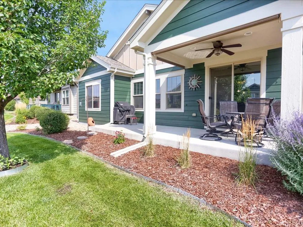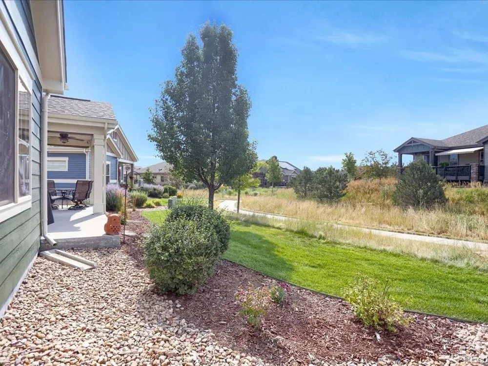Are You Shoveling snow this Winter??? Not if you buy this home now. You will have the driveway and sidewalk shoveled to your door when snow exceeds 2 inches. No mowing your lawn next summer. Also maintenance of structure, the grounds and trash removal is all included. Come see.... this beautifully maintained Boulder Creek patio home at Brennan by the Lake, ideally located on the west side of Erie. Offering true main-floor living, this home backs to trails and a greenbelt, no steps entering or within the house and 3-foot-wide doors for easy accessibility making it comfortable for nearly everyone. The open-concept design features a spacious great room that flows seamlessly into the bright kitchen and dining area. The kitchen includes a large island, granite countertops, gas range, and an oversized walk-in pantry. The primary suite offers a private retreat with dual sinks, a walk-in shower, and an expansive walk-in closet. Additional spaces include a second bedroom, full bathroom, a dedicated office, and utility room for added storage. The oversized two-car garage with a tandem third space provides excellent storage options. Outside, enjoy a covered patio plus an open area perfect for grilling. Notable updates include professionally tinted southwest-facing windows for added privacy, new garage door opener, reinforced bathroom walls for grab bars, a new roof and new exterior paint. Step out your front door to explore miles of trails, including the loop around nearby Thomas Reservoir. Just minutes from downtown Erie and local shopping, this home offers easy, low-maintenance, lock-and-leave living at its best!