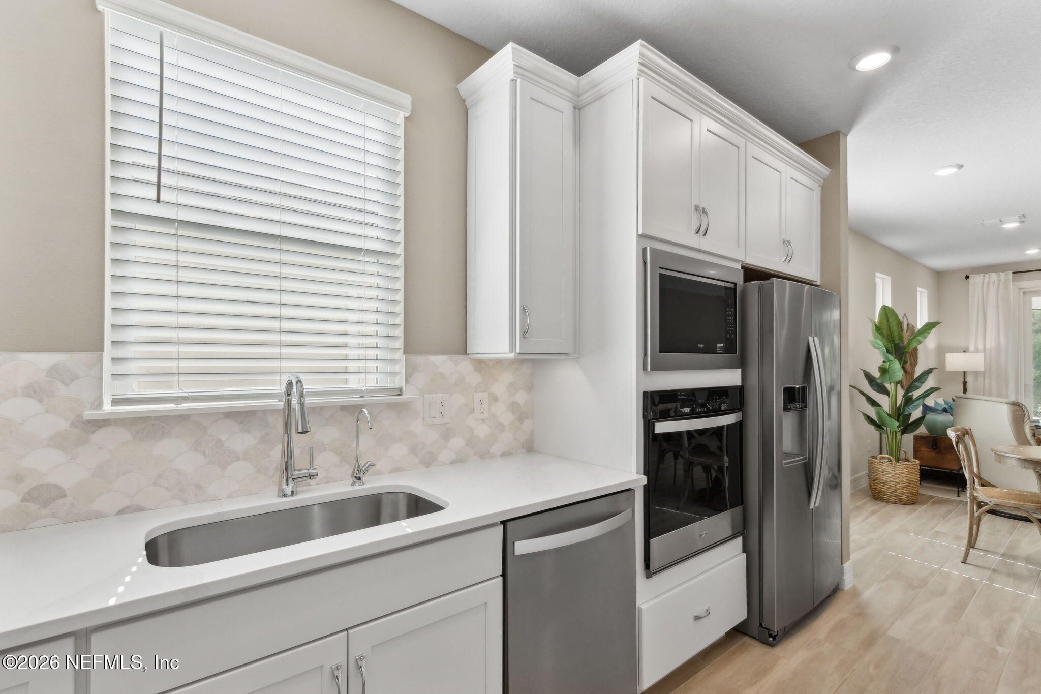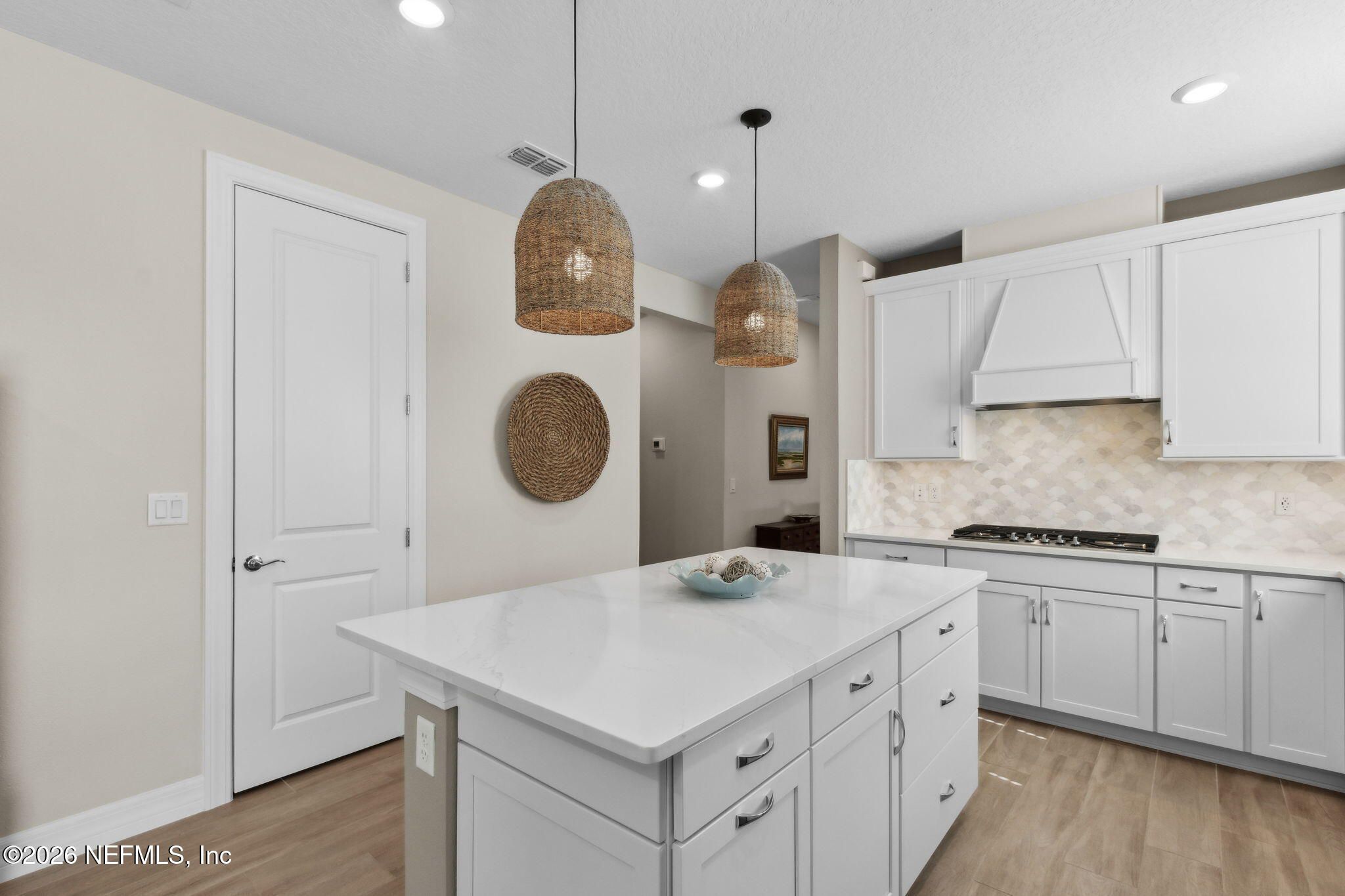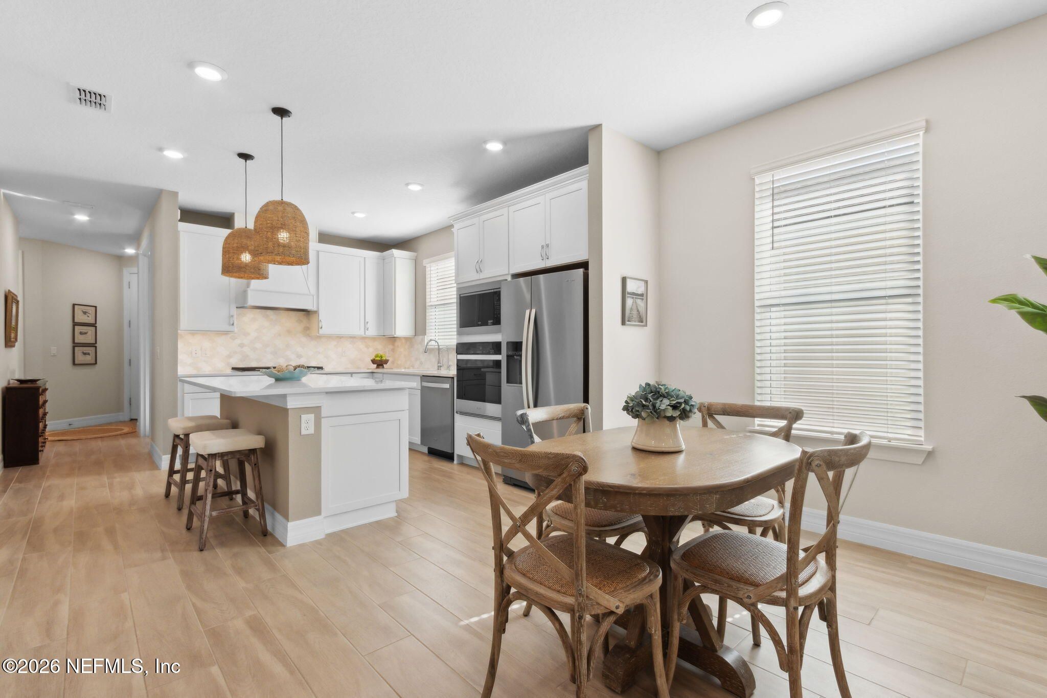 Newly built single-story home that has been beautifully enhanced w/ Premium Upgrades & sits on a private, wooded Preserve lot. Fall in love w/ Wildlight's newest & hottest 55+ active adult community! Featuring 2 spacious bedrooms, 2 fully upgraded bathrooms & a versatile bonus room that is ideal for a home office. The open-floor design flows effortlessly into a light & bright kitchen complete with luxury finishes such as quartz countertops, stainless steel appliances, gas cooktop, custom backsplash, extended center island w/ upgraded pendant lighting and an abundance of soft-close cabinets/drawers. The master suite offers that same great Preserve view, a custom-designed walk-in closet & a luxurious bath featuring quartz countertops, his/her vanities, & an extended walk-in shower. Gorgeous tile flooring throughout the home, adding to its low-maintenance quality & modern aesthetic. Whether you are relaxing in your screen lanai or barbecuing on the extended paver patio, you are certain to enjoy the privacy of your fenced backyard that overlooks that Preserve - nature at it's finest! Additional upgrades include a garage w/ Shark epoxy flooring, water softener, filtration system, irrigation & upgraded ceiling fans. This home blends style, comfort & functionality in a prime location w/ easy access to the clubhouse. Del Webb Wildlight is a highly sought-after gate guarded community that offers a resort lifestyle to their residents with an abundance of social events & a list of amenities a mile long - glistening pool w/ spa, 16k sqft clubhouse, restaurant, tennis, pickleball, fire pit area, nature trails, garden & more! Minutes to great local restaurants, shopping, state parks & the beautiful beaches of Fernandina/Amelia Island!
