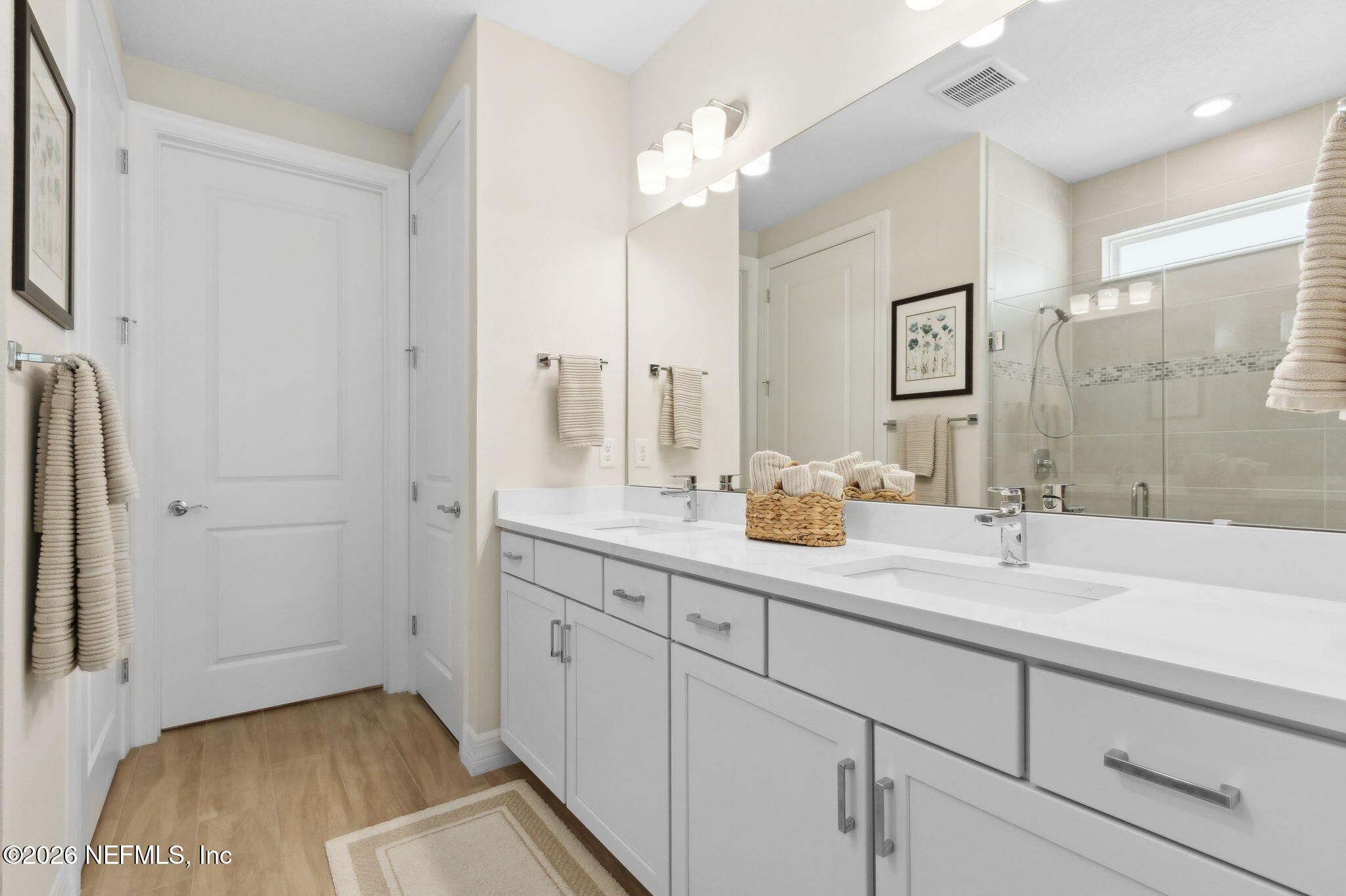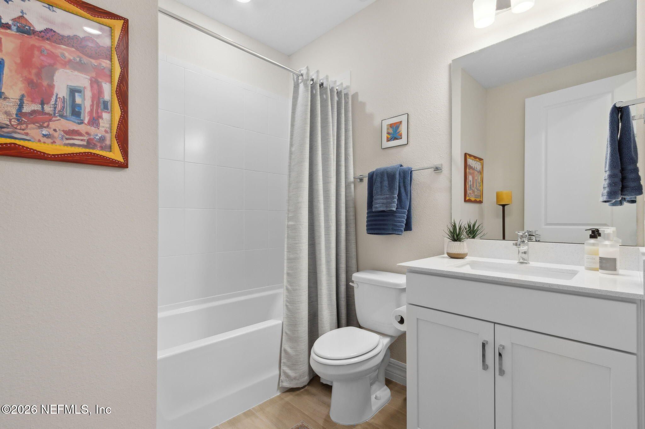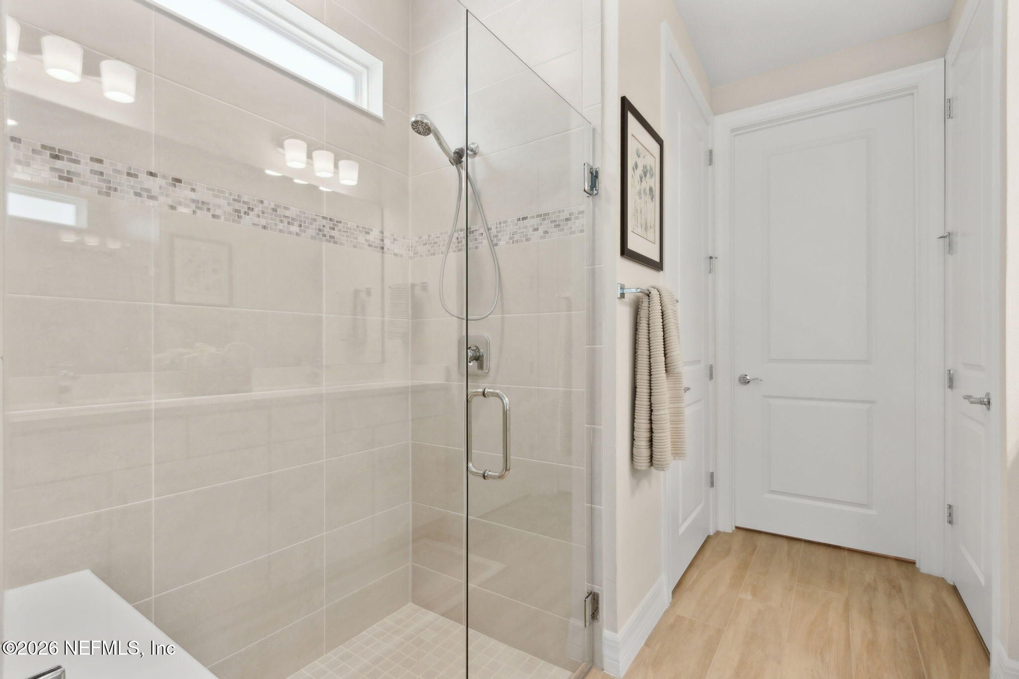 Newly built single-story home that has been beautifully enhanced w/ Premium Upgrades & sits on a private, wooded Preserve lot. Fall in love w/ Wildlight's newest & hottest 55+ active adult community! Featuring 2 spacious bedrooms, 2 fully upgraded bathrooms & a versatile bonus room that is ideal for a home office. The open-floor design flows effortlessly into a light & bright kitchen complete with luxury finishes such as quartz countertops, stainless steel appliances, gas cooktop, custom backsplash, extended center island w/ upgraded pendant lighting and an abundance of soft-close cabinets/drawers. The master suite offers that same great Preserve view, a custom-designed walk-in closet & a luxurious bath featuring quartz countertops, his/her vanities, & an extended walk-in shower. Gorgeous tile flooring throughout the home, adding to its low-maintenance quality & modern aesthetic. Whether you are relaxing in your screen lanai or barbecuing on the extended paver patio, you are certain to enjoy the privacy of your fenced backyard that overlooks that Preserve - nature at it's finest! Additional upgrades include a garage w/ Shark epoxy flooring, water softener, filtration system, irrigation & upgraded ceiling fans. This home blends style, comfort & functionality in a prime location w/ easy access to the clubhouse. Del Webb Wildlight is a highly sought-after gate guarded community that offers a resort lifestyle to their residents with an abundance of social events & a list of amenities a mile long - glistening pool w/ spa, 16k sqft clubhouse, restaurant, tennis, pickleball, fire pit area, nature trails, garden & more! Minutes to great local restaurants, shopping, state parks & the beautiful beaches of Fernandina/Amelia Island!