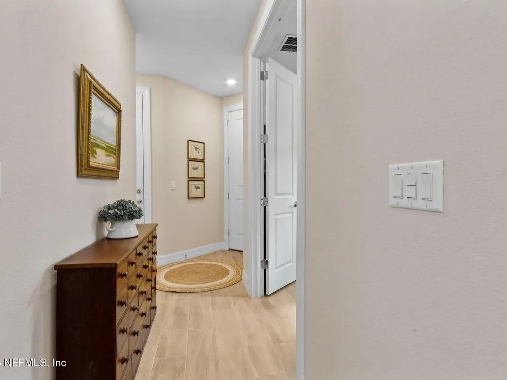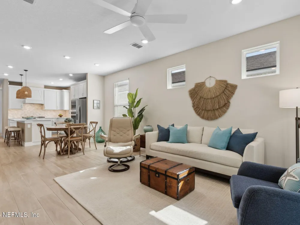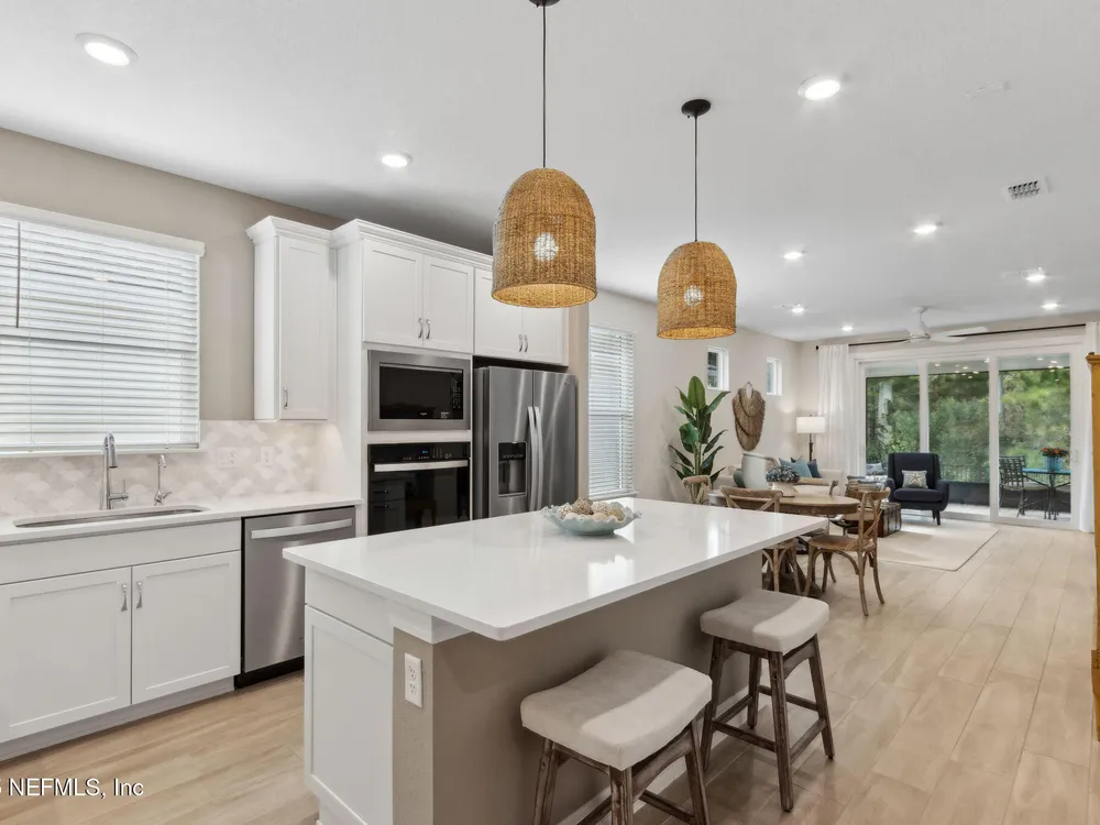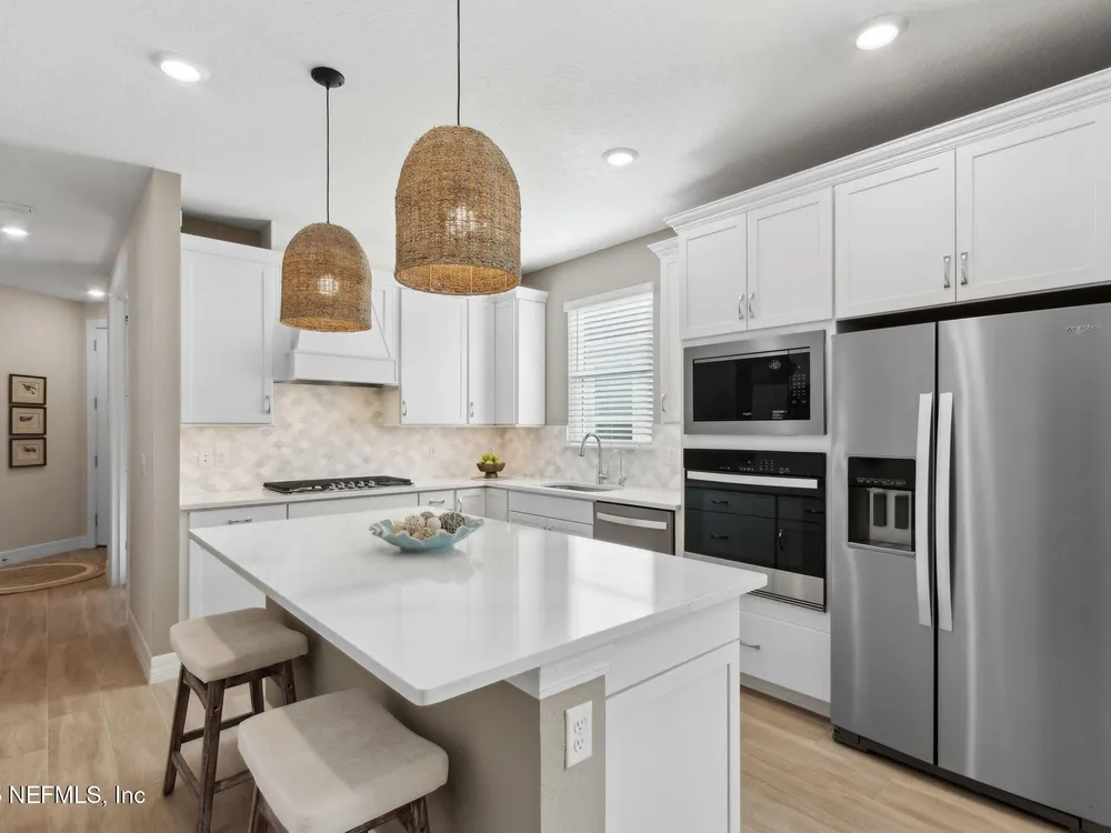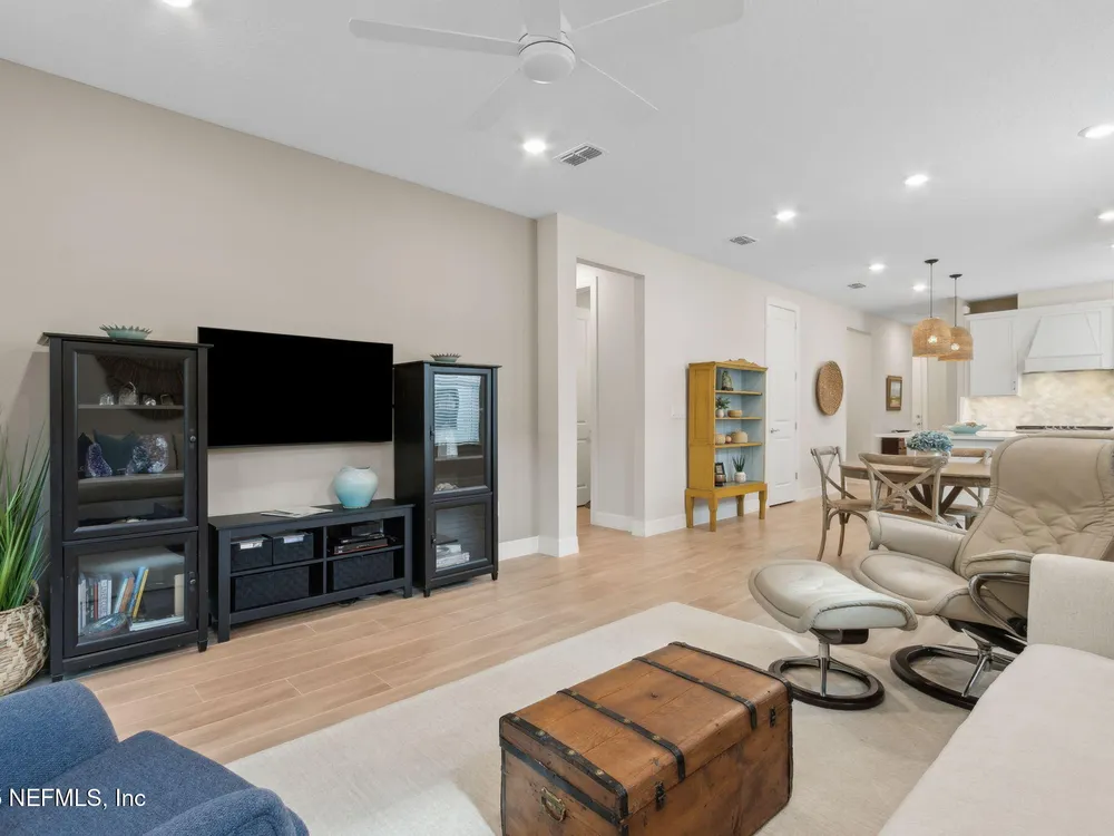 Newly built single-story home that has been beautifully enhanced with Premium Upgrades and sits on a private, wooded Preserve lot. Prepare to fall in love with Willight's newest & hottest 55+ community, Del Webb! Featuring 2 spacious bedrooms, 2 fully upgraded bathrooms, and a versatile bonus room that is ideal for a home office, this gem truly is your dream home! The open-floor design flows effortlessly into a light & bright kitchen complete with luxury finishes such as quartz countertops, stainless steel appliances, gas range, custom backsplash, extended center island w/ upgraded pendant lighting and an abundance of soft-close cabinets/drawers. The master suite offers that same great Preserve view, a custom-designed walk-in closet & a luxurious bath featuring quartz countertops, his/her vanities, & an extended walk-in shower. Gorgeous tile flooring runs throughout the home, adding to its low-maintenance quality & modern aesthetic. Whether you are relaxing in your screen lanai or barbecuing on the extended paver patio, you are certain to enjoy the privacy of your fenced backyard that overlooks that Preserve - nature at it's finest! Additional upgrades include a garage w? Shark epoxy flooring, water softener & filtration system, full irrigation system, and upgraded ceiling fans. This home blends style, comfort, and functionality in a prime location, with easy access to the clubhouse. Del Webb Wildlight is a highly sought-after community that offers a resort lifestyle to their residents with an abundance of social events & a list of amenities a mile long - glistening pool w/ spa, 16k sqft clubhouse, restaurant, tennis, pickleball, fire pit area, nature trails, garden and much more! Just minutes to great local restaurants, shopping, state parks and the beautiful beaches of Fernandina/Amelia Island!"