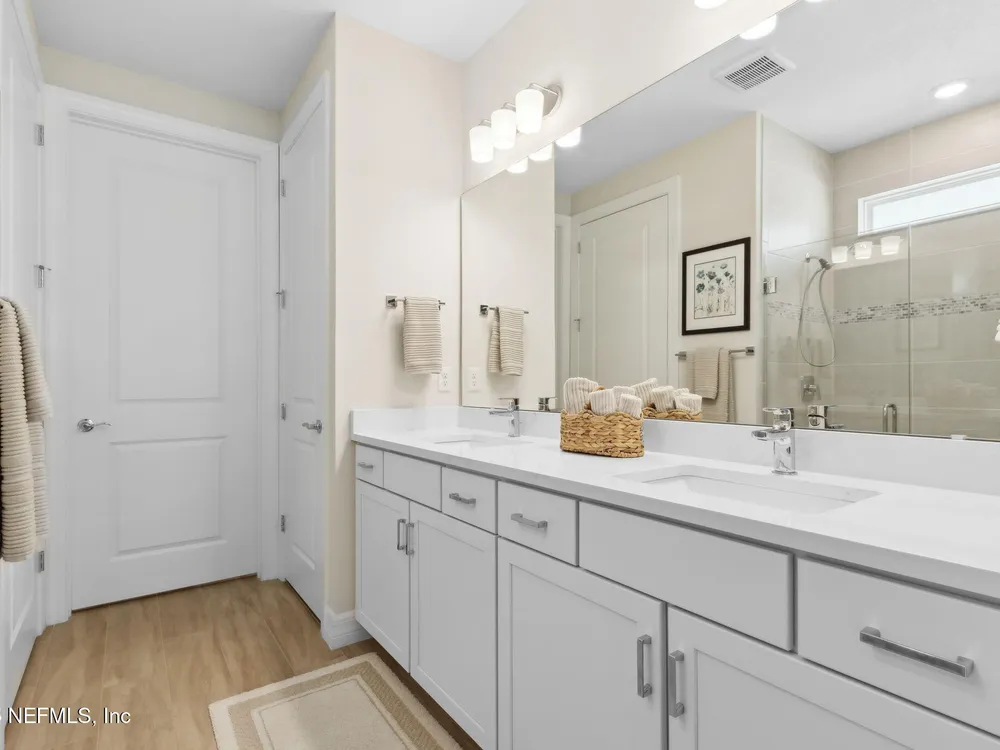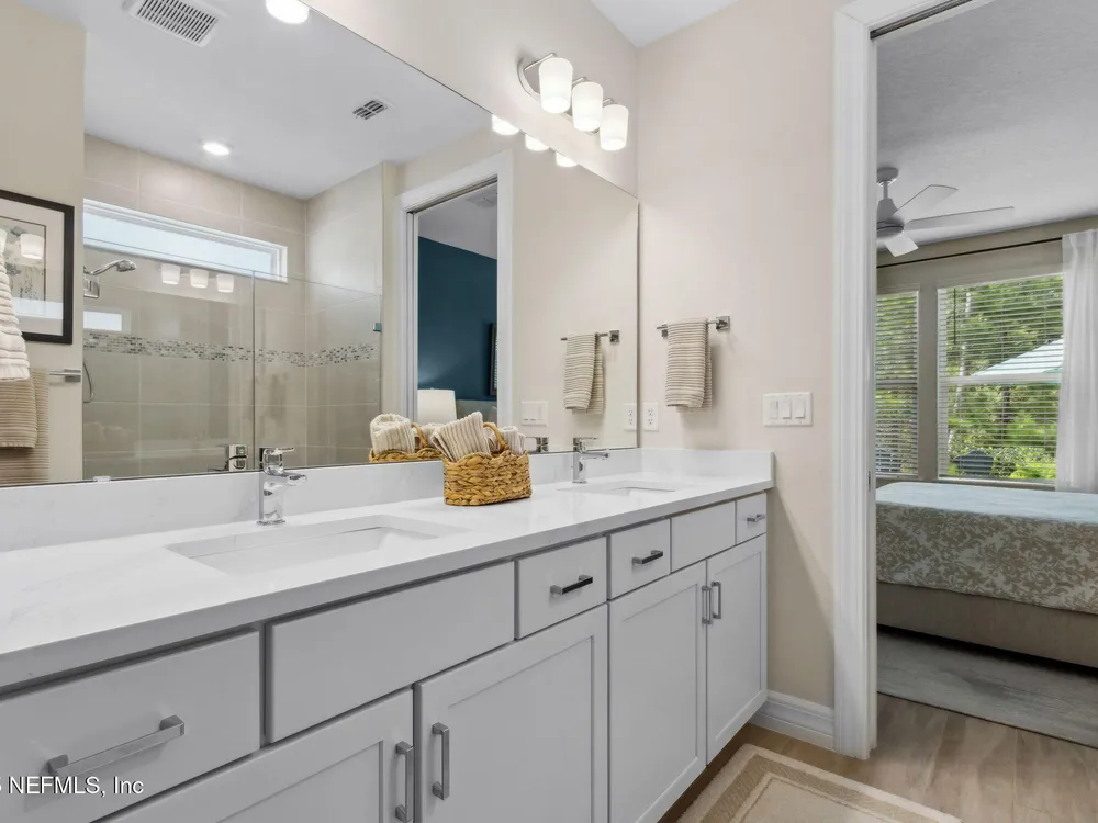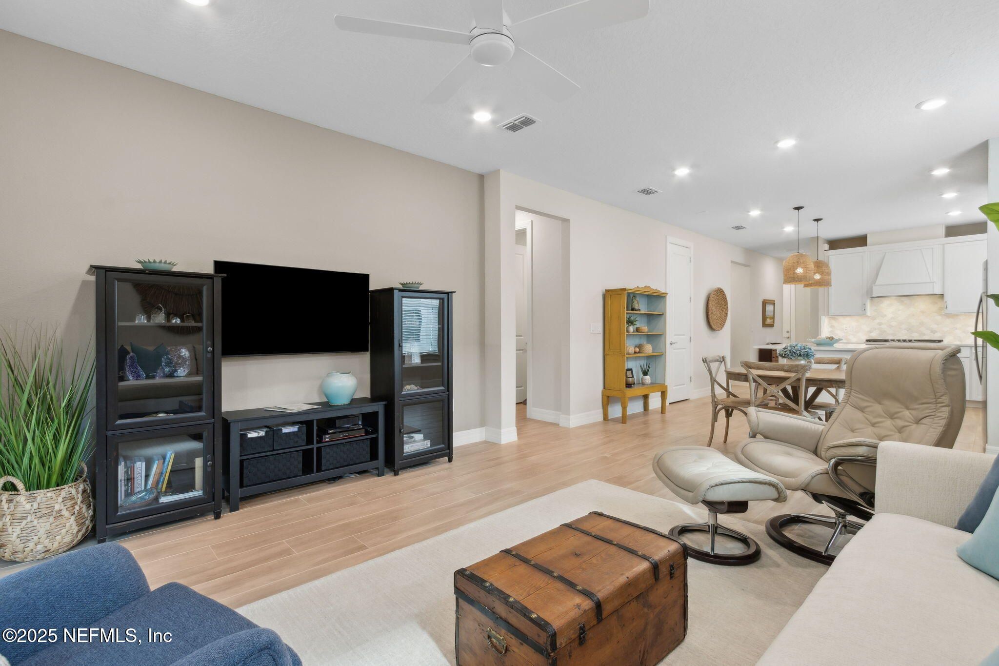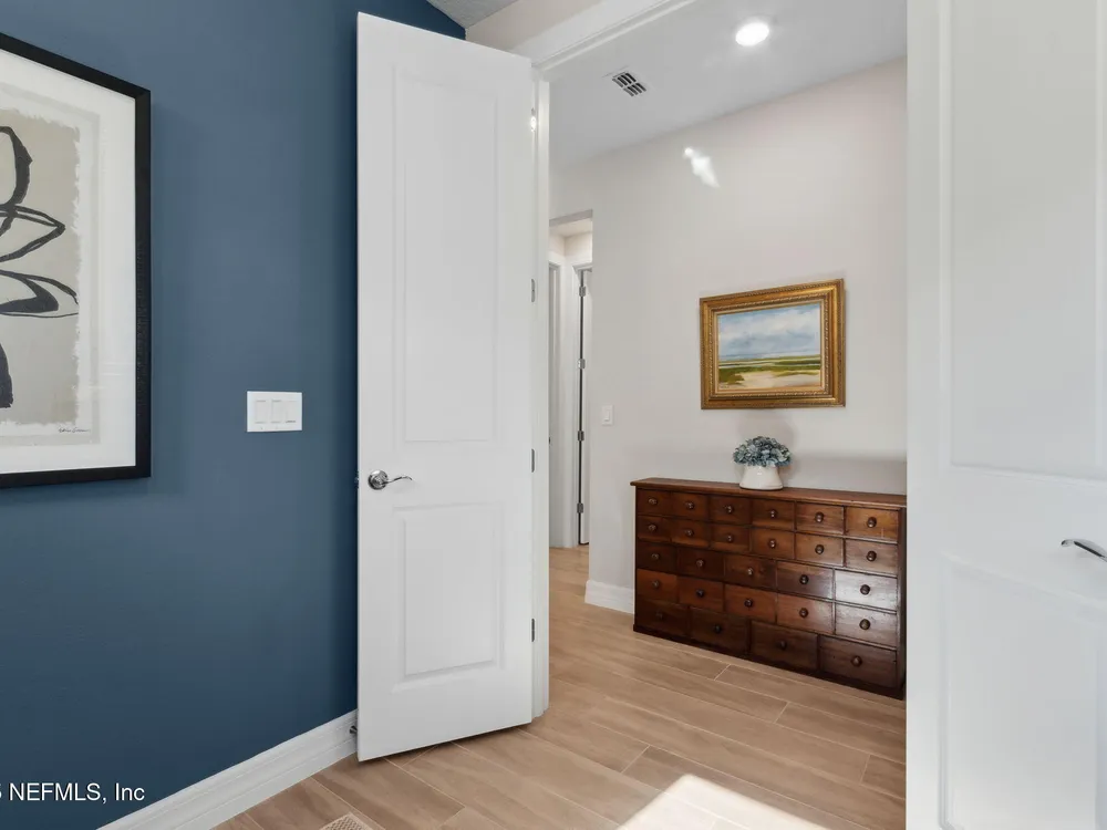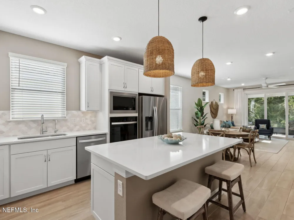 Newly built single-story home that has been beautifully enhanced with Premium Upgrades and sits on a private, wooded Preserve lot. Prepare to fall in love with Willight's newest & hottest 55+ community, Del Webb! Featuring 2 spacious bedrooms, 2 fully upgraded bathrooms, and a versatile bonus room that is ideal for a home office, this gem truly is your dream home! The open-floor design flows effortlessly into a light & bright kitchen complete with luxury finishes such as quartz countertops, stainless steel appliances, gas range, custom backsplash, extended center island w/ upgraded pendant lighting and an abundance of soft-close cabinets/drawers. The master suite offers that same great Preserve view, a custom-designed walk-in closet & a luxurious bath featuring quartz countertops, his/her vanities, & an extended walk-in shower. Gorgeous tile flooring runs throughout the home, adding to its low-maintenance quality & modern aesthetic. Whether you are relaxing in your screen lanai or barbecuing on the extended paver patio, you are certain to enjoy the privacy of your fenced backyard that overlooks that Preserve - nature at it's finest! Additional upgrades include a garage w? Shark epoxy flooring, water softener & filtration system, full irrigation system, and upgraded ceiling fans. This home blends style, comfort, and functionality in a prime location, with easy access to the clubhouse. Del Webb Wildlight is a highly sought-after community that offers a resort lifestyle to their residents with an abundance of social events & a list of amenities a mile long - glistening pool w/ spa, 16k sqft clubhouse, restaurant, tennis, pickleball, fire pit area, nature trails, garden and much more! Just minutes to great local restaurants, shopping, state parks and the beautiful beaches of Fernandina/Amelia Island!"